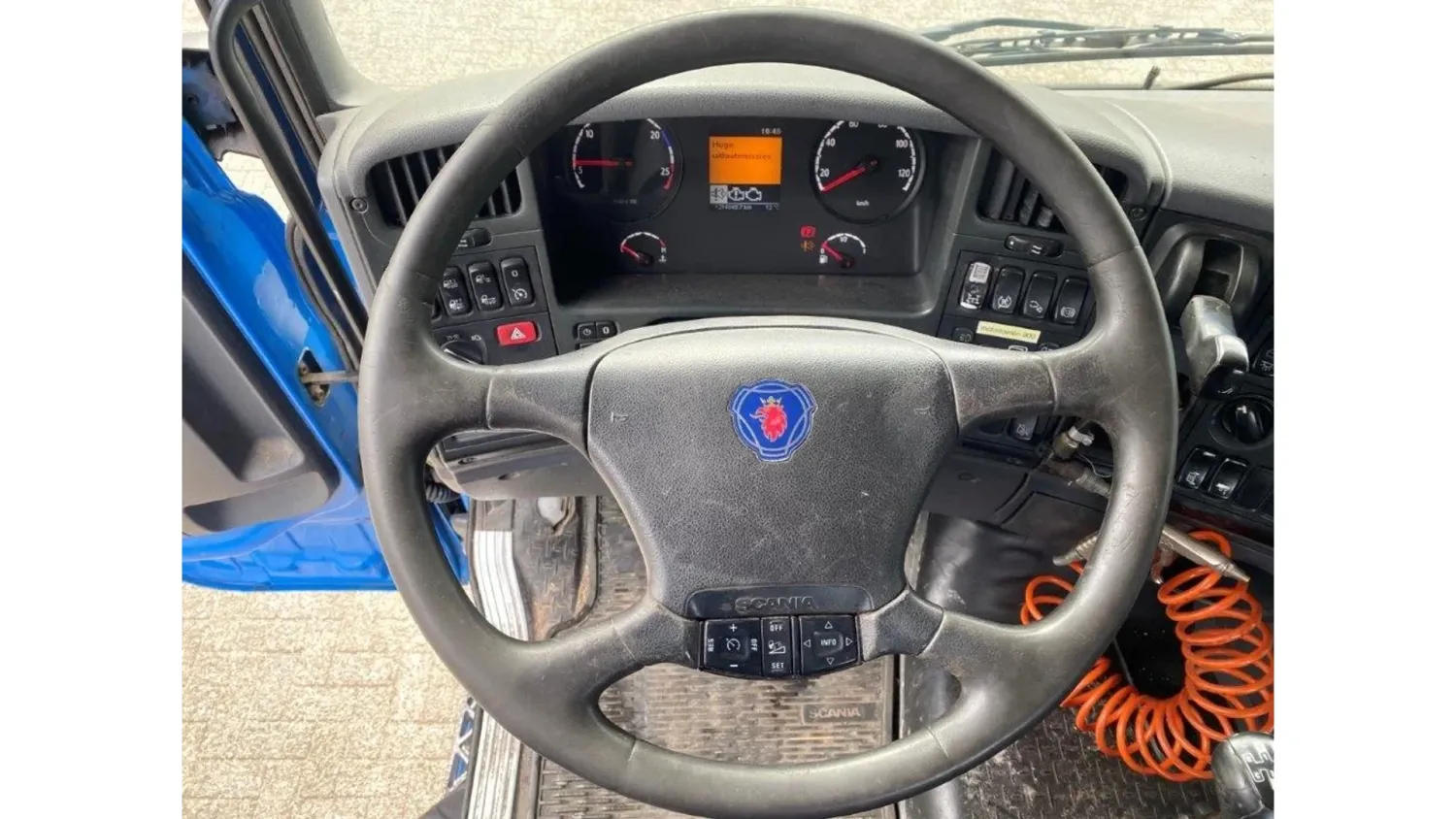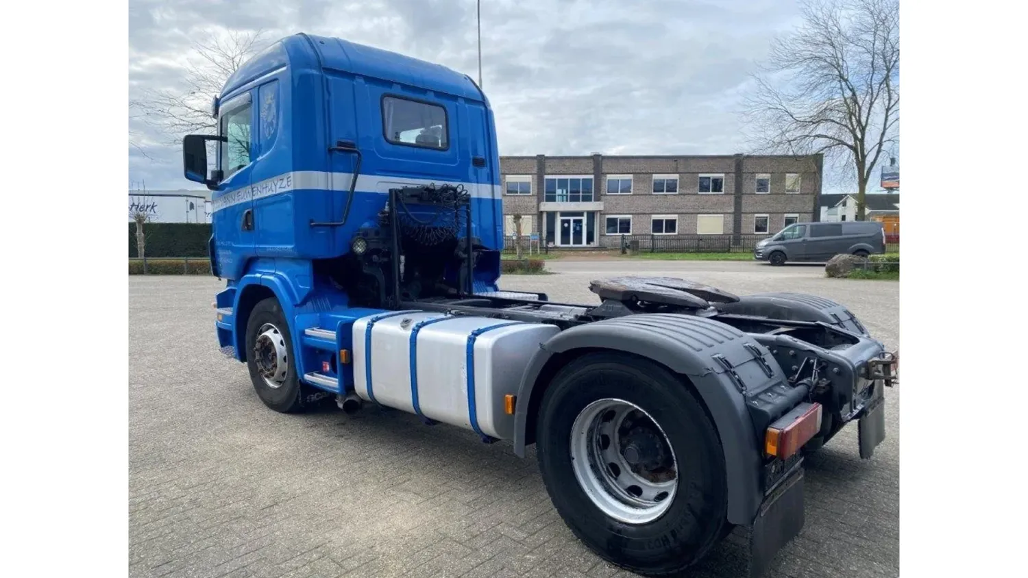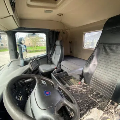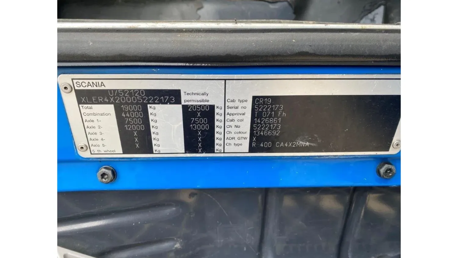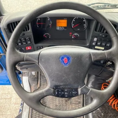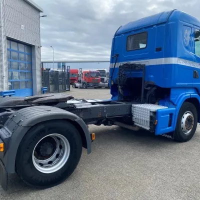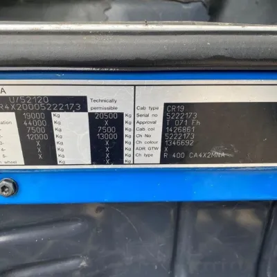General information Bodywork: Standard tractor Year of construction: 2009 Reference number: T241152226 Transmission Transmission: GR-905, Manual gearbox Axle configuration Tyre size: 315/80*R22.5 Brakes: disc brakes Front axle: Steering; Tyre profile left: 20%; Tyre profile right: 20%; Suspension: leaf suspension Rear axle: Double wheels; Differential lock; Tyre profile left inner: 20%; Tyre profile left outer: 20%; Tyre profile right outer: 20%; Tyre profile right outer: 20%; Suspension: air suspension Measures and weights Empty weight: 6.925 kg GVW: 20.500 kg Wheelbase: 370 cm Condition General condition: good Technical condition: good Visual appearance: good Damages: none https://youtu.be/5TUIoPs3Gic?si=tFKkZMIklDx_9P5A