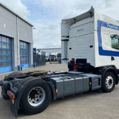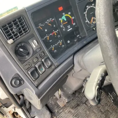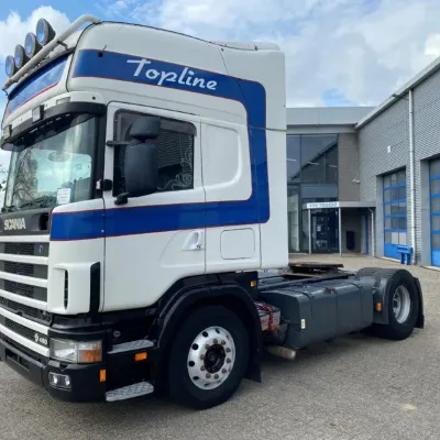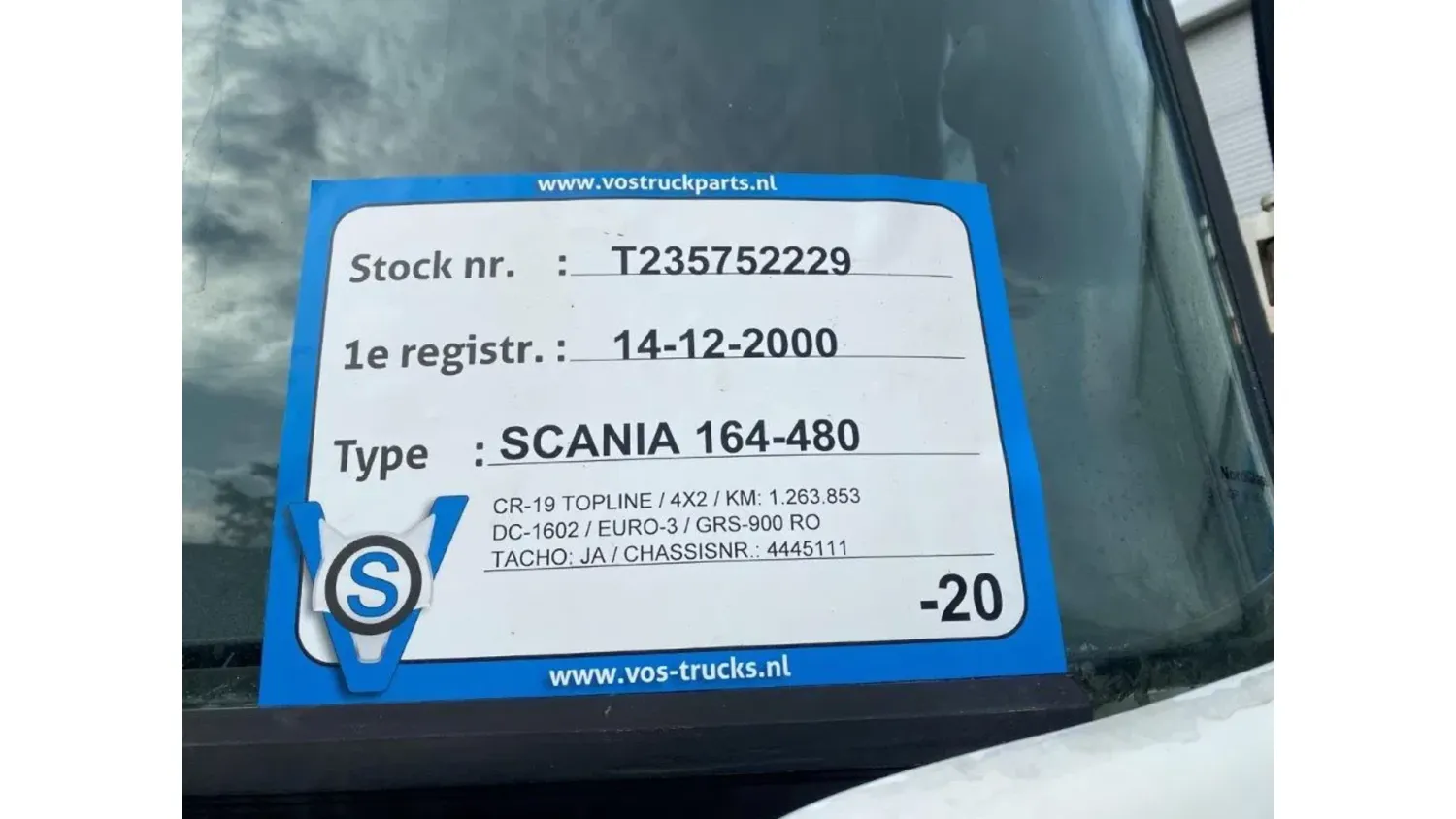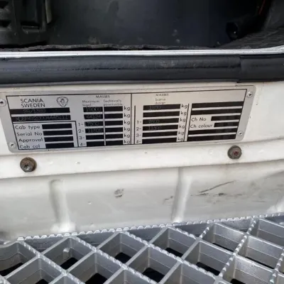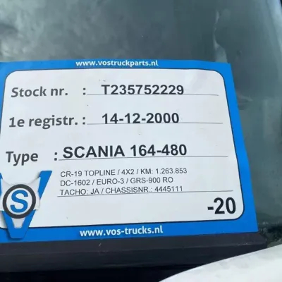 General information Bodywork: Standard tractor Year of construction: 2000 Reference number: T235752229 Serial number: XLER4X20004445111 Technical information Number of cylinders: 8 Transmission Transmission: GRS-900 R O, Automatic Axle configuration Brakes: disc brakes Front axle: Tyre size: 315/70 * R22.5; Max. axle load: 7500 kg; Steering; Tyre profile left: 30%; Tyre profile right: 30%; Suspension: leaf suspension Rear axle: Tyre size: 315/80 * R22.5; Double wheels; Differential lock; Max. axle load: 11500 kg; Tyre profile left inner: 10%; Tyre profile left outer: 10%; Tyre profile right outer: 10%; Tyre profile right outer: 10%; Suspension: air suspension Measures and weights GVW: 19.000 kg Wheelbase: 370 cm Condition General condition: good Technical condition: good Visual appearance: good Additional information Please contact Maarten Thur (+31620560062, info@vos-trucks.nl) for more information