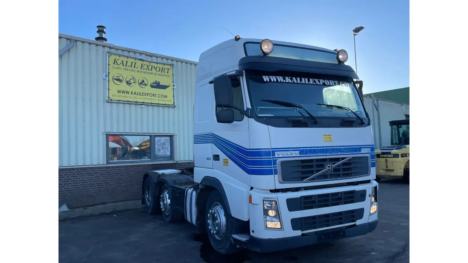 General information Bodywork: Standard tractor Year of construction: 2005 Reference number: 2601 Technical information Number of cylinders: 6 Transmission Transmission: ZF, Manual gearbox Axle configuration Front axle: Steering Rear axle 1: Steering Rear axle 2: Double wheels Condition General condition: good Technical condition: good Visual appearance: good Additional information Please contact Sales Department (+31682062695, sales@kalilexport.com) for more information Volvo FH12.460 Tractor Unit 460HP Engine Manuel Gearbox 6x2 Hydraulic Pump for Kipper Trailer Airconditioning 8 Tyre's Sleeping Cabine Work lights Full Spoilers Very clean and good truck We can ship this truck to all destinations FOR MORE INFO: WWW.KALILEXPORT.COM Sales Department: 00 31 6 82 06 26 95