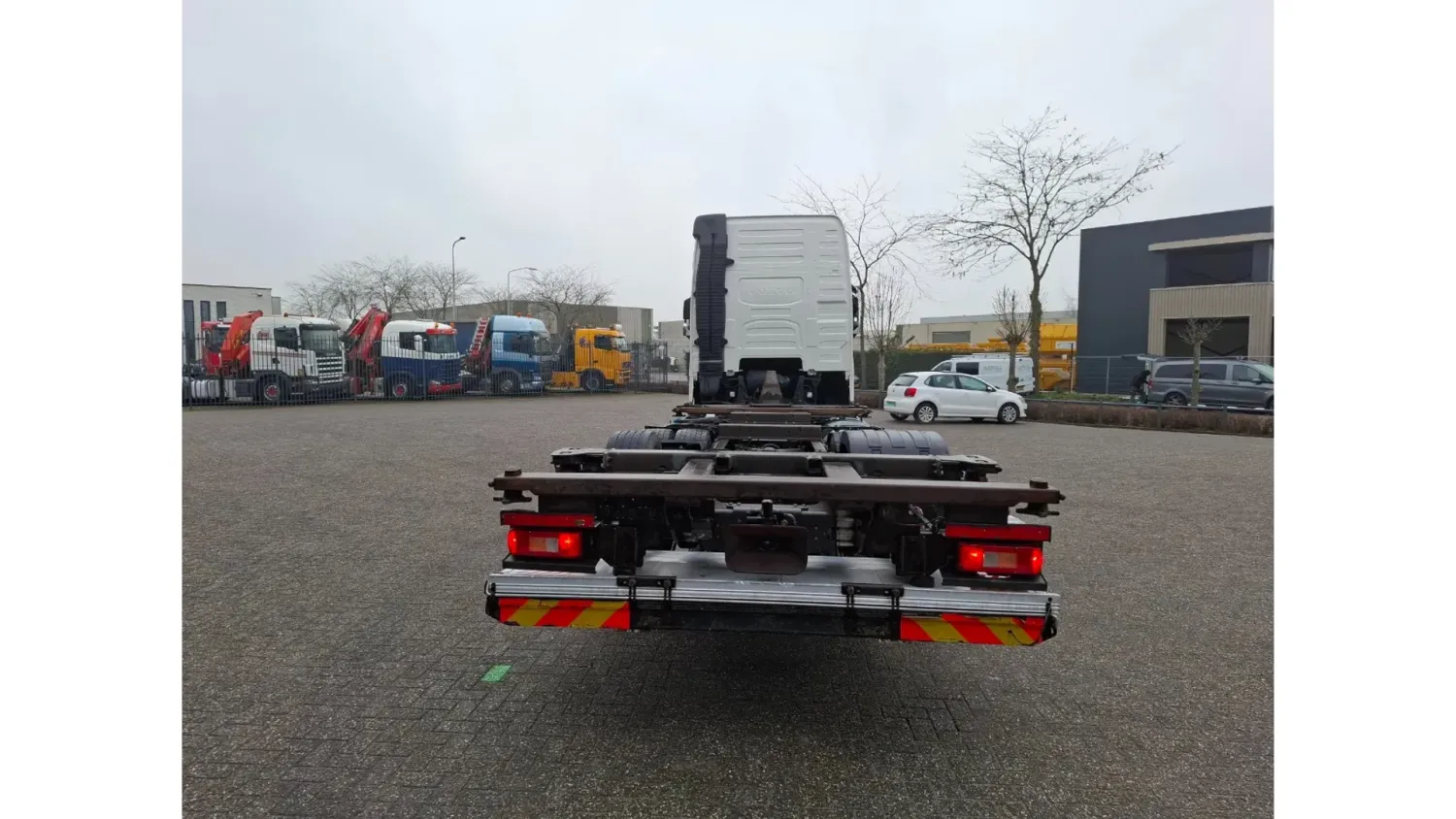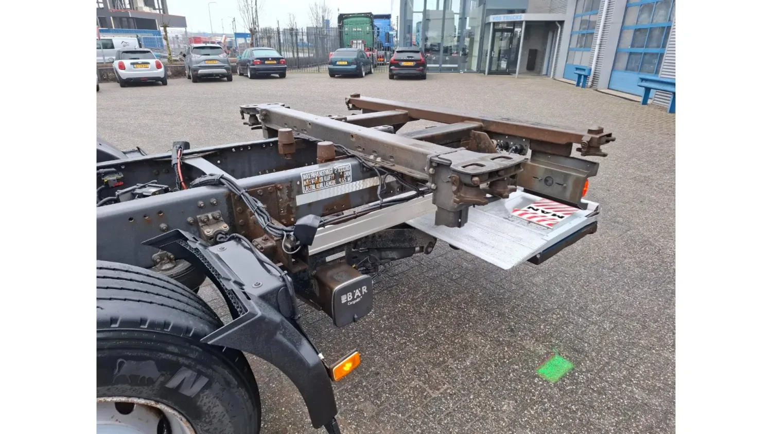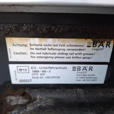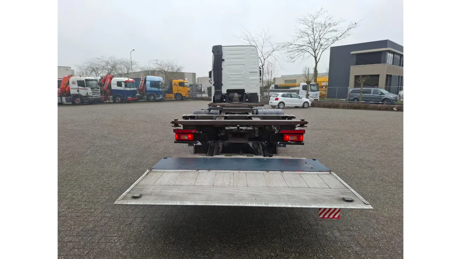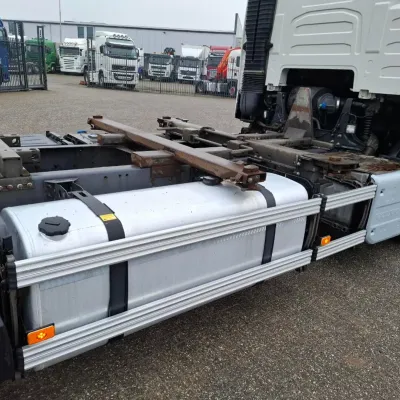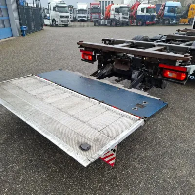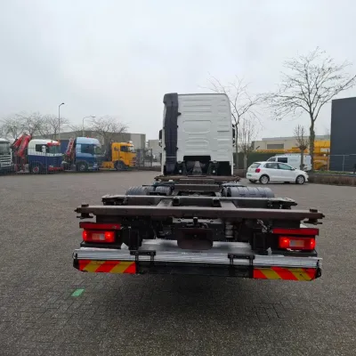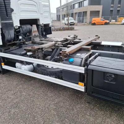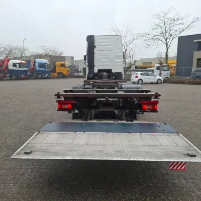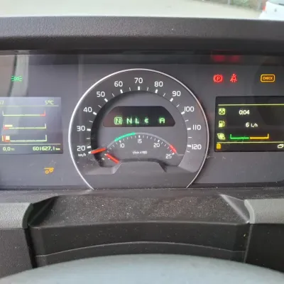 General information Year of construction: 2018 Reference number: T260045767 Drivetrain AdBlue system: Yes Transmission Transmission: AT-2612-F, Automatic Axle configuration Brakes: disc brakes Front axle: Tyre size: 385/55*R22.5; Max. axle load: 8000 kg; Steering; Tyre profile left: 60%; Tyre profile right: 60% Rear axle 1: Tyre size: 315/70*R22.5; Double wheels; Differential lock; Max. axle load: 11500 kg; Tyre profile left inner: 40%; Tyre profile left outer: 40%; Tyre profile right outer: 40%; Tyre profile right outer: 40% Rear axle 2: Tyre size: 385/55*R22.5; Max. axle load: 7500 kg; Tyre profile left: 20%; Tyre profile right: 20% Measures and weights Empty weight: 9.775 kg GVW: 27.000 kg Wheelbase: 480 cm Functional Tail lift: B'A'R BC 2000 R2T-P5, slider lift, 2000 kg Condition General condition: good Technical condition: good Visual appearance: good Damages: none https://youtu.be/BzGwyYOrGzc?si=L4Hr7QpLDrPhNYDe SMALL FRONT DAMAGE, SEE PICTURE