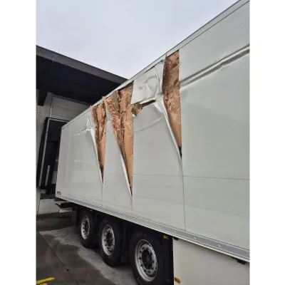 General information Year of construction: 2021 Reference number: T260085161 Registration number: OS-05-XF Axle configuration Rear axle 1: Max. axle load: 9000 kg Rear axle 2: Max. axle load: 9000 kg Rear axle 3: Max. axle load: 9000 kg Measures and weights Empty weight: 8.635 kg GVW: 42.000 kg Wheelbase: 891 cm Functional Make of bodywork: THERMOKING SLX SPECTRUM Cooling engine: diesel and electric (11747 operating hours electric) Maintenance, history and condition APK (MOT): tested until 08/2026 Damages: damaged vehicle (not roadworthy) Other information Cool unit make: Thermo King Cool unit brand: Thermo King