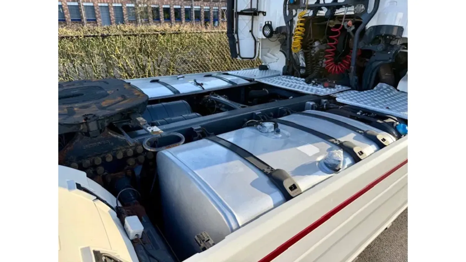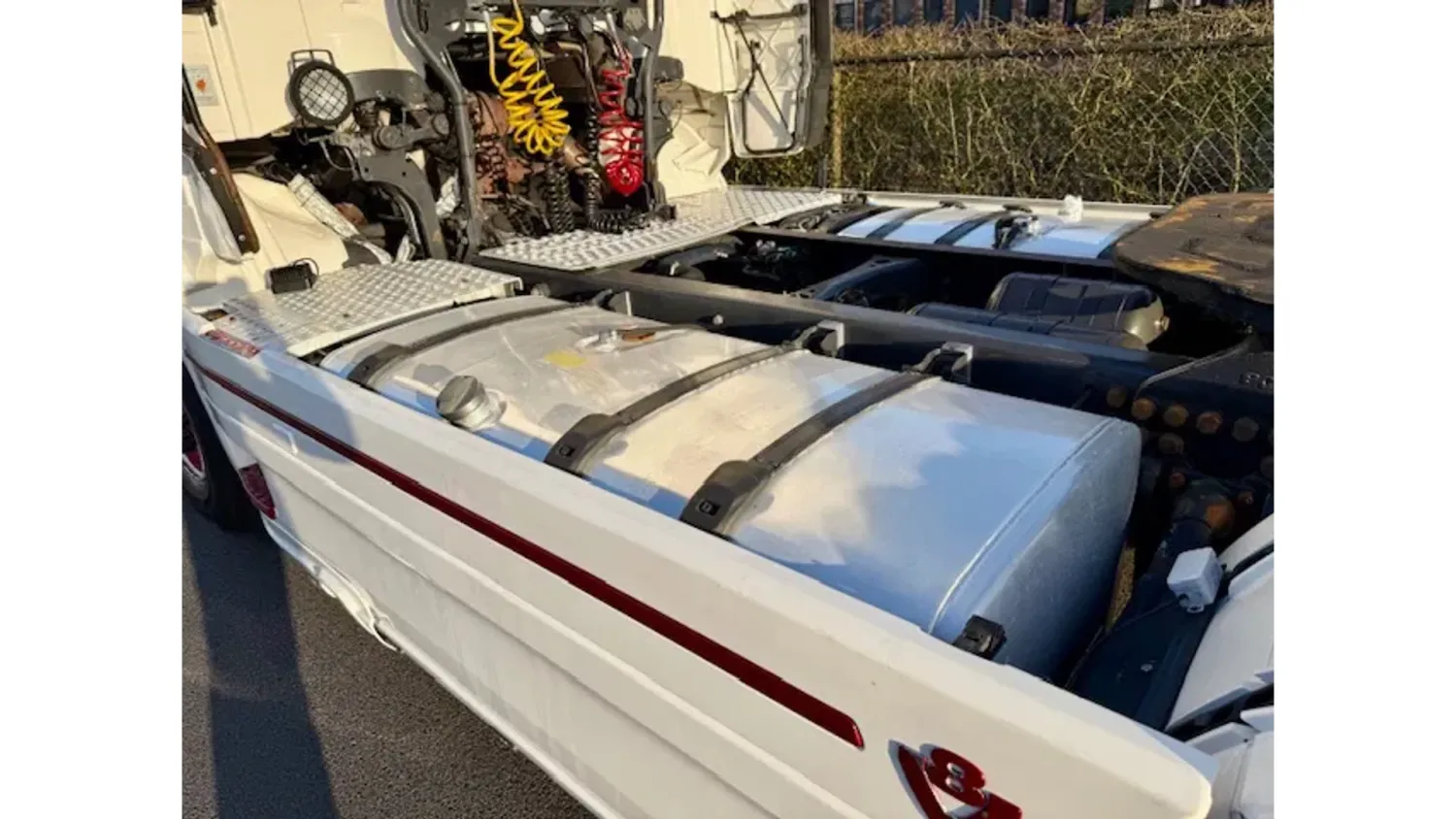 Bodywork: Standard tractor AdBlue system: Yes Year of construction: 2012 Front axle: Steering; Suspension: leaf suspension Rear axle: Suspension: air suspension Empty weight: 8.628 kg GVW: 18.000 kg Reference number: 19 Please contact Emad Al Shogran (+49218282870, info@shogran-gmbh.de) for more information Fahrzeugnummer: 19 Scania R500 V8 / Topline / Retarder / Euro 6 / Kupplung Problem Fgst.Nr.: XLER4X20005291582 Getriebe: Automatik Federung: Blatt / Luft Klima Retarder Motorbremse Tempomat Kühlbox Standheizung Abstandshalte-Assistent Spurhalte-Assistent 2 X Tank Euro 5 Kupplung Problem !!!
