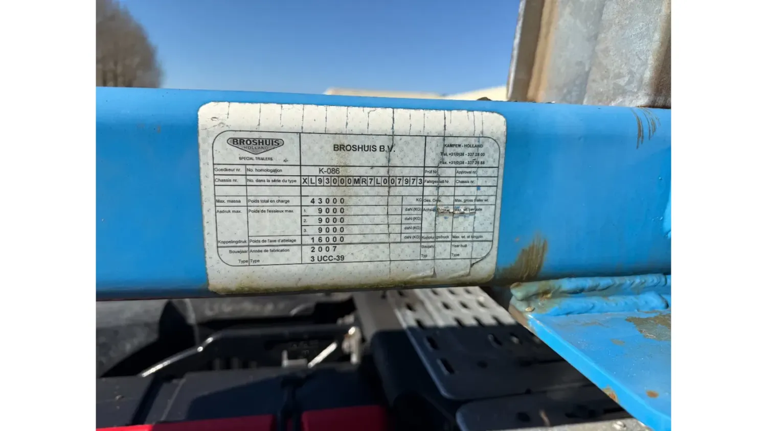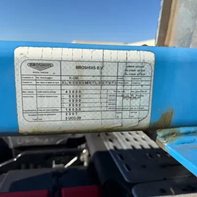 Year of construction: 2008 Rear axle 1: Lift axle; Make axles: SAF; Tyre profile left: 30%; Tyre profile right: 30% Rear axle 2: Tyre profile left: 40%; Tyre profile right: 40% Rear axle 3: Tyre profile left: 40%; Tyre profile right: 40% General condition: good Technical condition: good Visual appearance: good