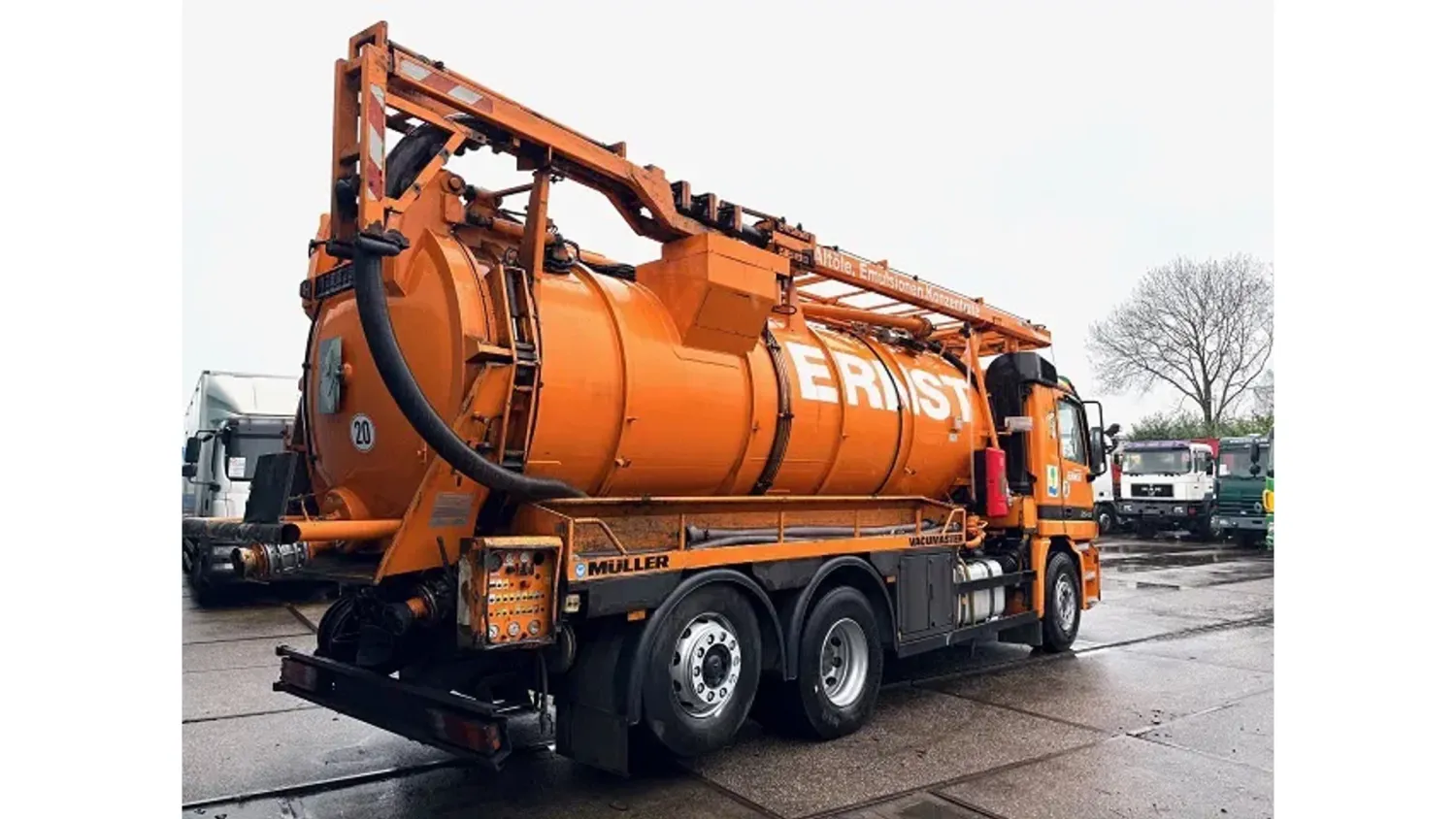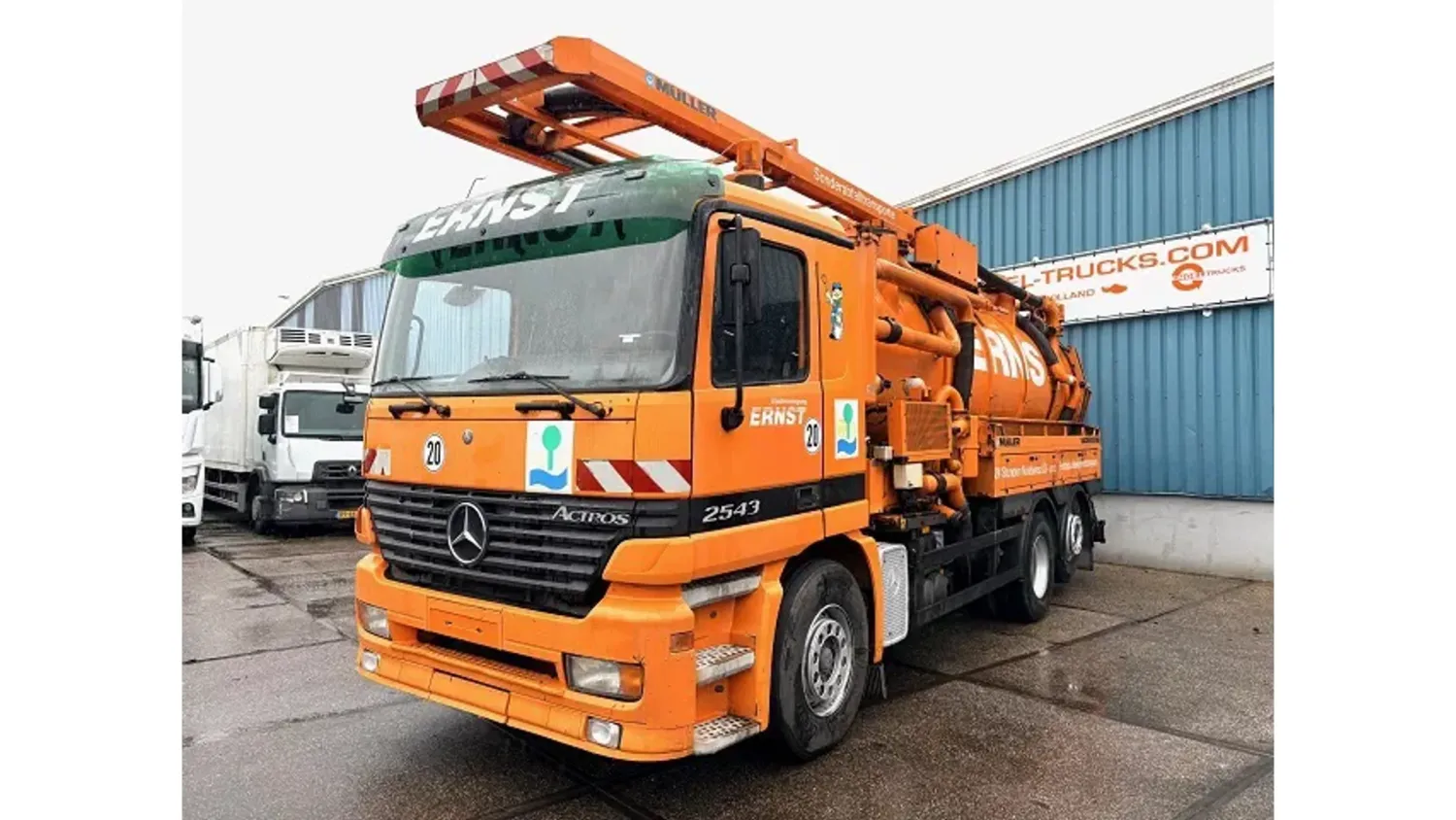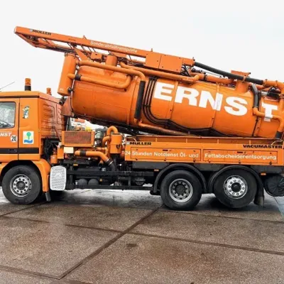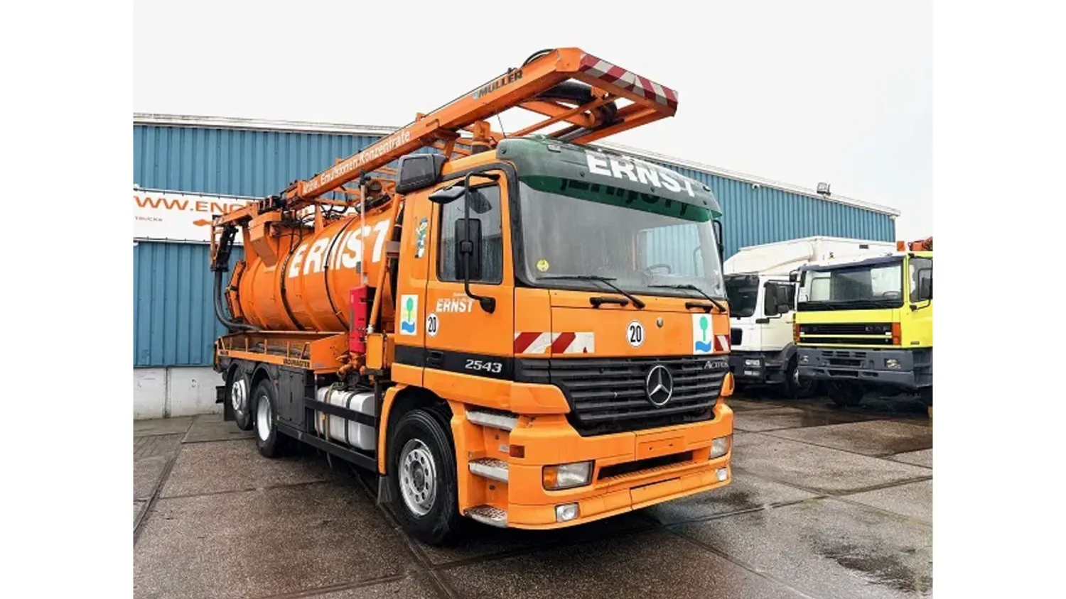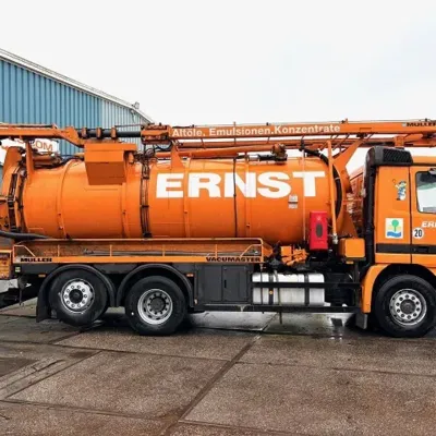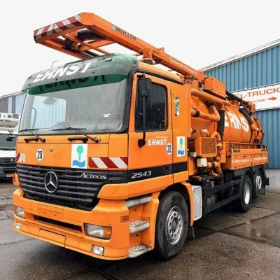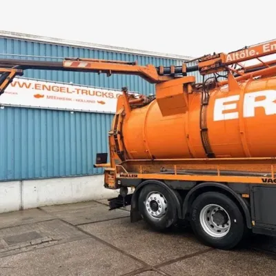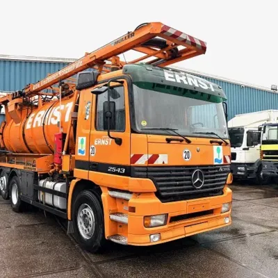 General information Year of construction: 2003 Cab: day Reference number: SN 59852245 Technical information Number of cylinders: 6 Drivetrain Fuel tank: 430 litres Transmission Transmission: EPS WITH CLUTCH (3 PEDALS), 16 gears, Semi-automatic Axle configuration Brakes: disc brakes Front axle: Tyre size: 385/65R22,5; Max. axle load: 8000 kg; Steering; Tyre profile left: 50%; Tyre profile right: 50%; Suspension: leaf suspension Rear axle 1: Tyre size: 315/80R22,5; Double wheels; Max. axle load: 11500 kg; Tyre profile left inner: 20%; Tyre profile left outer: 20%; Tyre profile right outer: 20%; Tyre profile right outer: 20%; Reduction: single reduction; Suspension: air suspension Rear axle 2: Tyre size: 315/80R22,5; Lift axle; Max. axle load: 7500 kg; Tyre profile left: 30%; Tyre profile right: 30%; Suspension: air suspension Measures and weights Empty weight: 16.540 kg GVW: 26.000 kg Wheelbase: 419 cm Functional Cargo space capacity: 15.500 l Make of bodywork: MULLER F155 EGH VACUUM TANK Condition General condition: very good Technical condition: very good Visual appearance: very good Additional information Please contact Sales Department (+31621455454, sales@engel-trucks.com) or Erik Engel (+31654922179, erik@engel-trucks.com) for more information GOOD CONDITION MERCEDES-BENZ ACTROS 2543L V6 6x2 CHASSIS WITH MULLER F155 EGH VACUUM TANK & RETARDER!! 430HP, V6 ENGINE!! EPS WITH CLUTCH (3 PEDALS)!! RETARDER!! ADR/VLG (FL - AT)!! LIFT-AXLE!! P.T.O.!! ETC.!! MULLER F155 EGH VACUUM TANK!! HYDRAULIC SNALE ARM!! HIGH PRESSURE WATER PUMP!! ETC.!! TRUCK IS IN GOOD WORKING AND DRIVING CONDITION, READY FOR THE JOB!! MORE MERCEDES-BENZ 4x2 / 4x4 / 6x2 / 6x4 / 8x4 (CONSTRUCTION) TRUCKS IN STOCK FOR SALE!! (>75 TRUCKS/TRAILERS IN STOCK)!! PLEASE CHECK OUR WEBSITE; WWW.ENGEL-TRUCKS.COM SHIPMENT, STACKING, TRANSPORT OR LOADING?, NO PROBLEM FOR US, WE ARE AN " ONE STOP SHOP " COMPANY!! YOU CAN ALSO CHECK OUR COMPANY MOVIE ON YOUTUBE FOR THE FIRST IMPRESSION!! ( https://drone-pro.nl/project/video-engel-trucks-bv-2017/ ) ENGEL TRUCKS ; " YOUR GLOBAL TRADING PARTNER "
