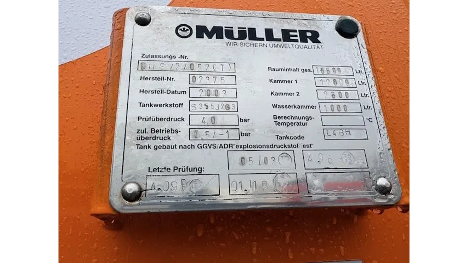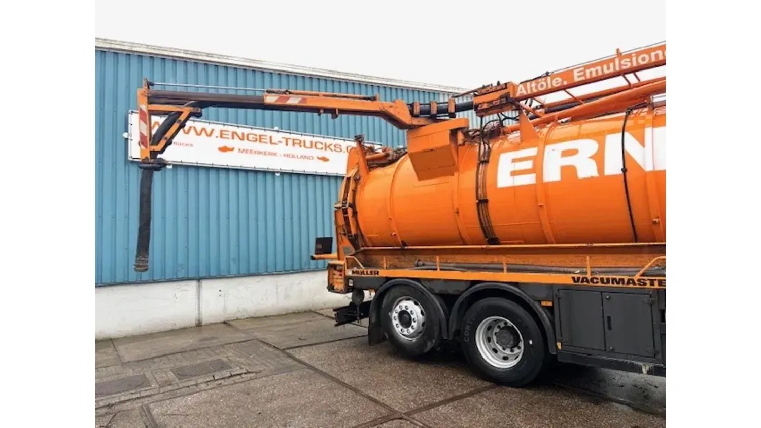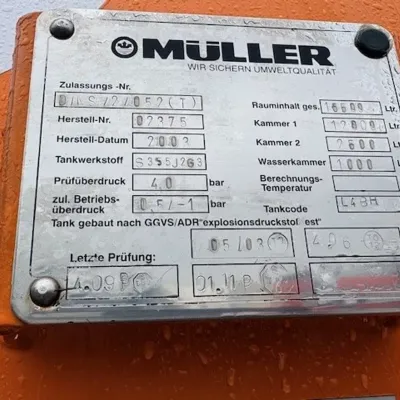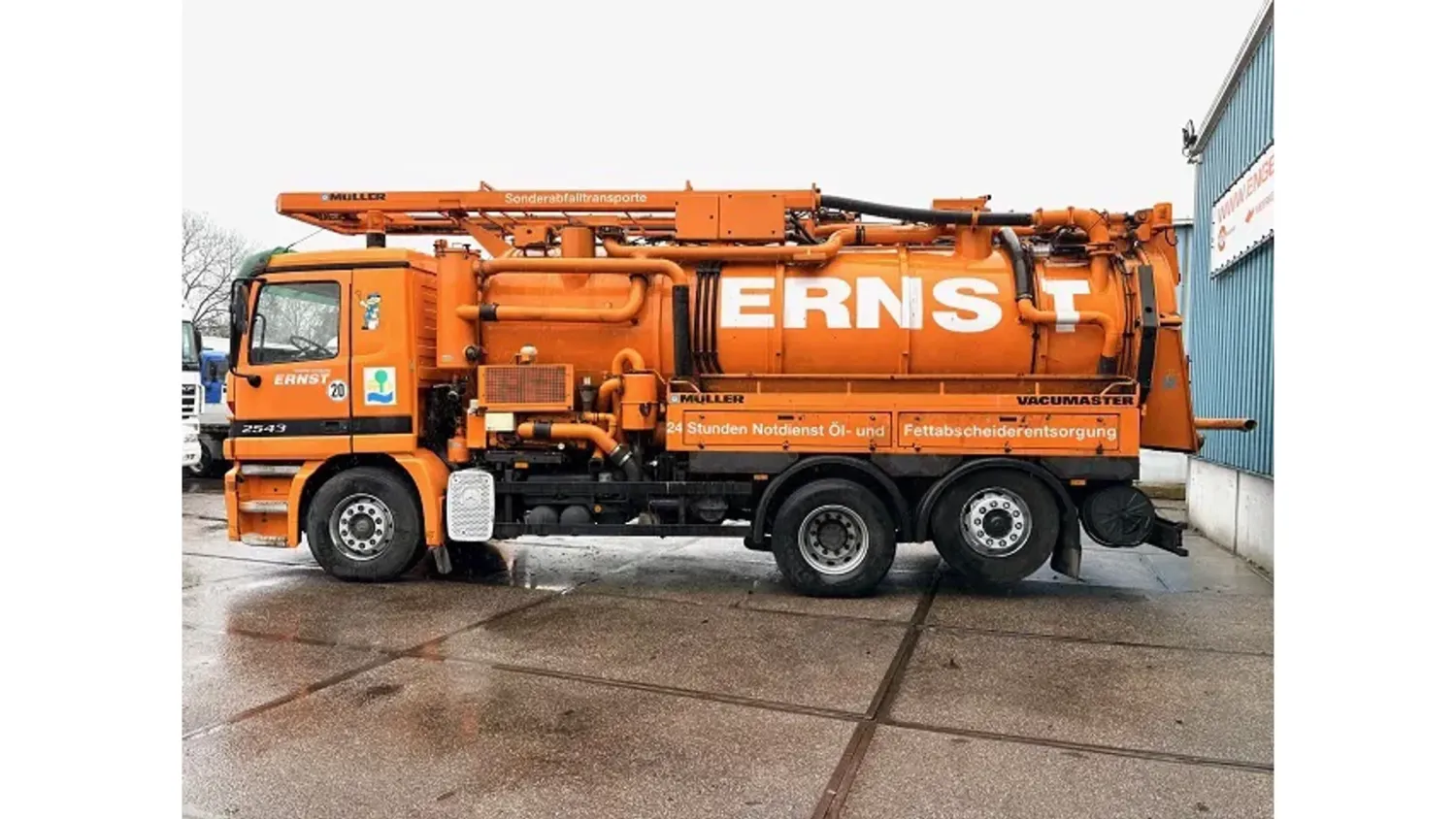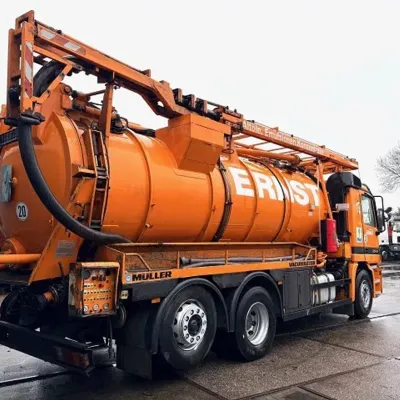 General information Year of construction: 2003 Cab: day Reference number: SN 59852245 Technical information Number of cylinders: 6 Drivetrain Fuel tank: 430 litres Transmission Transmission: EPS WITH CLUTCH (3 PEDALS), 16 gears, Semi-automatic Axle configuration Brakes: disc brakes Front axle: Tyre size: 385/65R22,5; Max. axle load: 8000 kg; Steering; Tyre profile left: 50%; Tyre profile right: 50%; Suspension: leaf suspension Rear axle 1: Tyre size: 315/80R22,5; Double wheels; Max. axle load: 11500 kg; Tyre profile left inner: 20%; Tyre profile left outer: 20%; Tyre profile right outer: 20%; Tyre profile right outer: 20%; Reduction: single reduction; Suspension: air suspension Rear axle 2: Tyre size: 315/80R22,5; Lift axle; Max. axle load: 7500 kg; Tyre profile left: 30%; Tyre profile right: 30%; Suspension: air suspension Measures and weights Empty weight: 16.540 kg GVW: 26.000 kg Wheelbase: 419 cm Functional Cargo space capacity: 15.500 l Make of bodywork: MULLER F155 EGH VACUUM TANK Condition General condition: very good Technical condition: very good Visual appearance: very good Additional information Please contact Sales Department (+31621455454, sales@engel-trucks.com) or Erik Engel (+31654922179, erik@engel-trucks.com) for more information GOOD CONDITION MERCEDES-BENZ ACTROS 2543L V6 6x2 CHASSIS WITH MULLER F155 EGH VACUUM TANK & RETARDER!! 430HP, V6 ENGINE!! EPS WITH CLUTCH (3 PEDALS)!! RETARDER!! ADR/VLG (FL - AT)!! LIFT-AXLE!! P.T.O.!! ETC.!! MULLER F155 EGH VACUUM TANK!! HYDRAULIC SNALE ARM!! HIGH PRESSURE WATER PUMP!! ETC.!! TRUCK IS IN GOOD WORKING AND DRIVING CONDITION, READY FOR THE JOB!! MORE MERCEDES-BENZ 4x2 / 4x4 / 6x2 / 6x4 / 8x4 (CONSTRUCTION) TRUCKS IN STOCK FOR SALE!! (>75 TRUCKS/TRAILERS IN STOCK)!! PLEASE CHECK OUR WEBSITE; WWW.ENGEL-TRUCKS.COM SHIPMENT, STACKING, TRANSPORT OR LOADING?, NO PROBLEM FOR US, WE ARE AN " ONE STOP SHOP " COMPANY!! YOU CAN ALSO CHECK OUR COMPANY MOVIE ON YOUTUBE FOR THE FIRST IMPRESSION!! ( https://drone-pro.nl/project/video-engel-trucks-bv-2017/ ) ENGEL TRUCKS ; " YOUR GLOBAL TRADING PARTNER "