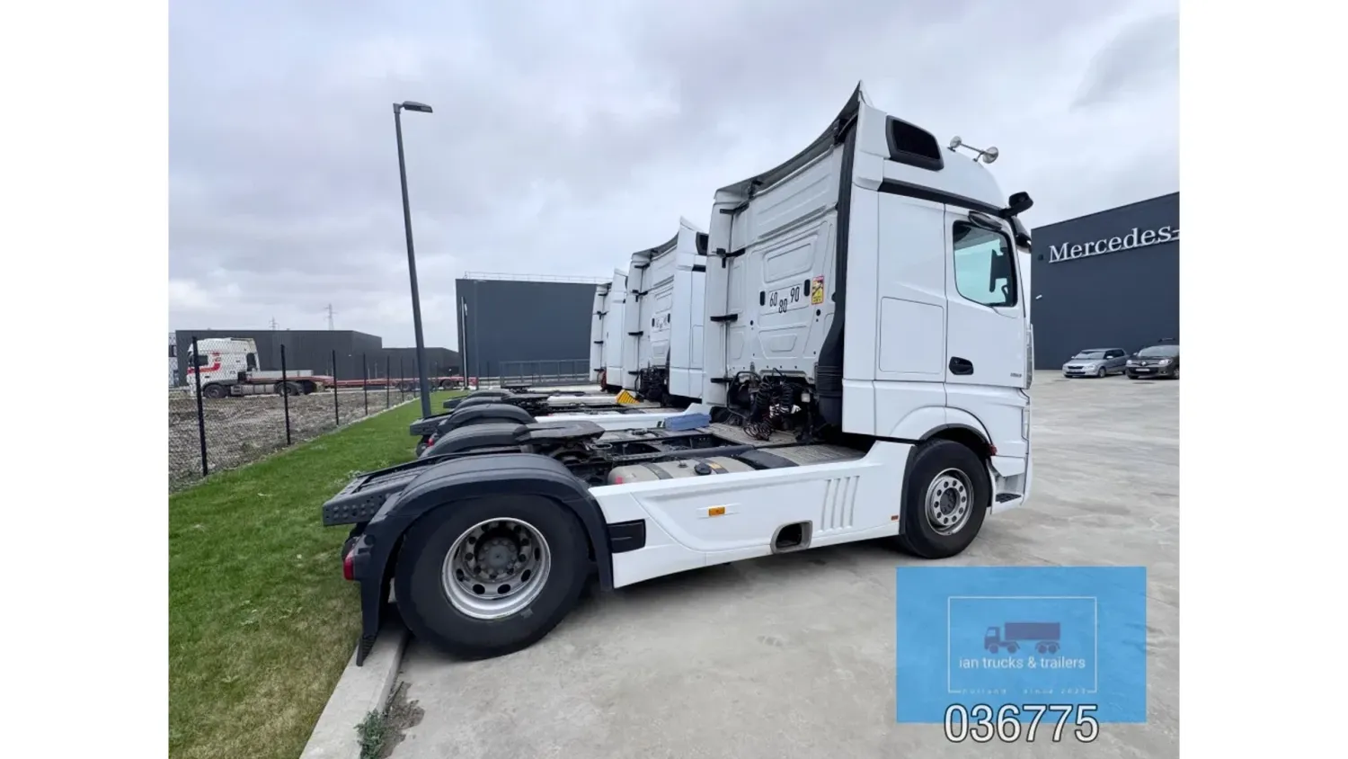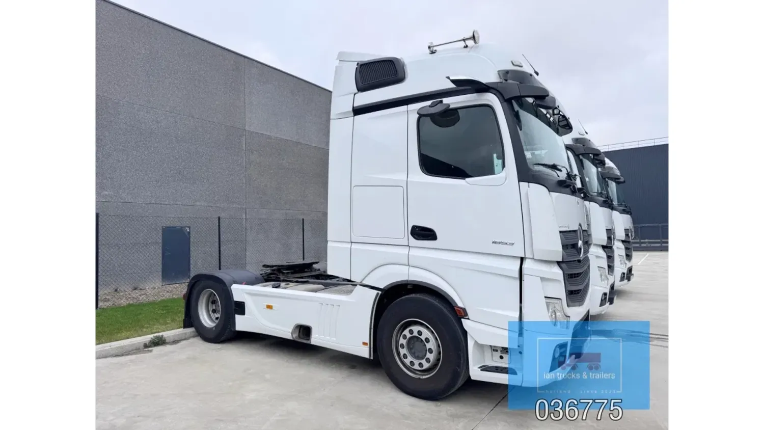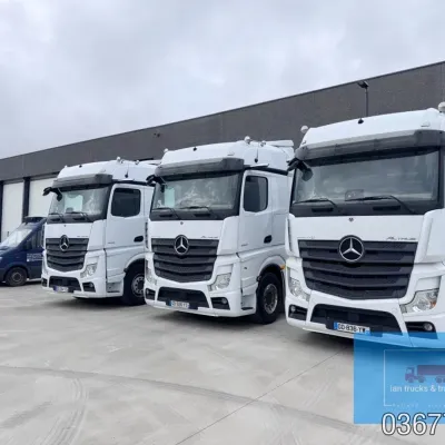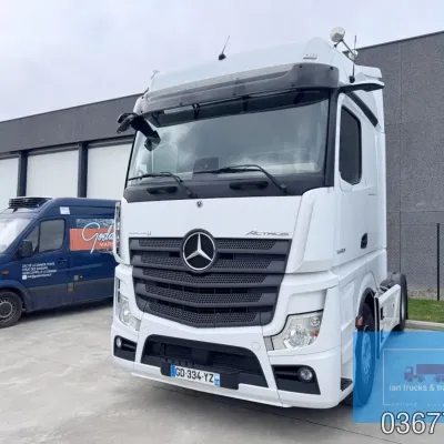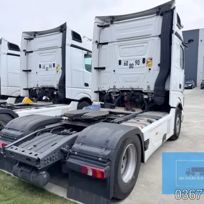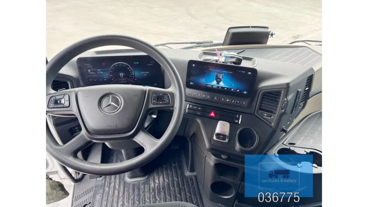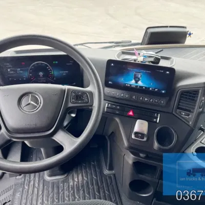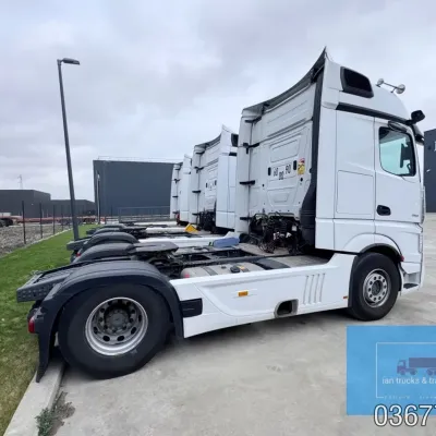 General information Bodywork: Standard tractor Year of construction: 2022 Reference number: 036775 Technical information Number of cylinders: 6 Drivetrain AdBlue system: Yes Fuel tank: 1150 litres Transmission Transmission: POWERSHIFT/3-12 G281-12, 12 gears, Automatic Axle configuration Make axles: MERCEDES-BENZ Brakes: disc brakes Front axle: Tyre size: 385/65R22,5; Max. axle load: 7500 kg; Steering; Tyre profile left: 60%; Tyre profile right: 60%; Suspension: leaf suspension Rear axle: Tyre size: 315/80R22,5; Double wheels; Max. axle load: 13000 kg; Tyre profile left outer: 40%; Tyre profile right outer: 40%; Reduction: single reduction; Suspension: air suspension Measures and weights Empty weight: 8.366 kg Wheelbase: 370 cm Functional Cargo space capacity: 1.150 l Make of bodywork: MERCEDES-BENZ Condition General condition: very good Technical condition: very good Visual appearance: very good Damages: none Additional information Please contact Ian Anema (+31611159159, ian@iantrucks.com) for more information ⭐ Key Specifications • Model: Mercedes-Benz Actros 1853 LS 4x2 BigSpace MP5 • Chassis number: W1T9634031C036775 • First registration date: 03-01-2022 • Engine: 530 hp OM471 (2nd generation) – Euro 6-D • Transmission: PowerShift 3 – 12-speed gearbox (G281-12), automatic, without retarder • Cabin: BigSpace sleeper cab (Solostar concept) with flat floor • Colour: Original white (9147 Arctic White) ⸻ ️ Comfort & Interior • Solostar interior concept • Second bed • Refrigerator under lower bunk • Multimedia dashboard (new style) • MirrorCam electronic mirrors ⸻ ️ Safety & Assistance Systems • Adaptive cruise control (S1L – radar) • Active Sideguard Assist (S1X) • Active Brake Assist 5 (S1W) • Active Drive Assist 2 (S2A) • Servotwin steering (C6G) ⸻ ⚙️ Technical & Exterior • Spoiler kit • Side protection in body colour • Tyres: 385/65 R22.5 (front) + 315/80 R22.5 (rear) • Wheelbase: 370 cm • Fuel tanks: 720 L + 430 L