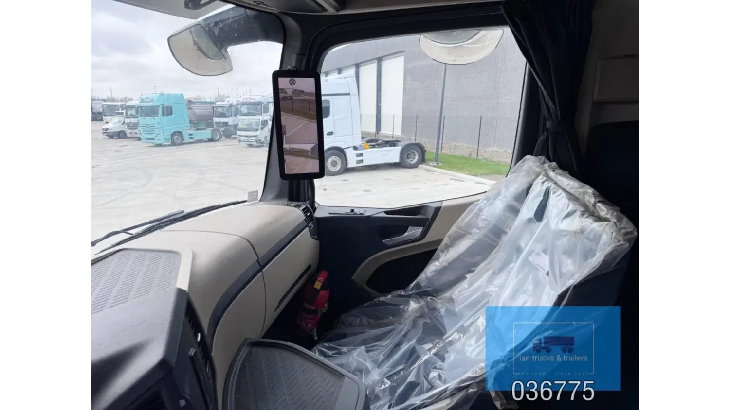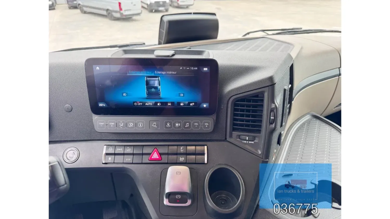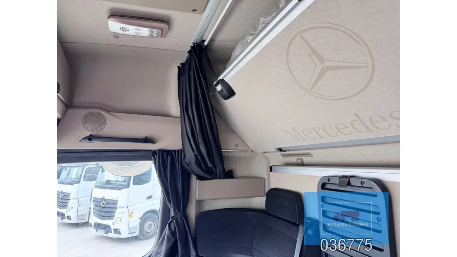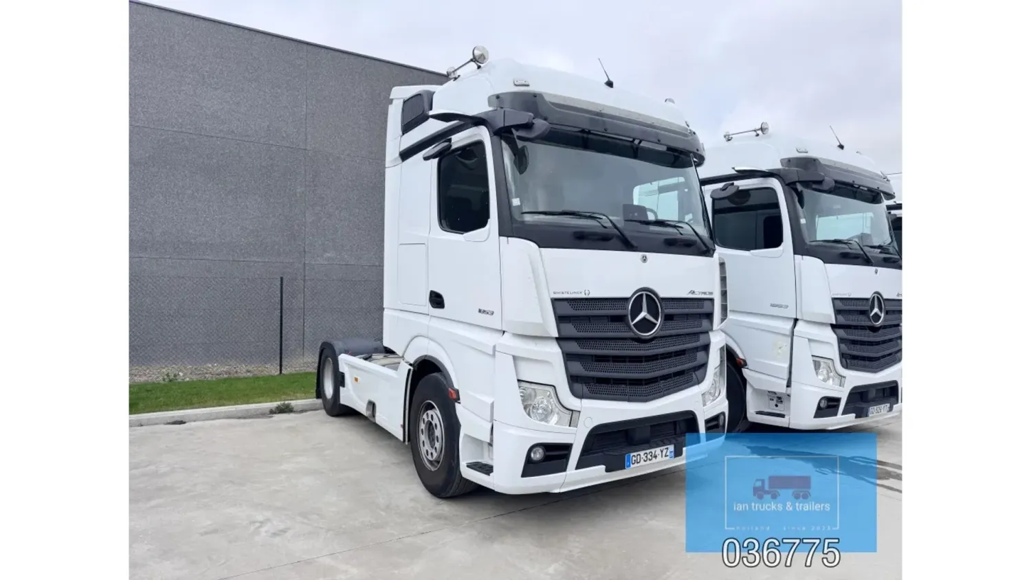 General information Bodywork: Standard tractor Year of construction: 2022 Reference number: 036775 Technical information Number of cylinders: 6 Drivetrain AdBlue system: Yes Fuel tank: 1150 litres Transmission Transmission: POWERSHIFT/3-12 G281-12, 12 gears, Automatic Axle configuration Make axles: MERCEDES-BENZ Brakes: disc brakes Front axle: Tyre size: 385/65R22,5; Max. axle load: 7500 kg; Steering; Tyre profile left: 60%; Tyre profile right: 60%; Suspension: leaf suspension Rear axle: Tyre size: 315/80R22,5; Double wheels; Max. axle load: 13000 kg; Tyre profile left outer: 40%; Tyre profile right outer: 40%; Reduction: single reduction; Suspension: air suspension Measures and weights Empty weight: 8.366 kg Wheelbase: 370 cm Functional Cargo space capacity: 1.150 l Make of bodywork: MERCEDES-BENZ Condition General condition: very good Technical condition: very good Visual appearance: very good Damages: none Additional information Please contact Ian Anema (+31611159159, ian@iantrucks.com) for more information ⭐ Key Specifications • Model: Mercedes-Benz Actros 1853 LS 4x2 BigSpace MP5 • Chassis number: W1T9634031C036775 • First registration date: 03-01-2022 • Engine: 530 hp OM471 (2nd generation) – Euro 6-D • Transmission: PowerShift 3 – 12-speed gearbox (G281-12), automatic, without retarder • Cabin: BigSpace sleeper cab (Solostar concept) with flat floor • Colour: Original white (9147 Arctic White) ⸻ ️ Comfort & Interior • Solostar interior concept • Second bed • Refrigerator under lower bunk • Multimedia dashboard (new style) • MirrorCam electronic mirrors ⸻ ️ Safety & Assistance Systems • Adaptive cruise control (S1L – radar) • Active Sideguard Assist (S1X) • Active Brake Assist 5 (S1W) • Active Drive Assist 2 (S2A) • Servotwin steering (C6G) ⸻ ⚙️ Technical & Exterior • Spoiler kit • Side protection in body colour • Tyres: 385/65 R22.5 (front) + 315/80 R22.5 (rear) • Wheelbase: 370 cm • Fuel tanks: 720 L + 430 L