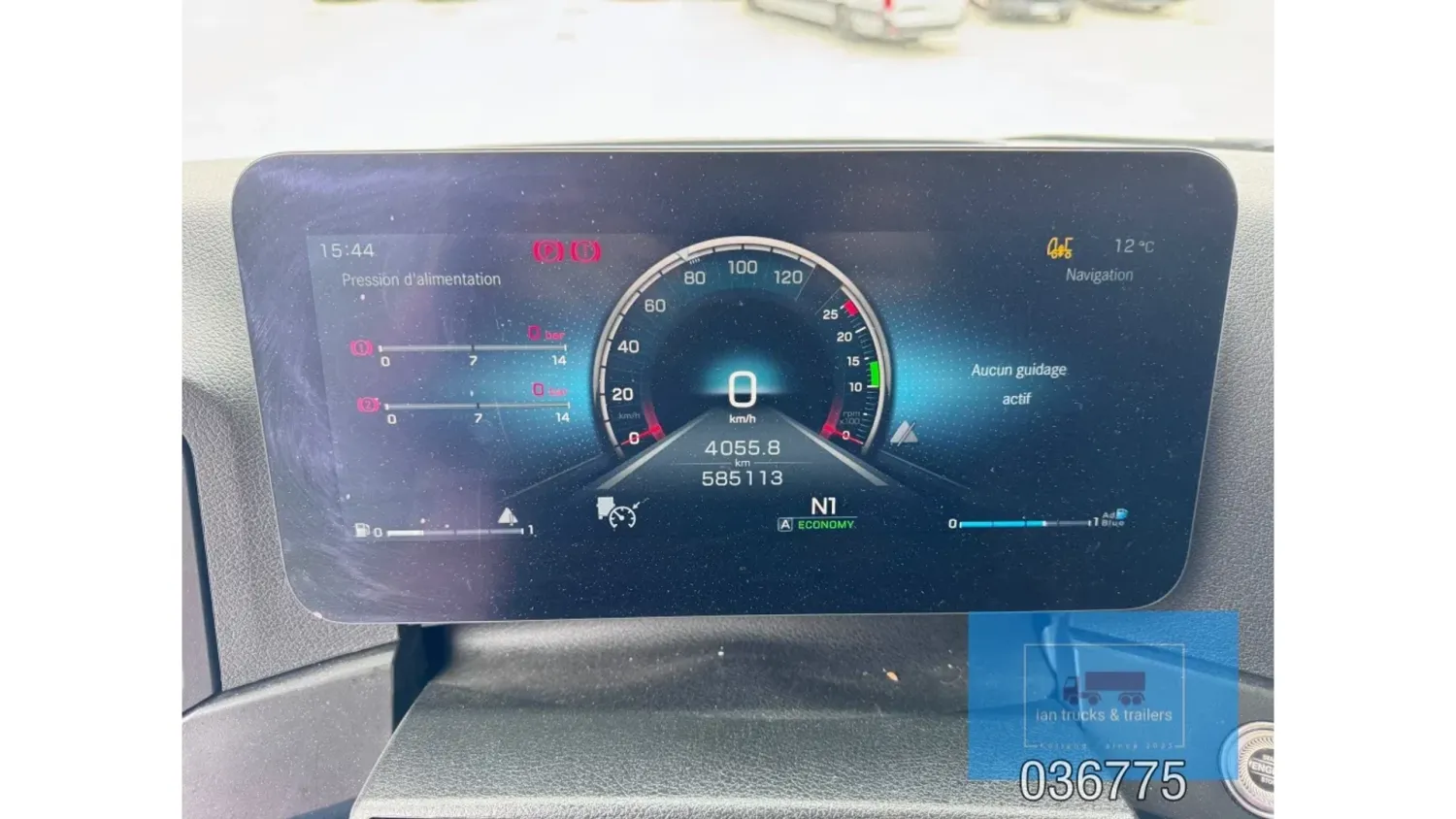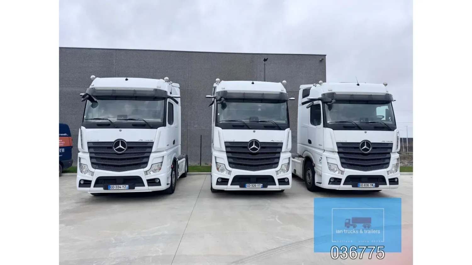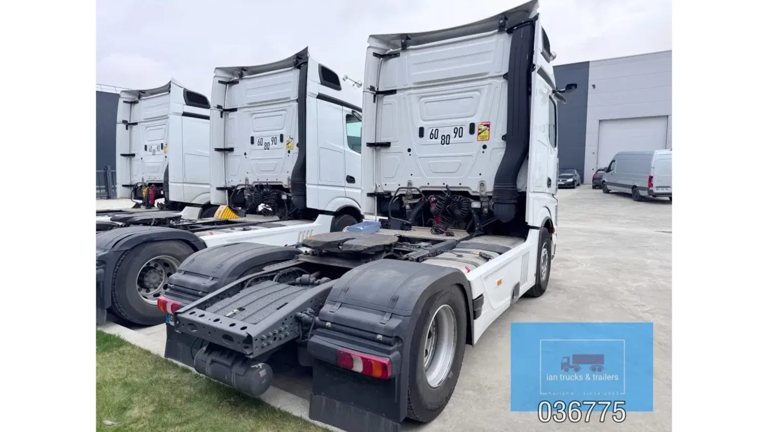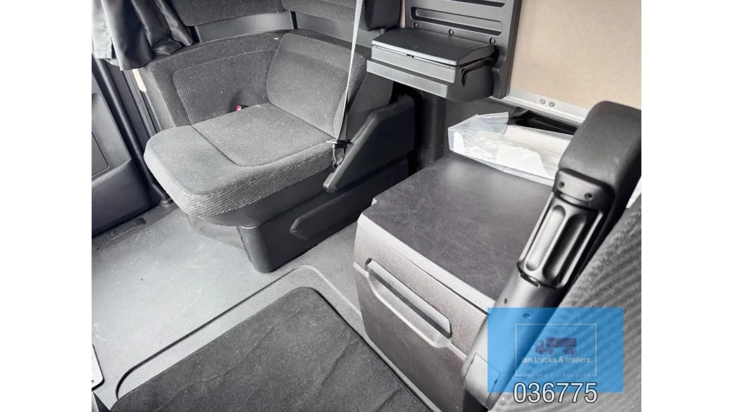 General information Bodywork: Standard tractor Year of construction: 2022 Reference number: 036775 Technical information Number of cylinders: 6 Drivetrain AdBlue system: Yes Fuel tank: 1150 litres Transmission Transmission: POWERSHIFT/3-12 G281-12, 12 gears, Automatic Axle configuration Make axles: MERCEDES-BENZ Brakes: disc brakes Front axle: Tyre size: 385/65R22,5; Max. axle load: 7500 kg; Steering; Tyre profile left: 60%; Tyre profile right: 60%; Suspension: leaf suspension Rear axle: Tyre size: 315/80R22,5; Double wheels; Max. axle load: 13000 kg; Tyre profile left outer: 40%; Tyre profile right outer: 40%; Reduction: single reduction; Suspension: air suspension Measures and weights Empty weight: 8.366 kg Wheelbase: 370 cm Functional Cargo space capacity: 1.150 l Make of bodywork: MERCEDES-BENZ Condition General condition: very good Technical condition: very good Visual appearance: very good Damages: none Additional information Please contact Ian Anema (+31611159159, ian@iantrucks.com) for more information ⭐ Key Specifications • Model: Mercedes-Benz Actros 1853 LS 4x2 BigSpace MP5 • Chassis number: W1T9634031C036775 • First registration date: 03-01-2022 • Engine: 530 hp OM471 (2nd generation) – Euro 6-D • Transmission: PowerShift 3 – 12-speed gearbox (G281-12), automatic, without retarder • Cabin: BigSpace sleeper cab (Solostar concept) with flat floor • Colour: Original white (9147 Arctic White) ⸻ ️ Comfort & Interior • Solostar interior concept • Second bed • Refrigerator under lower bunk • Multimedia dashboard (new style) • MirrorCam electronic mirrors ⸻ ️ Safety & Assistance Systems • Adaptive cruise control (S1L – radar) • Active Sideguard Assist (S1X) • Active Brake Assist 5 (S1W) • Active Drive Assist 2 (S2A) • Servotwin steering (C6G) ⸻ ⚙️ Technical & Exterior • Spoiler kit • Side protection in body colour • Tyres: 385/65 R22.5 (front) + 315/80 R22.5 (rear) • Wheelbase: 370 cm • Fuel tanks: 720 L + 430 L