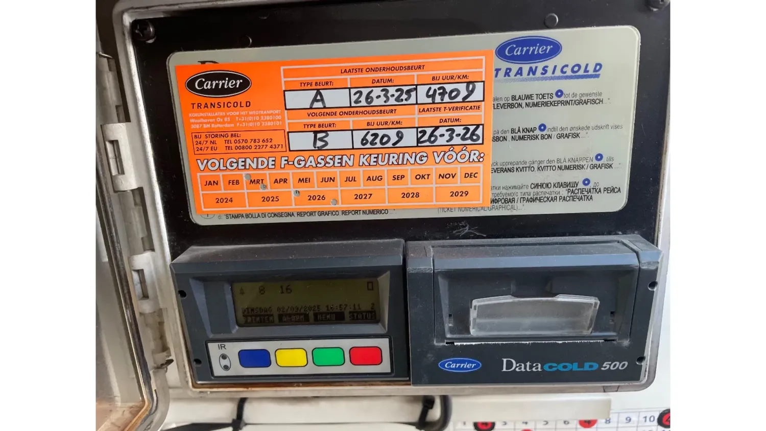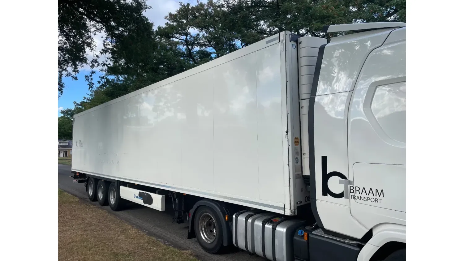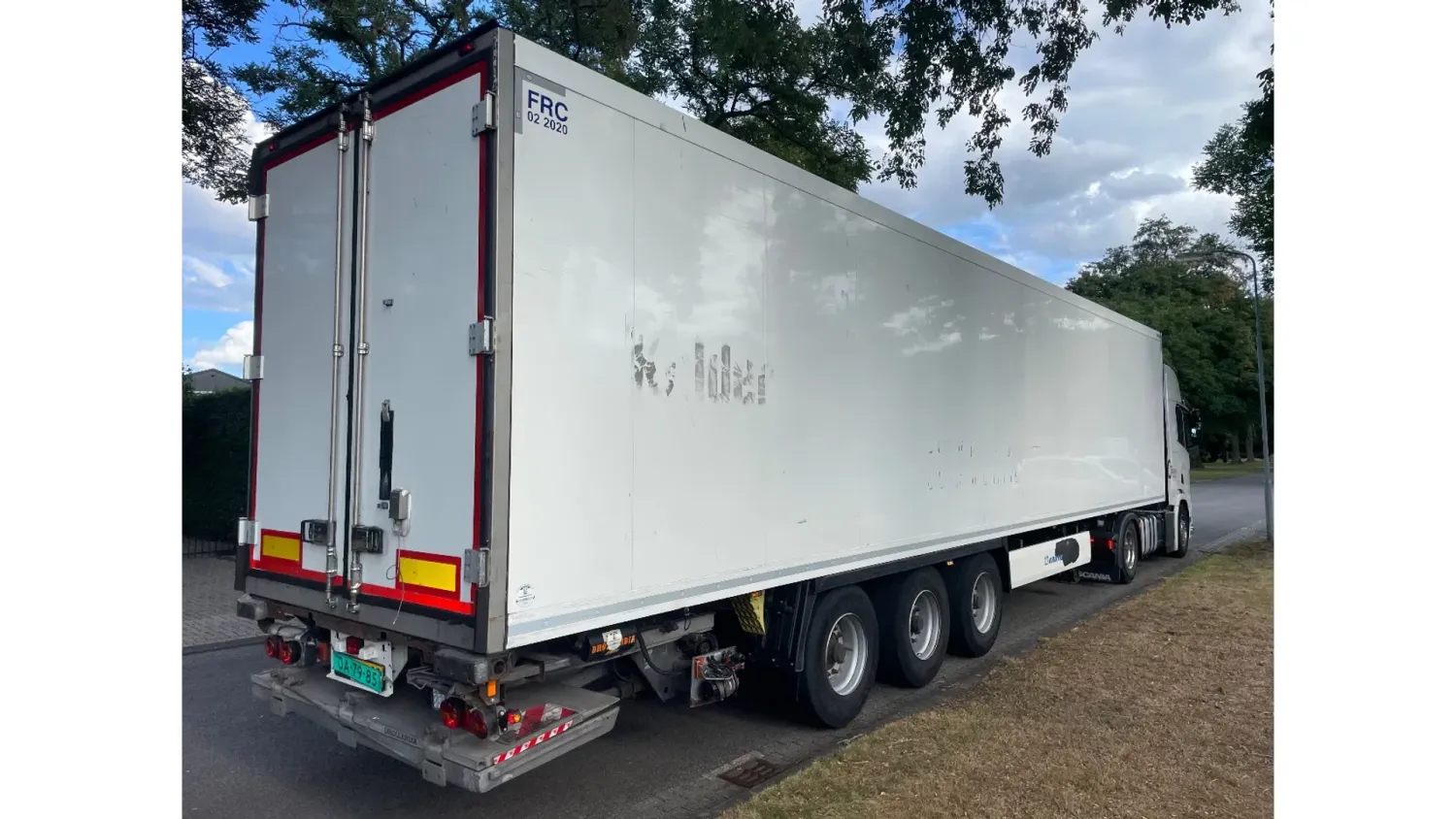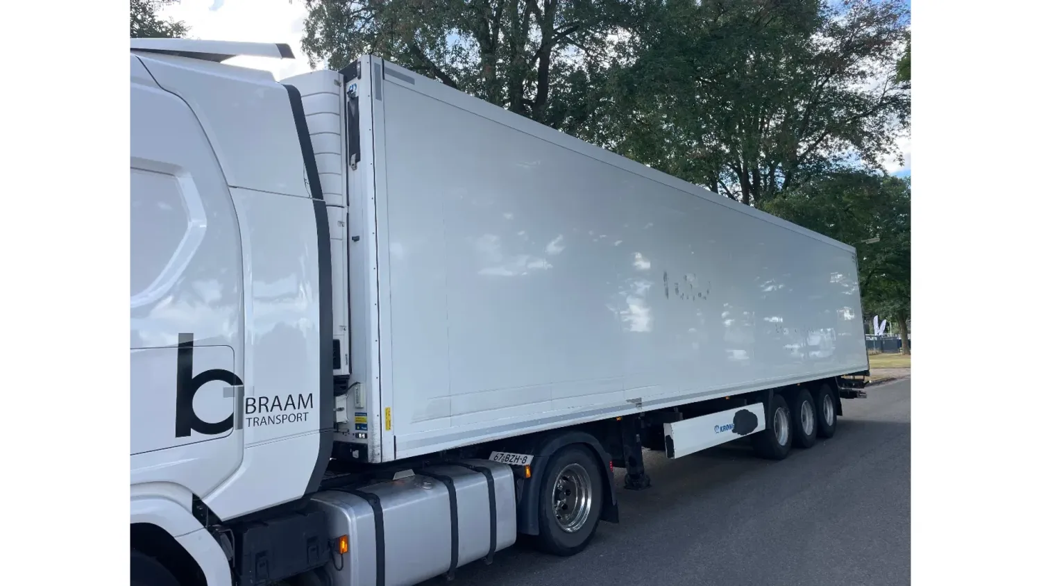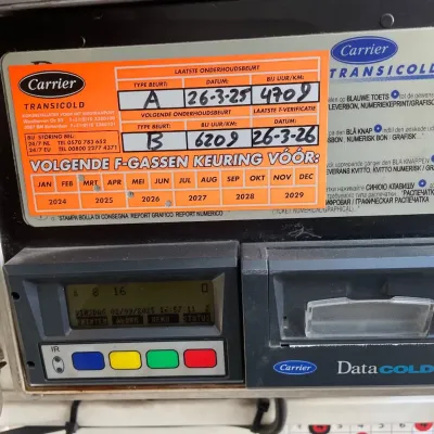 General information Year of construction: 2014 Registration number: ON-22-GF Axle configuration Tyre size: 385/65 22,5 Brakes: drum brakes Suspension: air suspension Rear axle 1: Max. axle load: 9000 kg Rear axle 2: Max. axle load: 9000 kg Rear axle 3: Lift axle; Max. axle load: 9000 kg Measures and weights Empty weight: 8.403 kg GVW: 41.000 kg Wheelbase: 877 cm Functional Dimensions of cargo space: 1340 x 250 x 260 cm Tail lift: Dholandia, slider lift, 2000 kg Cooling engine: diesel and electric Condition Visual appearance: good Other information Cool unit make: Carrier Additional information Please contact Maerten Braam (+31650476405, info@braamtrucks.com) for more information Cool unit brand: Carrier