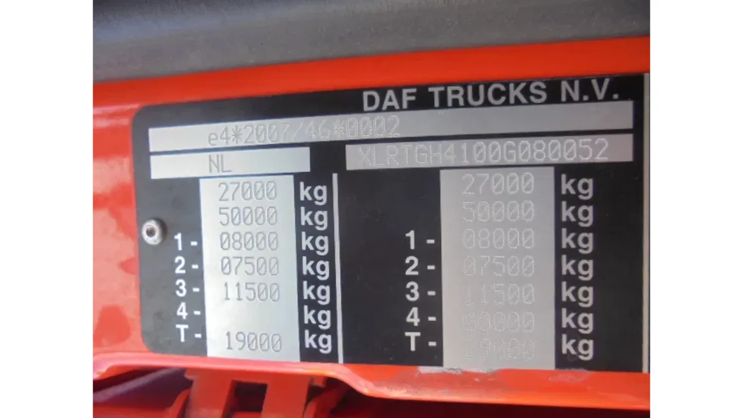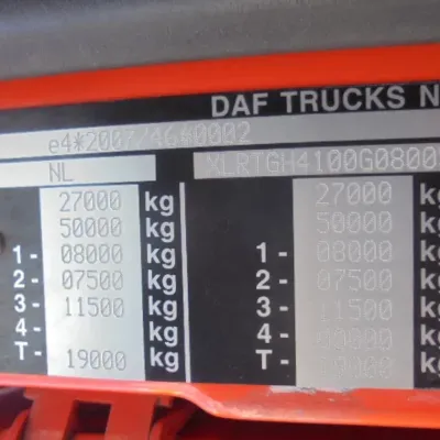 General information Bodywork: Standard tractor Year of construction: 2015 Reference number: 5561 Technical information Number of cylinders: 6 Drivetrain AdBlue system: Yes Transmission Transmission: ZF, Automatic Axle configuration Front axle: Max. axle load: 8000 kg; Steering Rear axle 1: Lift axle; Max. axle load: 7500 kg; Steering Rear axle 2: Double wheels; Max. axle load: 11500 kg Measures and weights Empty weight: 8.545 kg GVW: 27.000 kg Wheelbase: 395 cm Maintenance APK (MOT): tested until 10/2026 Condition General condition: good Technical condition: good Visual appearance: good = Dealer information = WWW.DENOTTERTRUCKS.COM