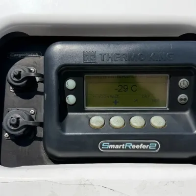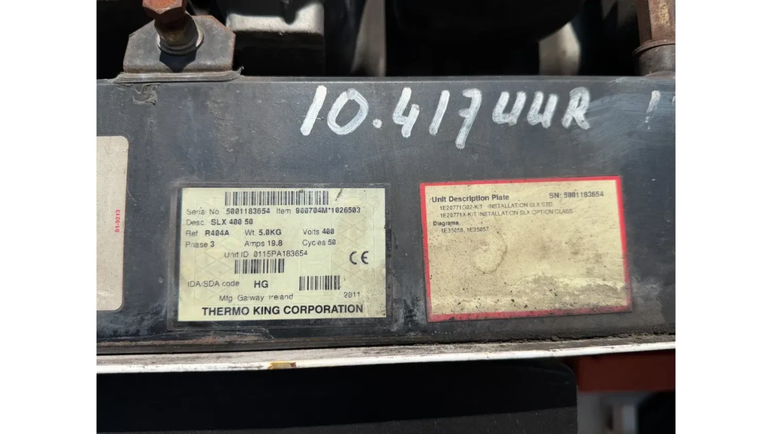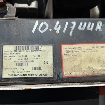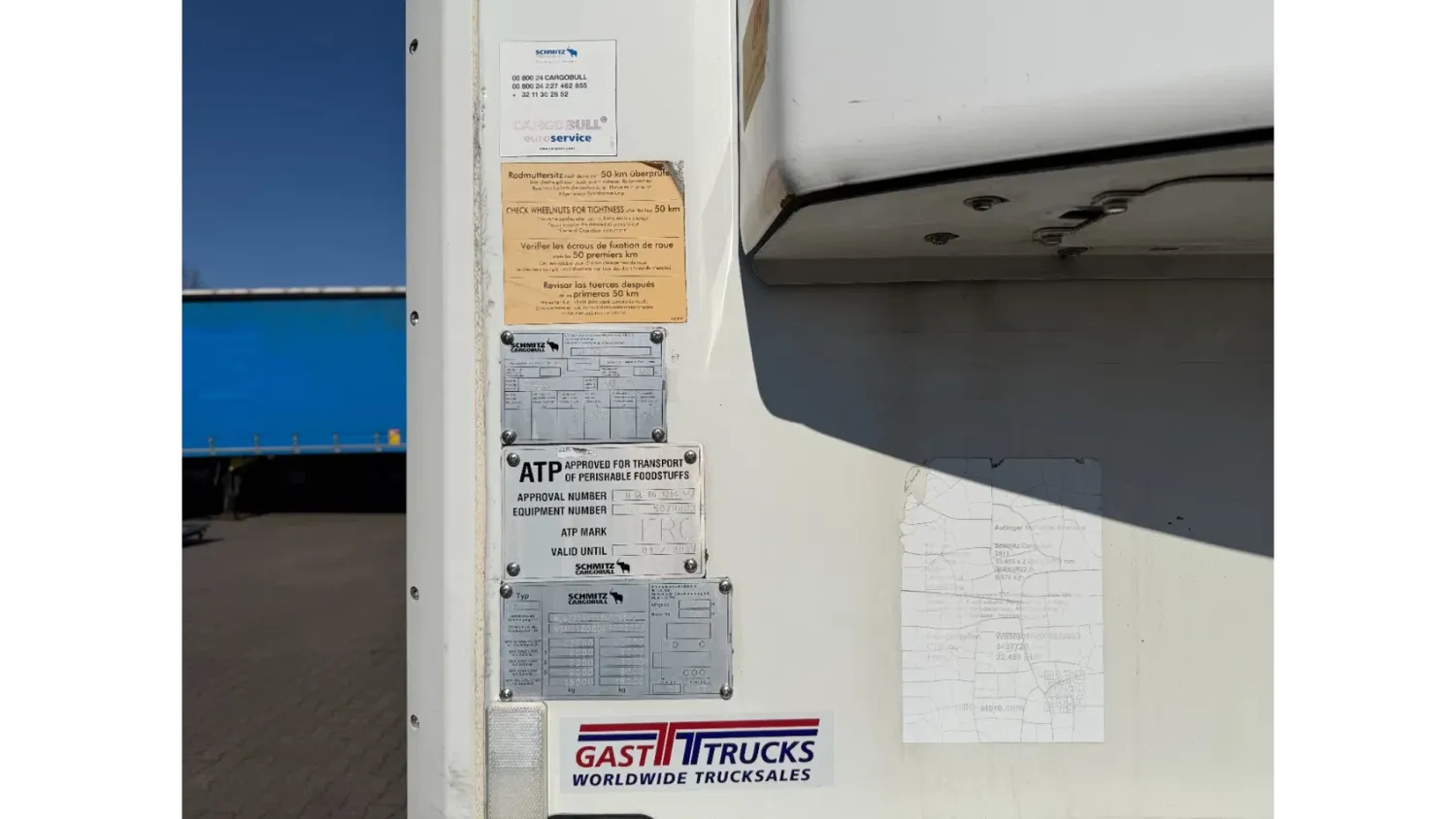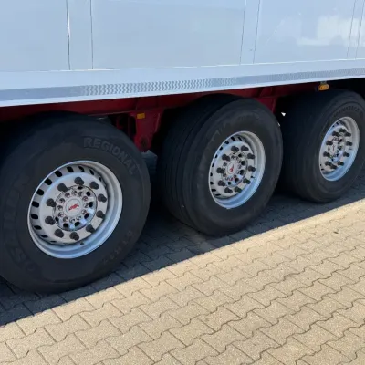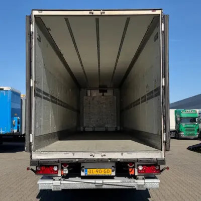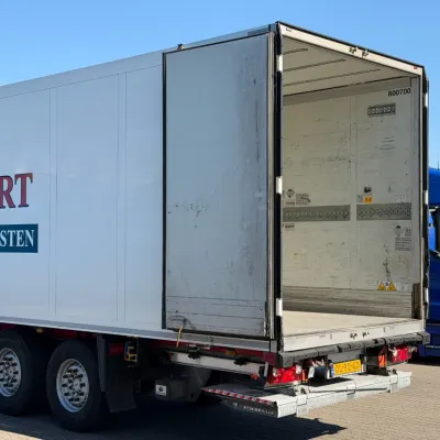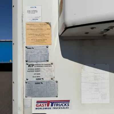 General information Year of construction: 2011 Reference number: 31744 Registration number: OL-90-GD Axle configuration Tyre size: 385/65 R22.5 Make axles: SCHMITZ ROTOS Rear axle 1: Max. axle load: 9000 kg Rear axle 2: Max. axle load: 9000 kg Rear axle 3: Max. axle load: 9000 kg Measures and weights Empty weight: 8.874 kg GVW: 42.000 kg Wheelbase: 891 cm Functional Dimensions of cargo space: 1331 x 251 x 270 cm Tail lift: DHOLLANDIA DHSM.30, slider lift, 2000 kg Cooling: 29 °C to 27 °C Make of bodywork: THERMO KING SLX 400 Cooling engine: diesel and electric (10303 operating hours diesel; 564 electric) Wall thickness: 5 mm Maintenance APK (MOT): tested until 09/2026 Condition General condition: good Technical condition: good Visual appearance: good