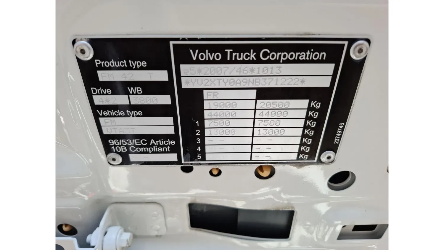 General information Bodywork: Standard tractor Year of construction: 2022 Reference number: T260999298 Drivetrain AdBlue system: Yes Transmission Transmission: AT-2612-F, 1 gears, Automatic Axle configuration Tyre size: 315/70*R22.5 Brakes: disc brakes Front axle: Max. axle load: 7500 kg; Steering; Tyre profile left: 60%; Tyre profile right: 60% Rear axle: Double wheels; Differential lock; Max. axle load: 13000 kg; Tyre profile left inner: 50%; Tyre profile left outer: 50%; Tyre profile right outer: 50%; Tyre profile right outer: 50% Measures Wheelbase: 380 cm Maintenance APK (MOT): tested until 01/2027 Condition General condition: good Technical condition: good Visual appearance: good