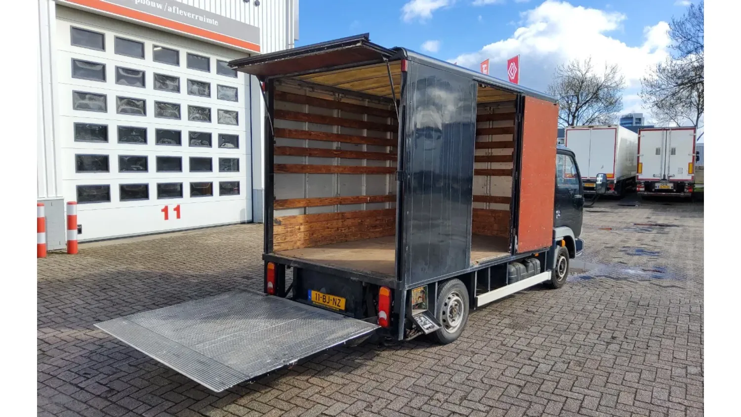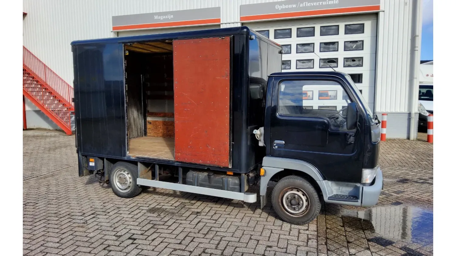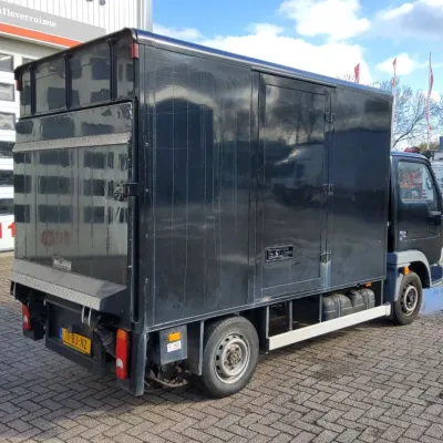 General information Type of body: Closed box Year of construction: 2003 Cab: single, day Reference number: NISSAN CABSTAR E - BAKWAGEN - ZWART - 11-BJ-NZ Registration number: 11-BJ-NZ Technical information Number of cylinders: 4 Type of fuel: Diesel Front axle: Max. axle load: 1420 kg; Steering Max. rear axle load: 1650 kg Measures and weights Empty weight: 2.290 kg GVW: 2.800 kg Wheelbase: 290 cm Functional Dimensions of cargo space: 3100 x 1750 x 1850 cm Tail lift: D'HOLLANDIA, tail lift, 660 kg Maintenance APK (MOT): tested until 12/2026 Condition General condition: good Technical condition: good Visual appearance: good Financial information VAT/margin: VAT qualifying