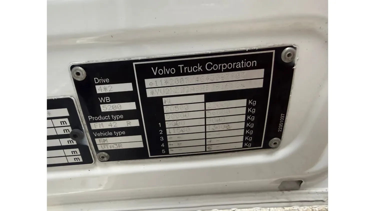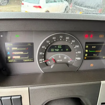 General information Year of construction: 2016 Cab: day Reference number: 313564 Registration number: 77-BHV-2 Technical information Number of cylinders: 6 Drivetrain AdBlue system: Yes Transmission Transmission: I-Shift, 12 gears, Automatic Axle configuration Brakes: disc brakes Front axle: Max. axle load: 9000 kg; Steering; Tyre profile left: 40%; Tyre profile right: 40% Rear axle: Max. axle load: 11500 kg; Tyre profile left: 40%; Tyre profile right: 40% Measures and weights Empty weight: 12.055 kg GVW: 22.000 kg Wheelbase: 520 cm Functional Dimensions of cargo space: 767 x 250 x 270 cm Tail lift: Dhollandia, tail lift, 2000 kg Maintenance APK (MOT): tested until 11/2026 Condition General condition: good Technical condition: good Visual appearance: good Damages: none Koelmotor out of working / cooling not working Volvo FM 420 BJ 11-2016 738.935KM EURO 6 Dhollandia Laadklep 2000KG Afmetingen binnenwerks: 767x250x270 CM Vangmuilkoppeling Dynamic Steering Achteruitrijcamera Automaat Airco NL Truck APK/TUV 17-11-2026