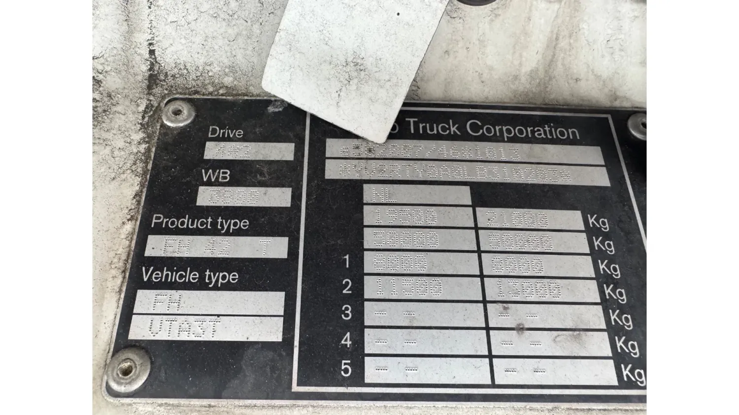 General information Bodywork: Standard tractor Year of construction: 2020 Registration number: 11-BPK-3 Technical information Number of cylinders: 6 Max. front axle load: 8000 kg Max. rear axle load: 11500 kg Measures and weights Empty weight: 8.435 kg GVW: 21.000 kg Wheelbase: 380 cm Maintenance APK (MOT): tested until 03/2027 Financial information Price: On request Additional information Please contact Gert Woudenberg (+31653111665, Gert@vd-burg.com) for more information