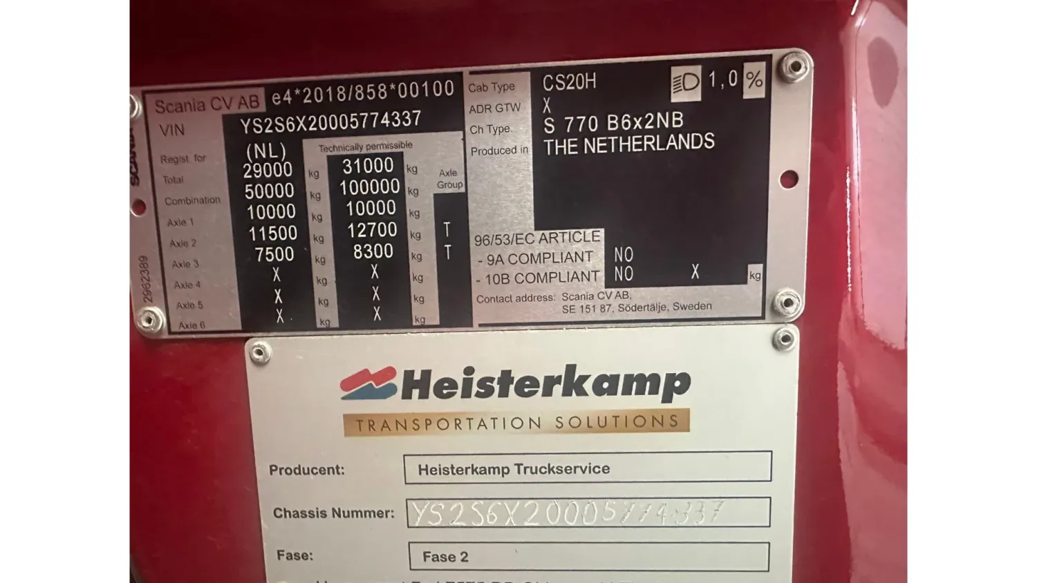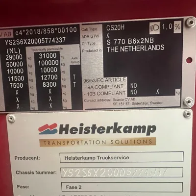 General information Bodywork: Hook arm system Year of construction: 2025 Reference number: 1790676 Registration number: BB-146-H Technical information Number of cylinders: 8 Drivetrain AdBlue system: Yes Fuel tank: 600 litres Axle configuration Max. front axle load: 10000 kg Rear axle 1: Max. axle load: 11500 kg Rear axle 2: Lift axle; Max. axle load: 7500 kg Measures and weights Empty weight: 13.263 kg GVW: 31.000 kg Wheelbase: 650 cm Functional Make of bodywork: VDL S 21-6600 Pump: Yes Maintenance APK (MOT): tested until 05/2026 Condition General condition: very good Technical condition: very good Visual appearance: very good SCANIA S770 V8 6x2 WITH VDL S21-6600 HOOK-LIFT SYSTEM EURO 6 L PACKAGE 770 HP V8 DRIVE 6X2 LAST AXLE DOUBLE MOUNTED WHEELBASE 515CM AIR SUSPENSION DIFF LOCK AUTOMATIC GEARBOX, CRUISE OPTION RETARDER, PTO CS20H SLEEPER CAB WITH A/C, PARKING HEATER RADIO, MEDIA, TRAFFIC, TELEPHONE NAVIGATION, DRIVER ASSISTANT REVERSING CAMERA LEATHER SEATS, V8 LOGO VDL S21-6600, 21-TON HOOK-LIFT SYSTEM HYDRAULIC CONTAINER LOCK STAINLESS STEEL TOOLBOXES TRAILER COUPLING AVAILABLE IMMEDIATELY WWW.GEURTSTRUCKS.COM FOLLOW US ON INSTAGRAM, FACEBOOK, AND TIKTOK TO WATCH VIDEOS OF OUR TRUCKS AND MACHINES FOR SALE. WE SPEAK GERMANY WE SPEAK ENGLISH WE SPEAK SPANISH