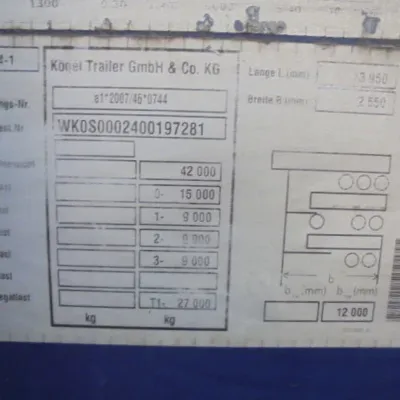 General information Year of construction: 2016 Reference number: 45 in stock Axle configuration Tyre size: 385/65R22.5 Make axles: BPW Brakes: drum brakes Rear axle 1: Max. axle load: 9000 kg Rear axle 2: Max. axle load: 9000 kg Rear axle 3: Max. axle load: 9000 kg Measures and weights Empty weight: 7.300 kg GVW: 42.000 kg Wheelbase: 901 cm Functional Dimensions of cargo space: 1360 x 250 x 270 cm Condition General condition: good Technical condition: good Visual appearance: good = Dealer information = WWW.DENOTTERTRUCKS.COM
