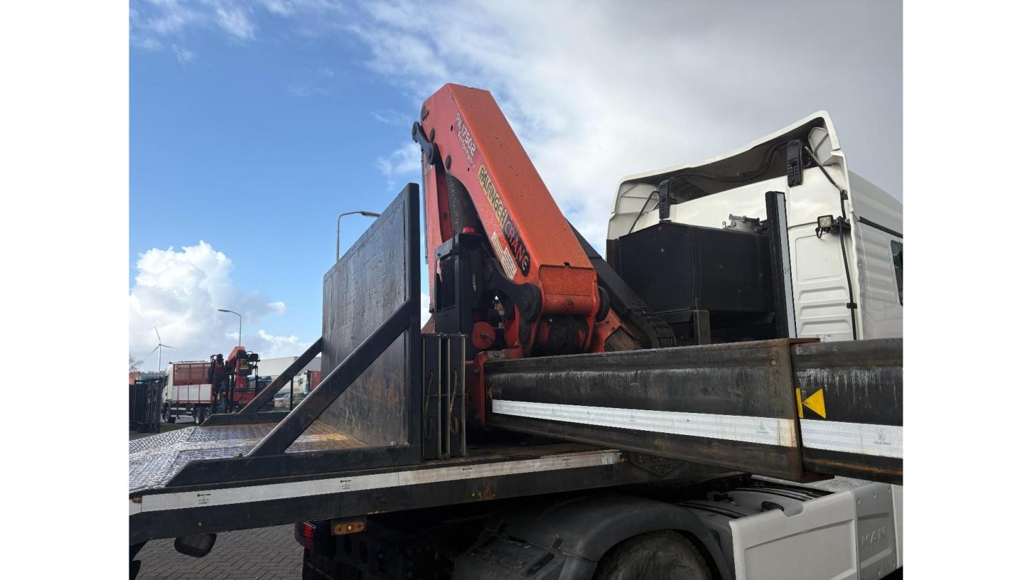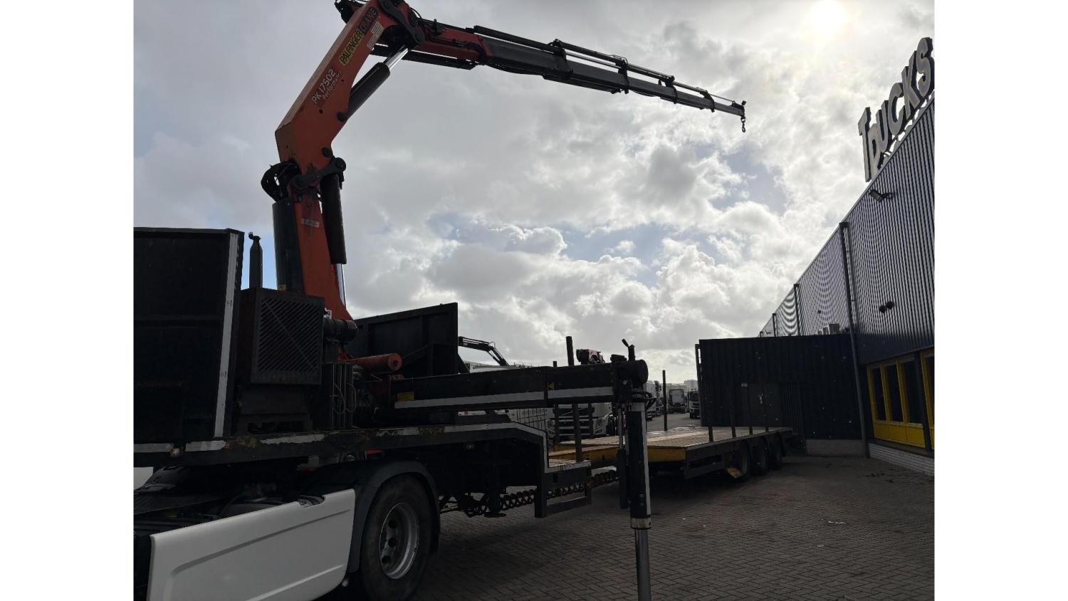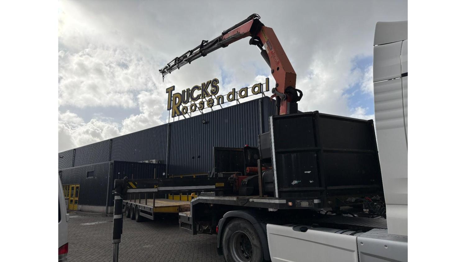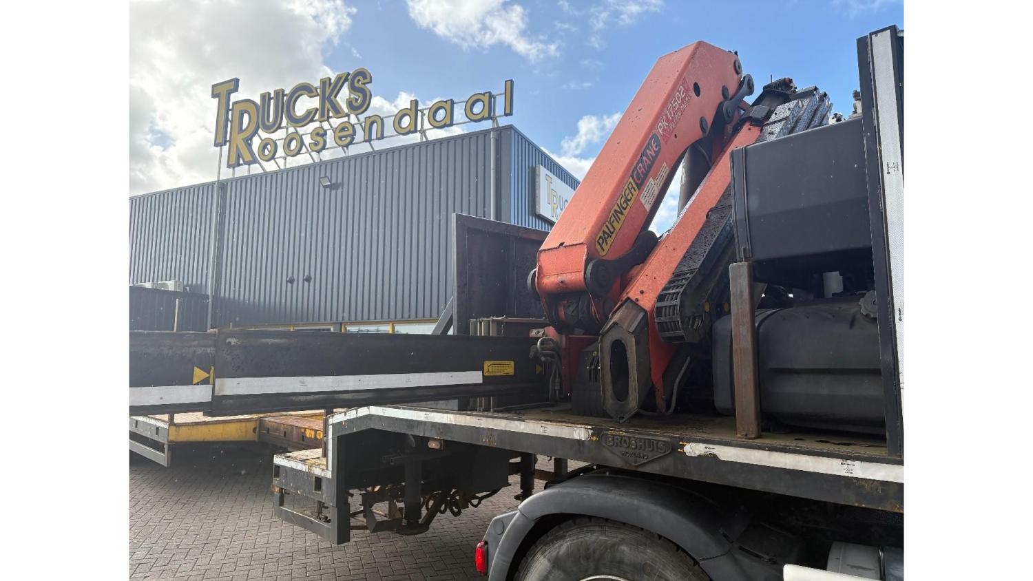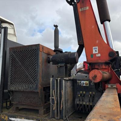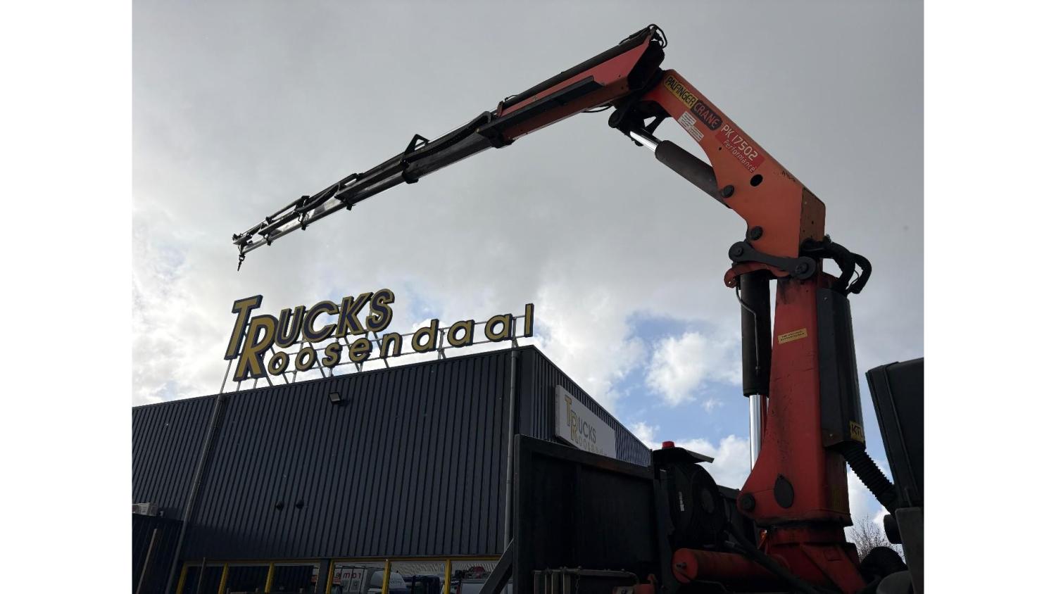General information Year of construction: 2000 Axle configuration Rear axle 1: Double wheels; Max. axle load: 9000 kg; Steering Rear axle 2: Double wheels; Max. axle load: 9000 kg; Steering Rear axle 3: Double wheels; Max. axle load: 9000 kg; Steering Weights Empty weight: 9.950 kg GVW: 39.000 kg Functional Dimensions of cargo space: 1810 x 250 x 90 cm Crane: PALFINGER 17502, year of manufacture 2009, behind the cab Make of bodywork: PALFINGER 17502 Height of cargo floor: 90 cm Maintenance APK (MOT): tested until 09/2026 Condition General condition: very good Technical condition: very good Visual appearance: very good Identification Reference number: TR1728 Registration number: OR-33-ND Serial number: XL931N5SAYL007501 Structure Construction year: 2009 Crane Number of hydraulic extensions: 5 Remote control: ✓ Rotator: ✓ Meter capacity: 15 m Capacity kilo: 5700 kg