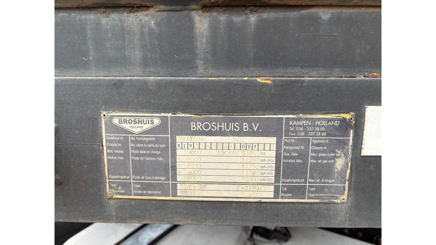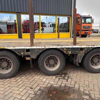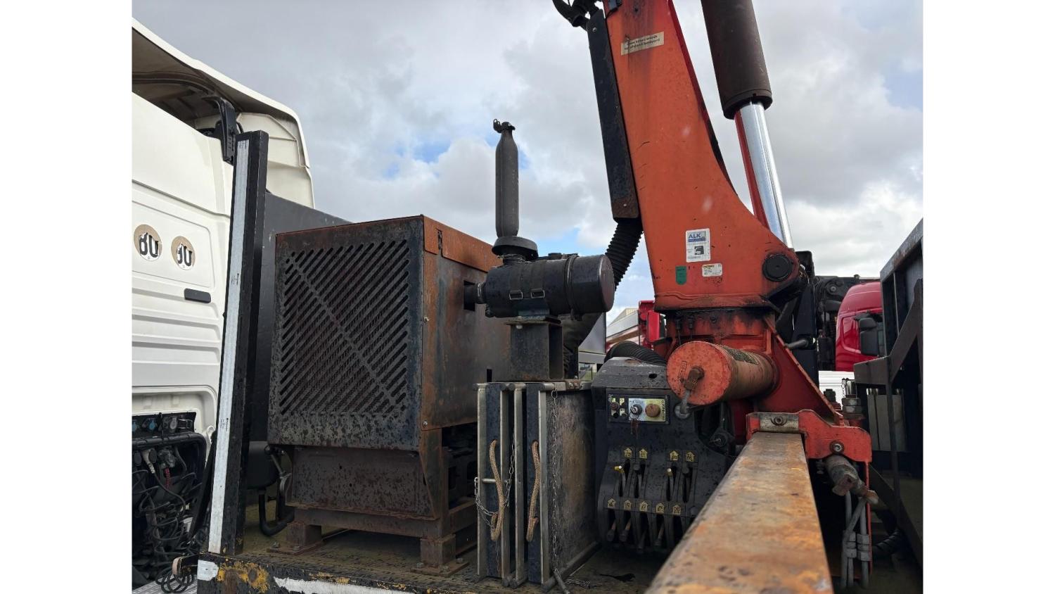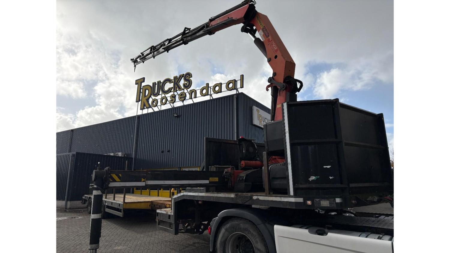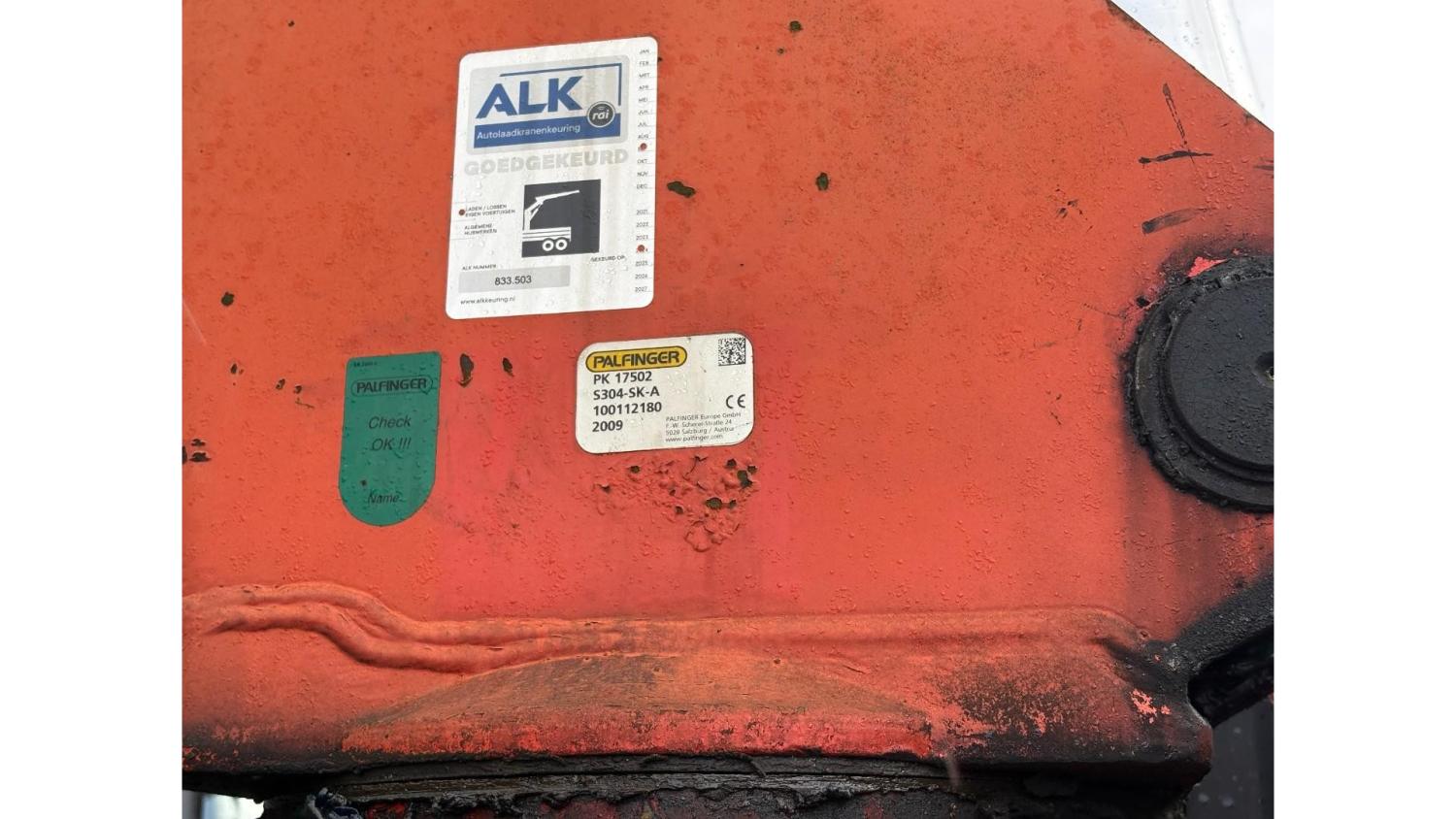 General information Year of construction: 2000 Axle configuration Rear axle 1: Double wheels; Max. axle load: 9000 kg; Steering Rear axle 2: Double wheels; Max. axle load: 9000 kg; Steering Rear axle 3: Double wheels; Max. axle load: 9000 kg; Steering Weights Empty weight: 9.950 kg GVW: 39.000 kg Functional Dimensions of cargo space: 1810 x 250 x 90 cm Crane: PALFINGER 17502, year of manufacture 2009, behind the cab Make of bodywork: PALFINGER 17502 Height of cargo floor: 90 cm Maintenance APK (MOT): tested until 09/2026 Condition General condition: very good Technical condition: very good Visual appearance: very good Identification Reference number: TR1728 Registration number: OR-33-ND Serial number: XL931N5SAYL007501 Structure Construction year: 2009 Crane Number of hydraulic extensions: 5 Remote control: ✓ Rotator: ✓ Meter capacity: 15 m Capacity kilo: 5700 kg