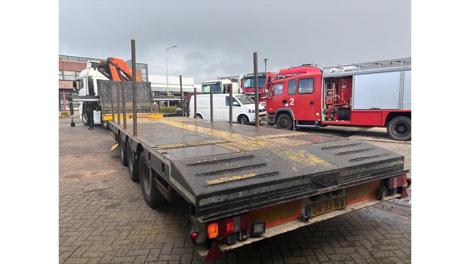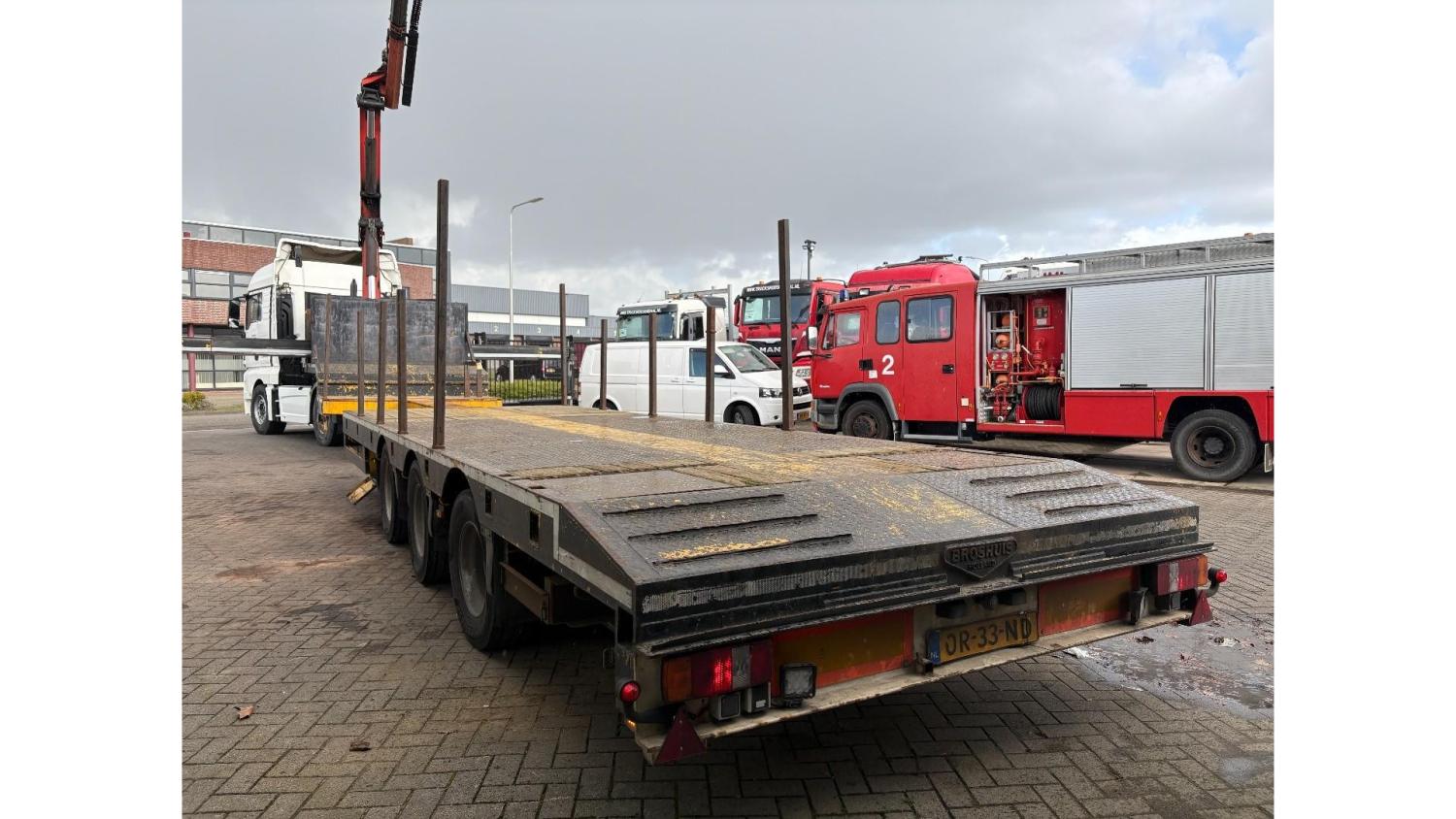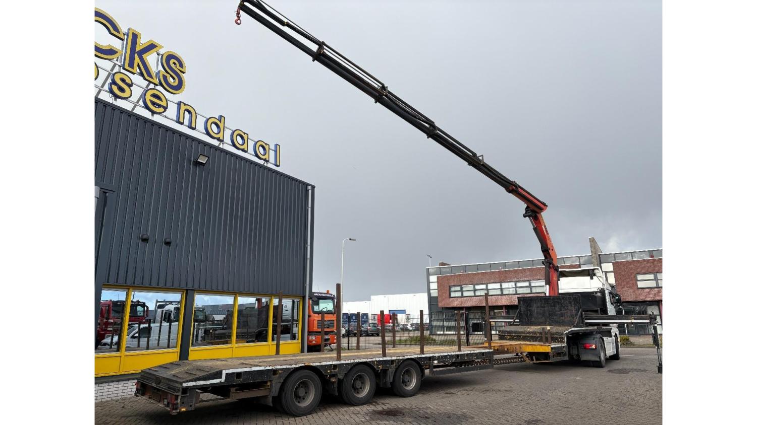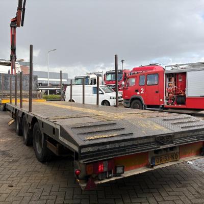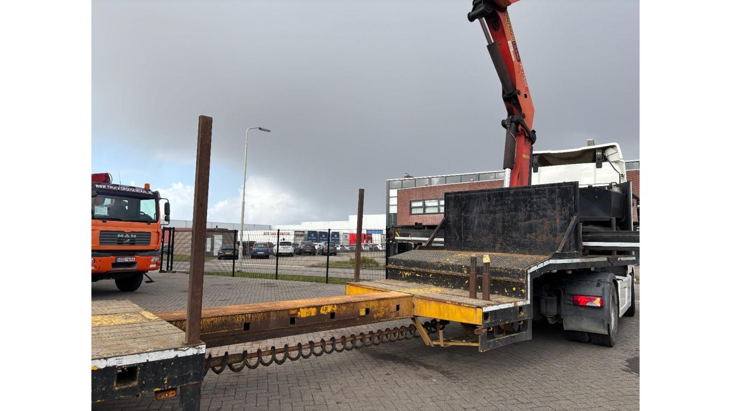 General information Year of construction: 2000 Axle configuration Rear axle 1: Double wheels; Max. axle load: 9000 kg; Steering Rear axle 2: Double wheels; Max. axle load: 9000 kg; Steering Rear axle 3: Double wheels; Max. axle load: 9000 kg; Steering Weights Empty weight: 9.950 kg GVW: 39.000 kg Functional Dimensions of cargo space: 1810 x 250 x 90 cm Crane: PALFINGER 17502, year of manufacture 2009, behind the cab Make of bodywork: PALFINGER 17502 Height of cargo floor: 90 cm Maintenance APK (MOT): tested until 09/2026 Condition General condition: very good Technical condition: very good Visual appearance: very good Identification Reference number: TR1728 Registration number: OR-33-ND Serial number: XL931N5SAYL007501 Structure Construction year: 2009 Crane Number of hydraulic extensions: 5 Remote control: ✓ Rotator: ✓ Meter capacity: 15 m Capacity kilo: 5700 kg