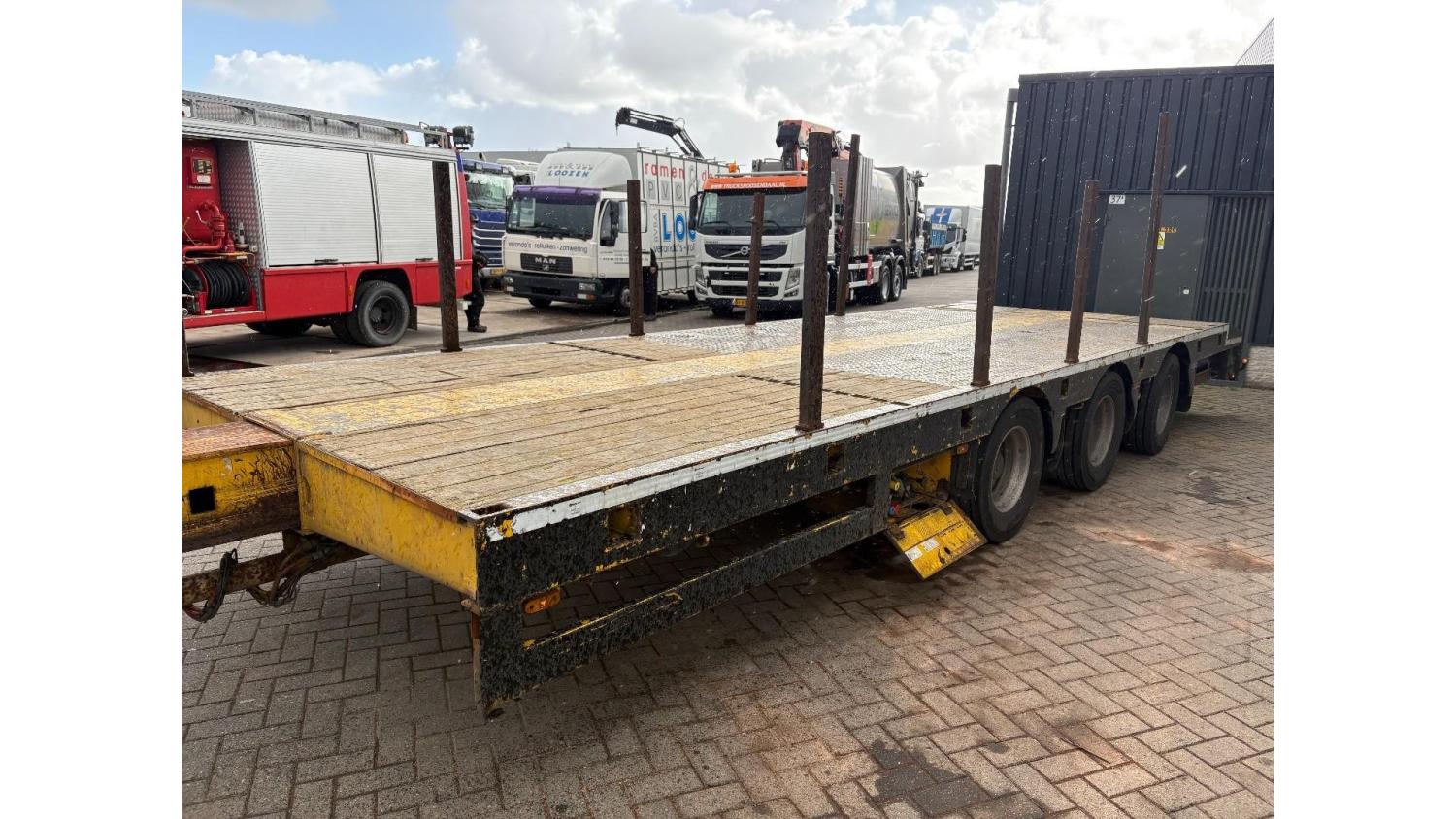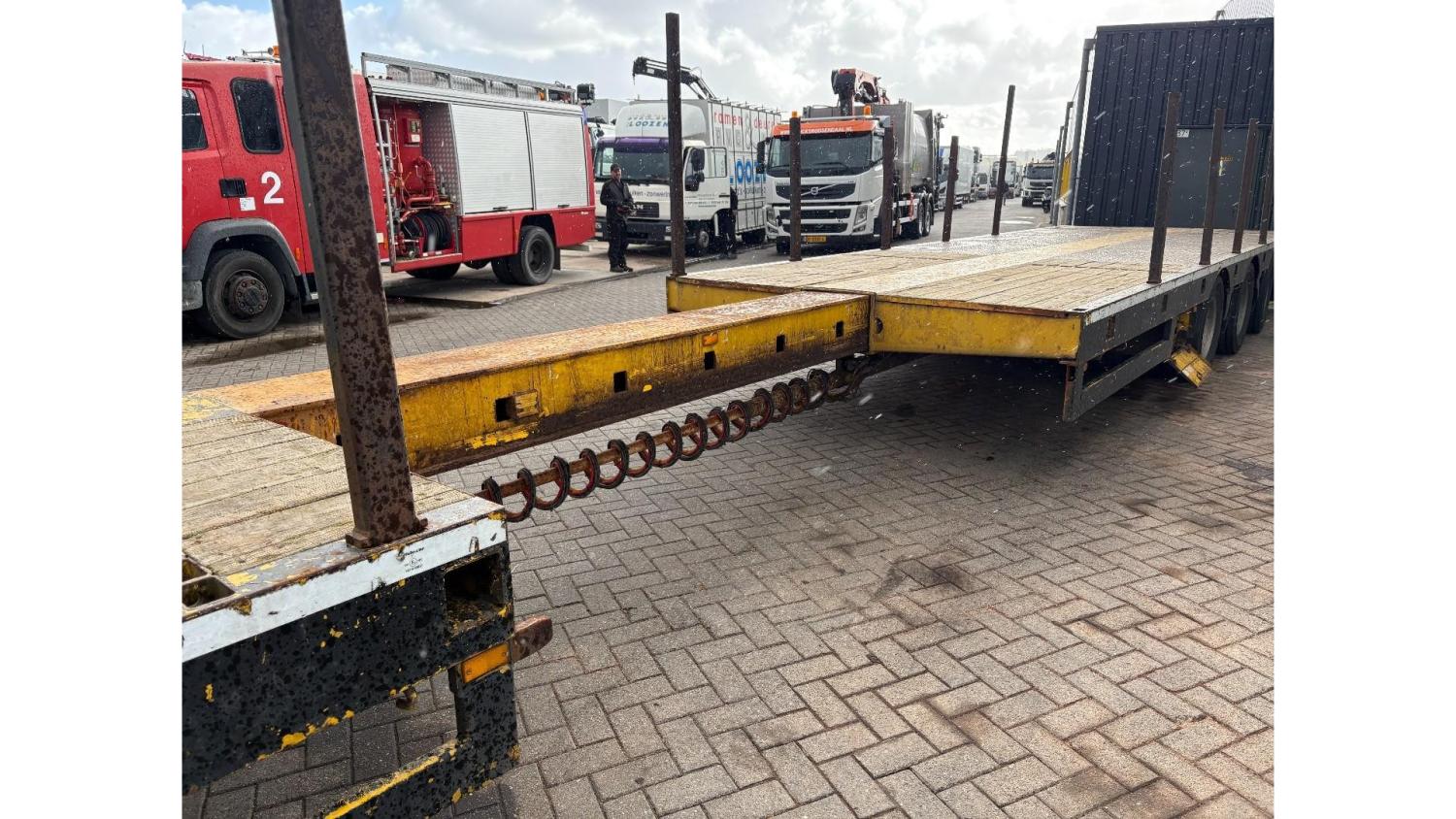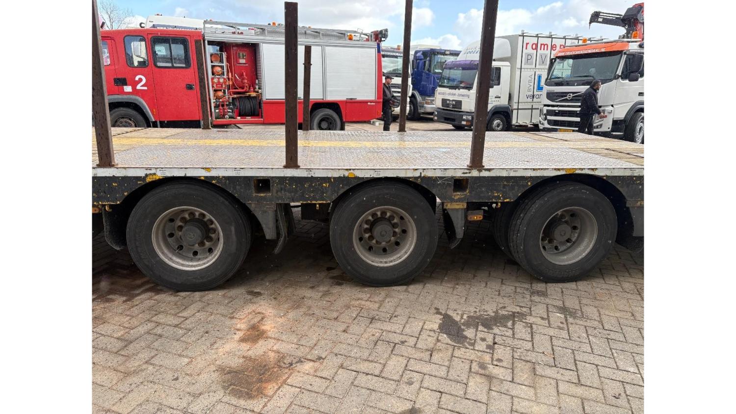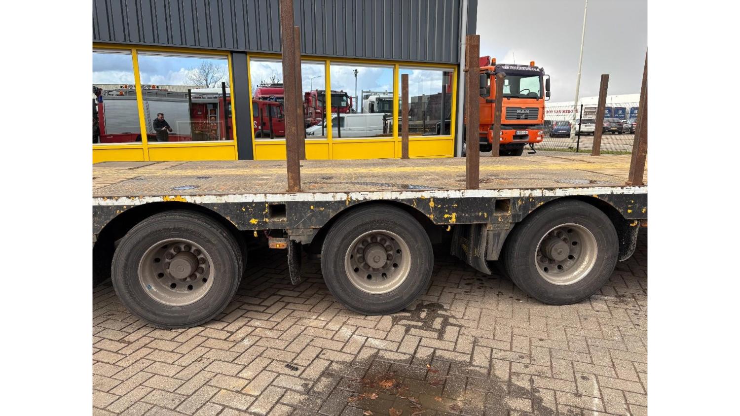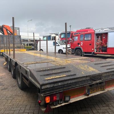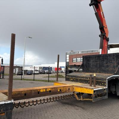 General information Year of construction: 2000 Axle configuration Rear axle 1: Double wheels; Max. axle load: 9000 kg; Steering Rear axle 2: Double wheels; Max. axle load: 9000 kg; Steering Rear axle 3: Double wheels; Max. axle load: 9000 kg; Steering Weights Empty weight: 9.950 kg GVW: 39.000 kg Functional Dimensions of cargo space: 1810 x 250 x 90 cm Crane: PALFINGER 17502, year of manufacture 2009, behind the cab Make of bodywork: PALFINGER 17502 Height of cargo floor: 90 cm Maintenance APK (MOT): tested until 09/2026 Condition General condition: very good Technical condition: very good Visual appearance: very good Identification Reference number: TR1728 Registration number: OR-33-ND Serial number: XL931N5SAYL007501 Structure Construction year: 2009 Crane Number of hydraulic extensions: 5 Remote control: ✓ Rotator: ✓ Meter capacity: 15 m Capacity kilo: 5700 kg