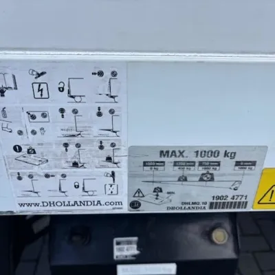 General information Year of construction: 2019 Cab: day Technical information Number of cylinders: 4 Axle configuration Make axles: MERCEDES Front axle: Steering; Tyre profile left: 70%; Tyre profile right: 70%; Reduction: single reduction Rear axle: Tyre profile left: 70%; Tyre profile right: 70% Measures and weights Empty weight: 5.434 kg GVW: 7.490 kg Wheelbase: 422 cm Functional Dimensions of cargo space: 610 x 250 x 240 cm Tail lift: D'HOLLANDIA DHLMQ.10, tail lift, 1000 kg Maintenance APK (MOT): tested until 02/2027 Condition General condition: very good Technical condition: very good Visual appearance: very good Financial information Price: On request Product safety Manufacturer: JH TRUCKS Graham Bellstraat 33 8013 PL ZWOLLE, NL 0655143481 info@jhtrucks.nl EU responsible: Jan Haverhoek Graham Bellstraat 33 8013 PL ZWOLLE, NL 0655143481 info@jhtrucks.nl Other information Cargo space outer length: 610 cm Cargo space outer width: 250 cm Cargo space outer height: 240 cm