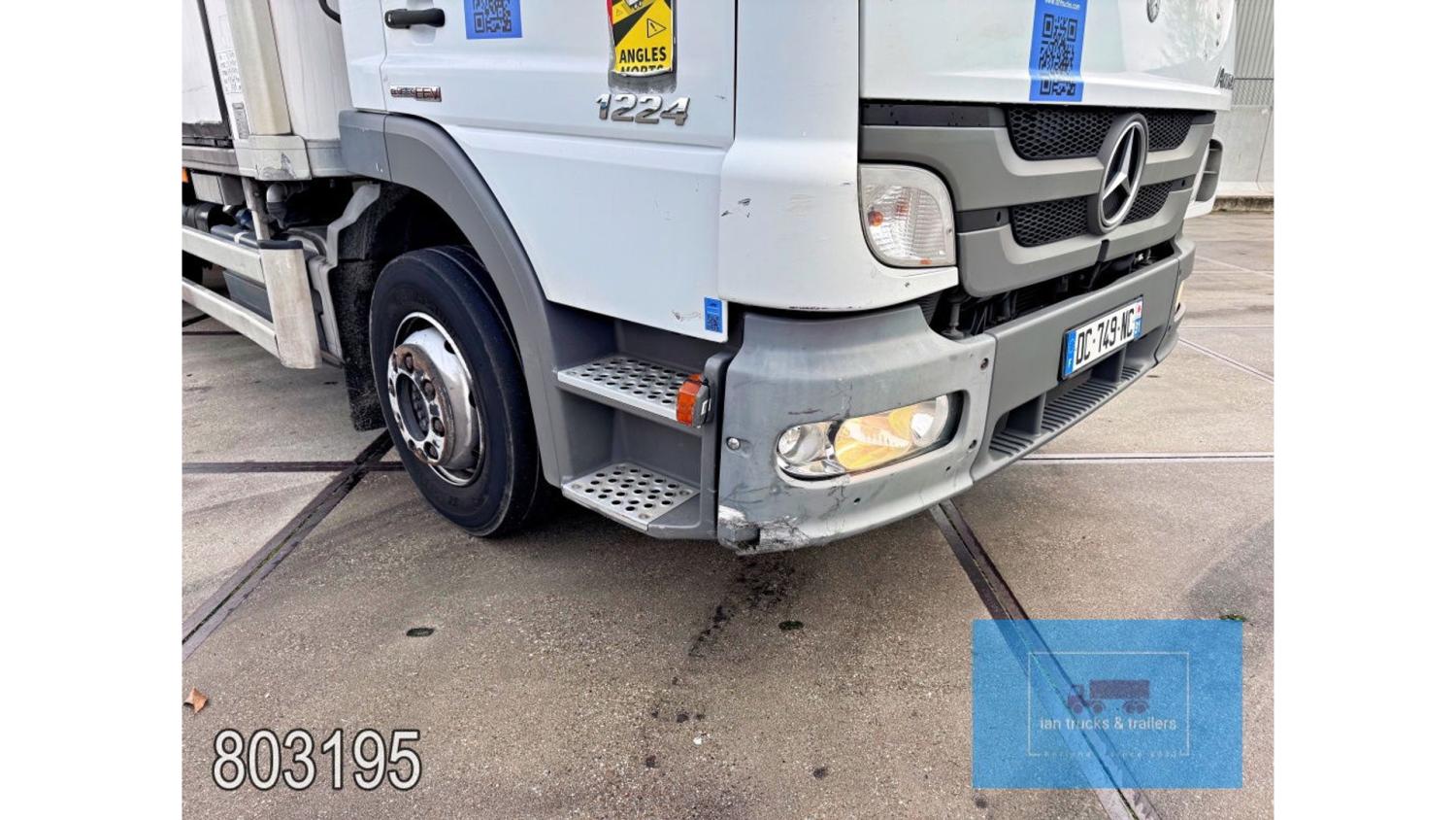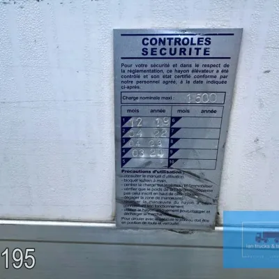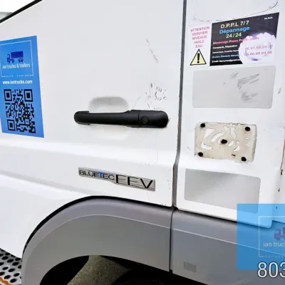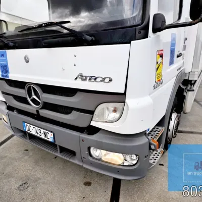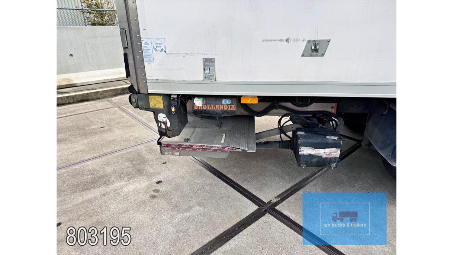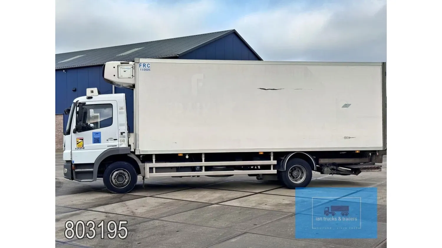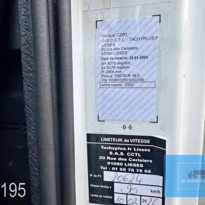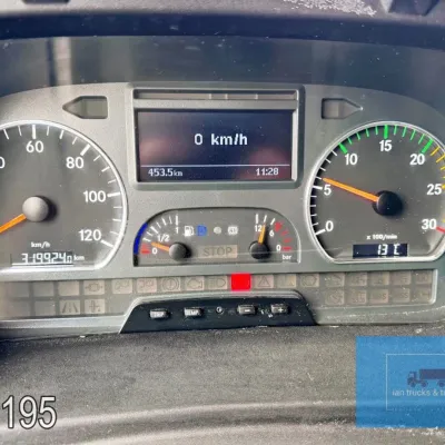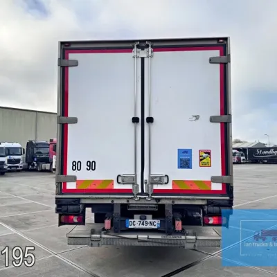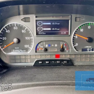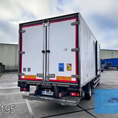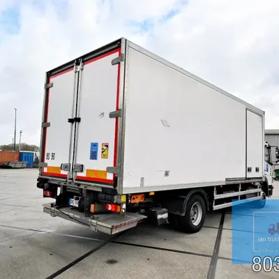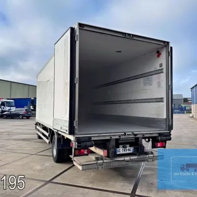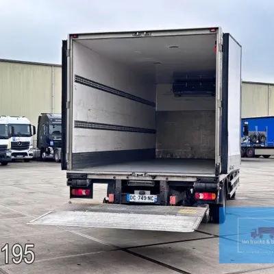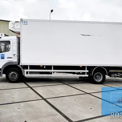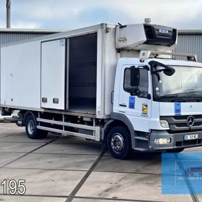 General information Year of construction: 2014 Cab: day Reference number: 803195K Technical information Number of cylinders: 6 Drivetrain AdBlue system: Yes Fuel tank: 125 litres Transmission Transmission: G 85-6/6,7-0,73, 6 gears, Manual gearbox Axle configuration Tyre size: 265/70R19,5 Brakes: disc brakes Front axle: Max. axle load: 4900 kg; Steering; Tyre profile left: 50%; Tyre profile right: 50%; Suspension: leaf suspension Rear axle: Double wheels; Max. axle load: 8100 kg; Tyre profile left inner: 50%; Tyre profile left outer: 50%; Tyre profile right outer: 50%; Tyre profile right outer: 50%; Suspension: air suspension Measures and weights Empty weight: 8.160 kg GVW: 11.990 kg Wheelbase: 476 cm Functional Dimensions of cargo space: 670 x 246 x 225 cm Tail lift: DHOLLANDIA DHSM.15, slider lift, 1500 kg Make of bodywork: LAMBERET SUPRA 850 Cooling engine: diesel and electric Wall thickness: 5 mm Condition General condition: good Technical condition: good Visual appearance: good Damages: none Other information Cool unit make: Carrier Additional information Please contact Ian Anema (+31611159159, ian@iantrucks.com) for more information Mercedes-Benz Atego 1224 4x2 Refrigerated Truck – Euro 5 (2014) First registration: 28/01/2014 Chassis number: WDB9702571L803195 Mileage: 319,000 km ⸻ ⚙️ Technical specifications: • Engine: 240 hp Euro 5 Bluetec 5 / EEV OM 936 6 cylinder • Transmission: 6-speed manual • Drive: 4x2 • Suspension: Leaf springs front, air suspension rear • Wheelbase: 476 cm ⸻ ❄️ Body & equipment: • Refrigeration unit: Carrier Supra 850 • Box dimensions: 670 x 246 x 225 cm • Tail lift: Dhollandia SM 1500 – 1,500 kg capacity • Cab: Day cab with air conditioning • Colour: Original white Cool unit brand: Carrier