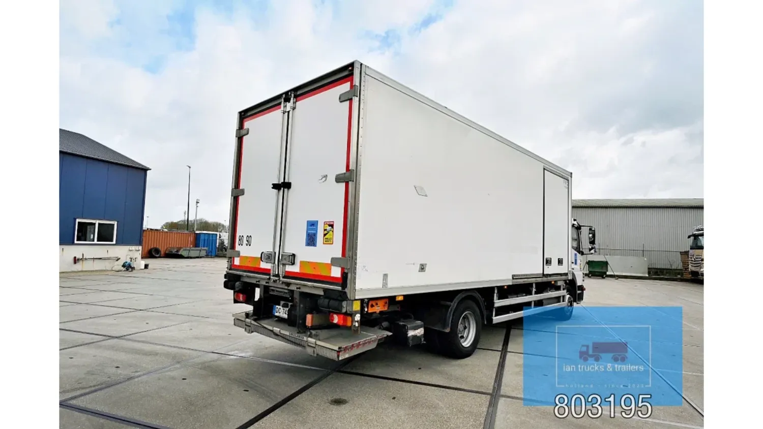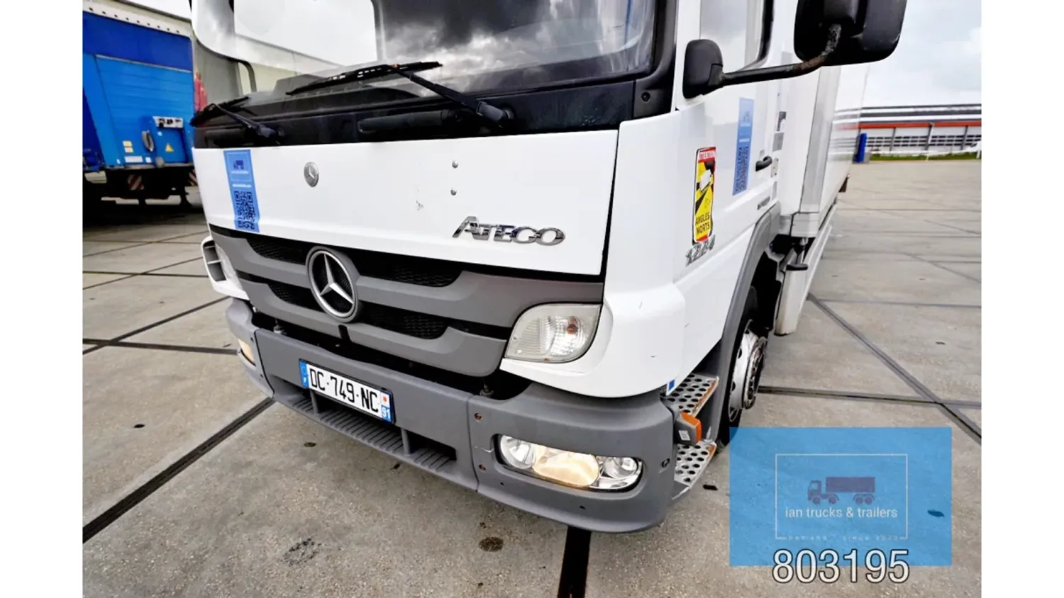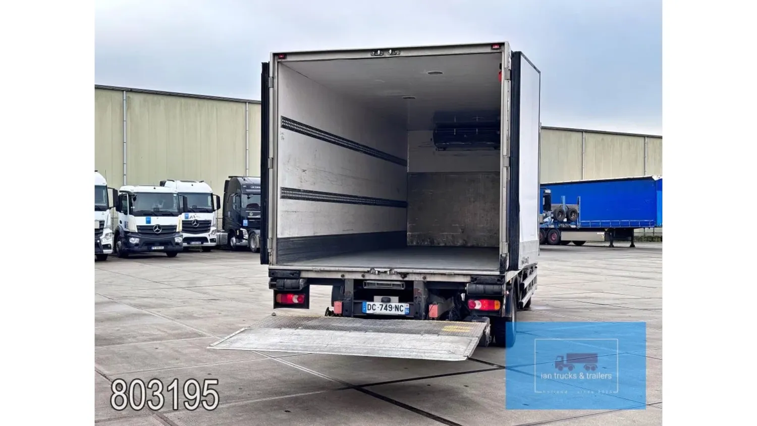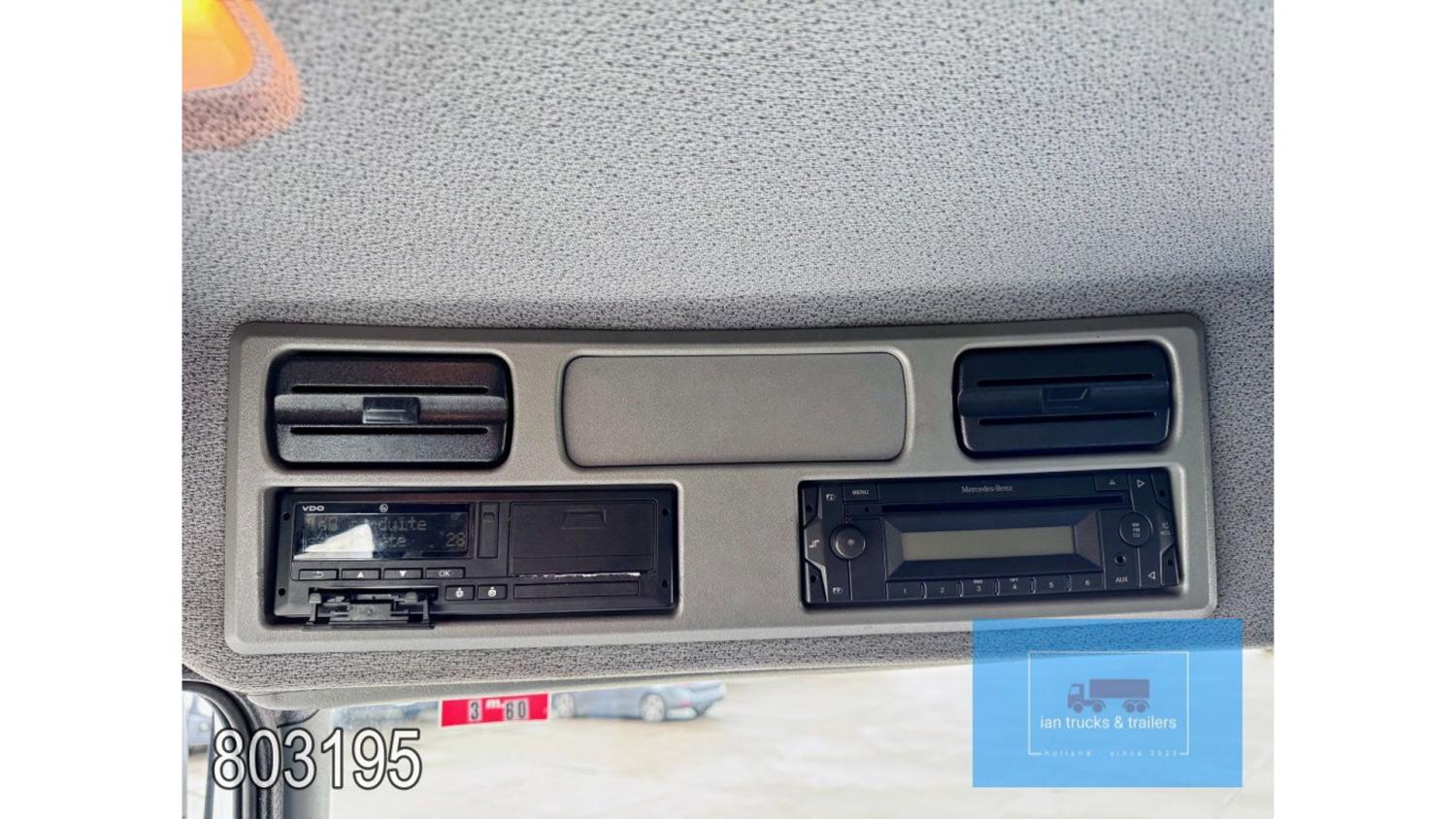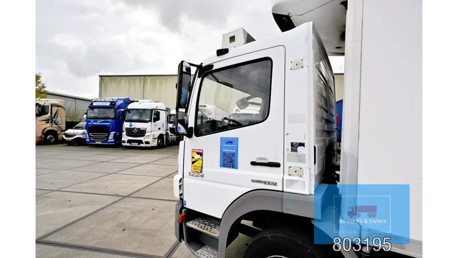 General information Year of construction: 2014 Cab: day Reference number: 803195K Technical information Number of cylinders: 6 Drivetrain AdBlue system: Yes Fuel tank: 125 litres Transmission Transmission: G 85-6/6,7-0,73, 6 gears, Manual gearbox Axle configuration Tyre size: 265/70R19,5 Brakes: disc brakes Front axle: Max. axle load: 4900 kg; Steering; Tyre profile left: 50%; Tyre profile right: 50%; Suspension: leaf suspension Rear axle: Double wheels; Max. axle load: 8100 kg; Tyre profile left inner: 50%; Tyre profile left outer: 50%; Tyre profile right outer: 50%; Tyre profile right outer: 50%; Suspension: air suspension Measures and weights Empty weight: 8.160 kg GVW: 11.990 kg Wheelbase: 476 cm Functional Dimensions of cargo space: 670 x 246 x 225 cm Tail lift: DHOLLANDIA DHSM.15, slider lift, 1500 kg Make of bodywork: LAMBERET SUPRA 850 Cooling engine: diesel and electric Wall thickness: 5 mm Condition General condition: good Technical condition: good Visual appearance: good Damages: none Other information Cool unit make: Carrier Additional information Please contact Ian Anema (+31611159159, ian@iantrucks.com) for more information Mercedes-Benz Atego 1224 4x2 Refrigerated Truck – Euro 5 (2014) First registration: 28/01/2014 Chassis number: WDB9702571L803195 Mileage: 319,000 km ⸻ ⚙️ Technical specifications: • Engine: 240 hp Euro 5 Bluetec 5 / EEV OM 936 6 cylinder • Transmission: 6-speed manual • Drive: 4x2 • Suspension: Leaf springs front, air suspension rear • Wheelbase: 476 cm ⸻ ❄️ Body & equipment: • Refrigeration unit: Carrier Supra 850 • Box dimensions: 670 x 246 x 225 cm • Tail lift: Dhollandia SM 1500 – 1,500 kg capacity • Cab: Day cab with air conditioning • Colour: Original white Cool unit brand: Carrier