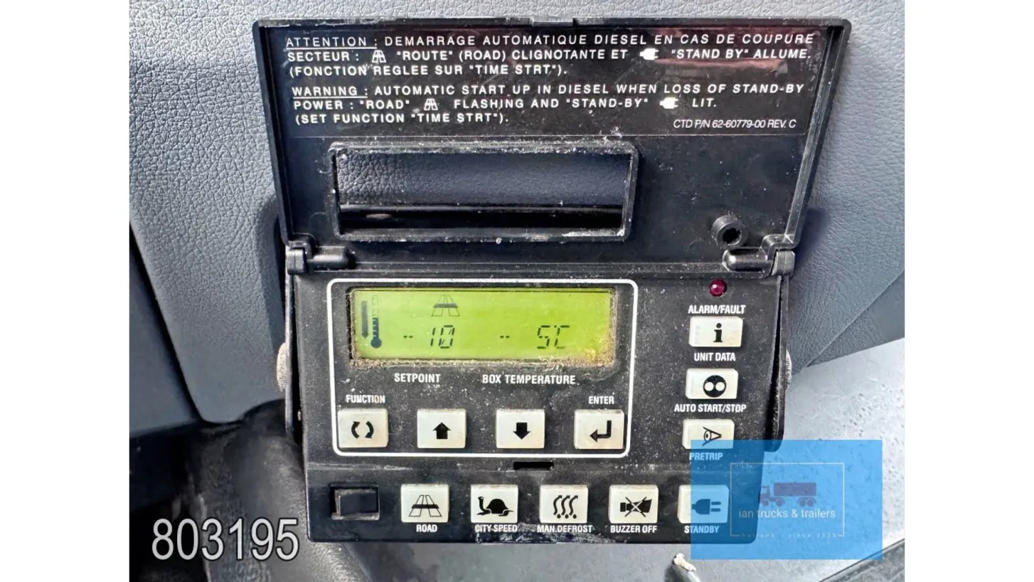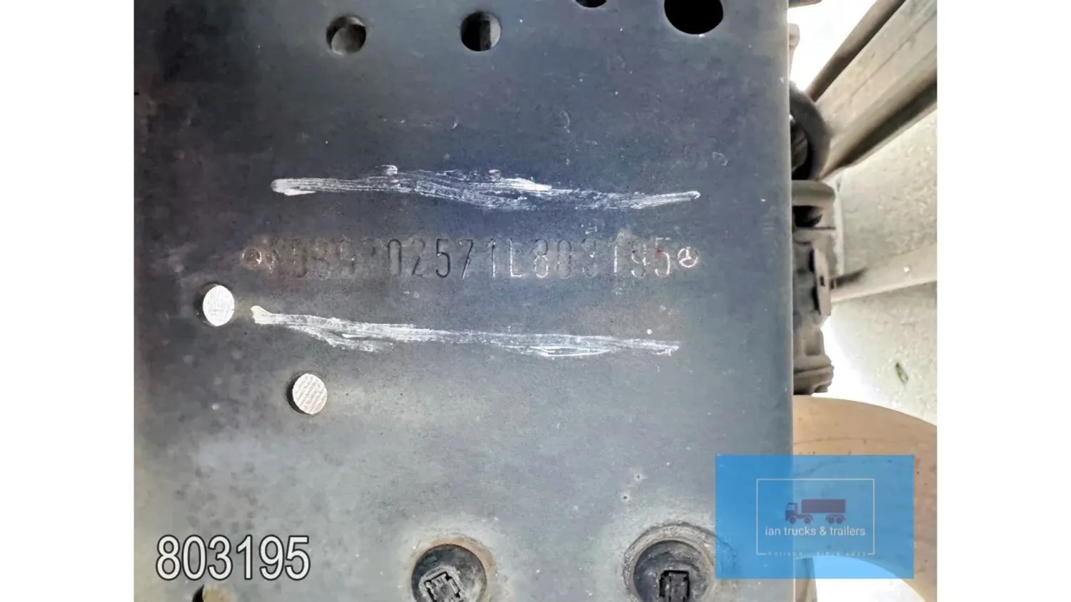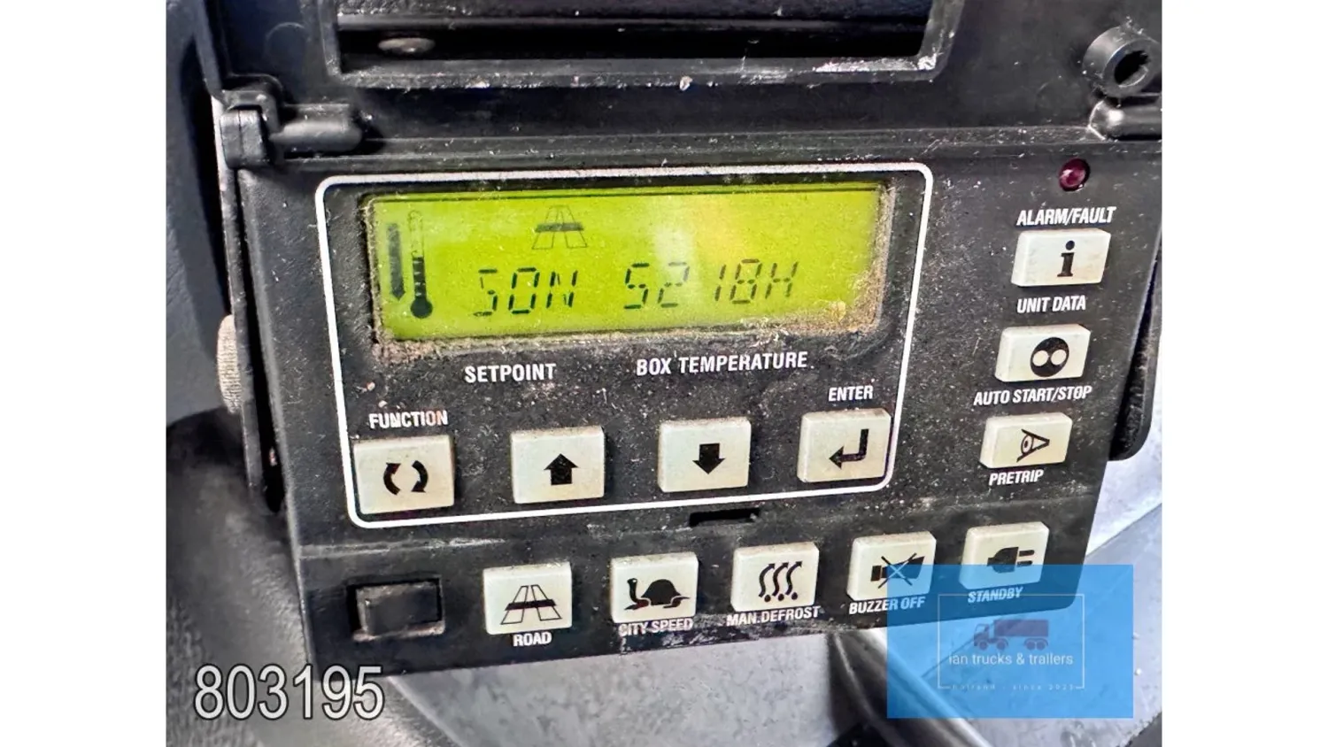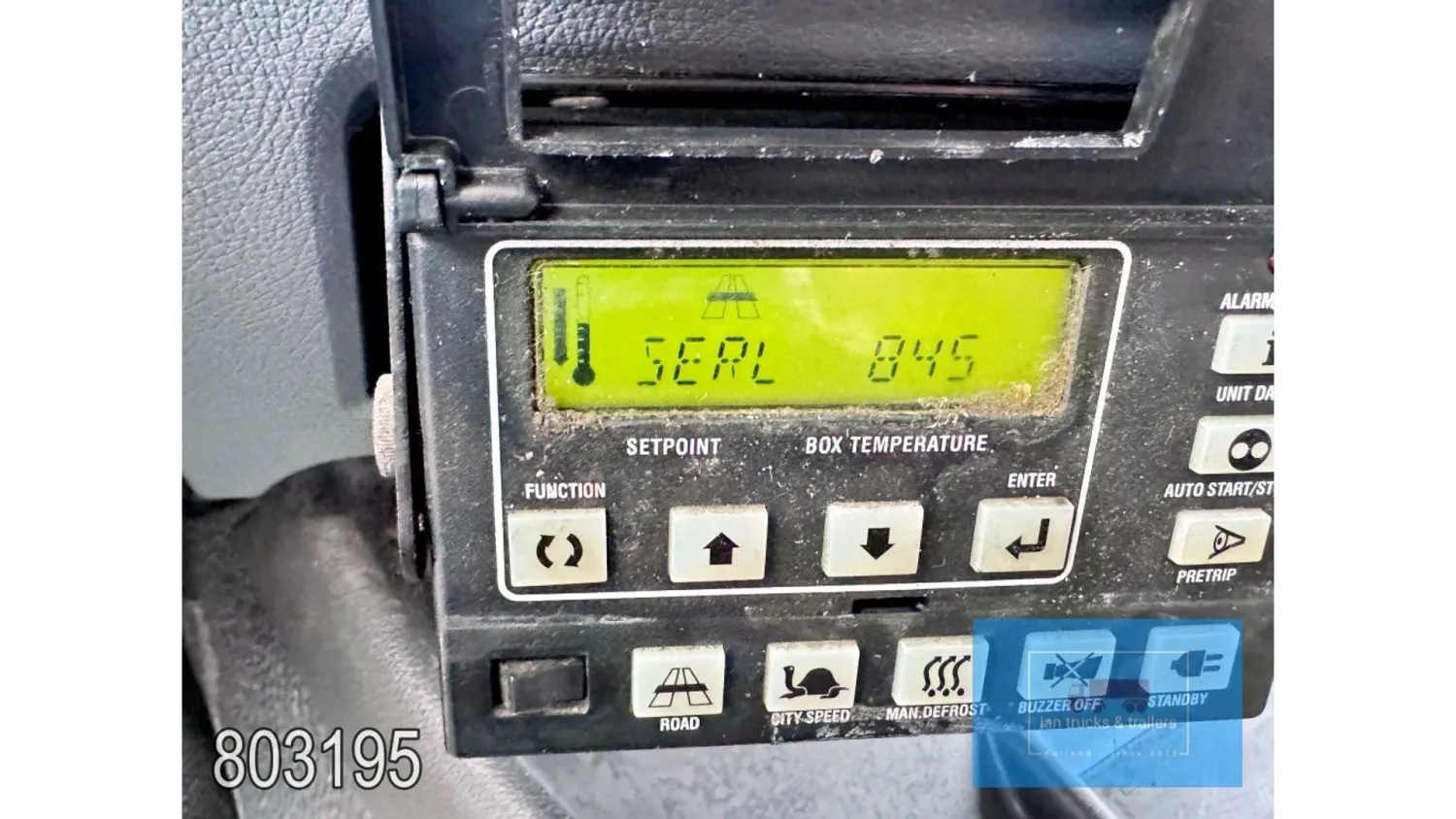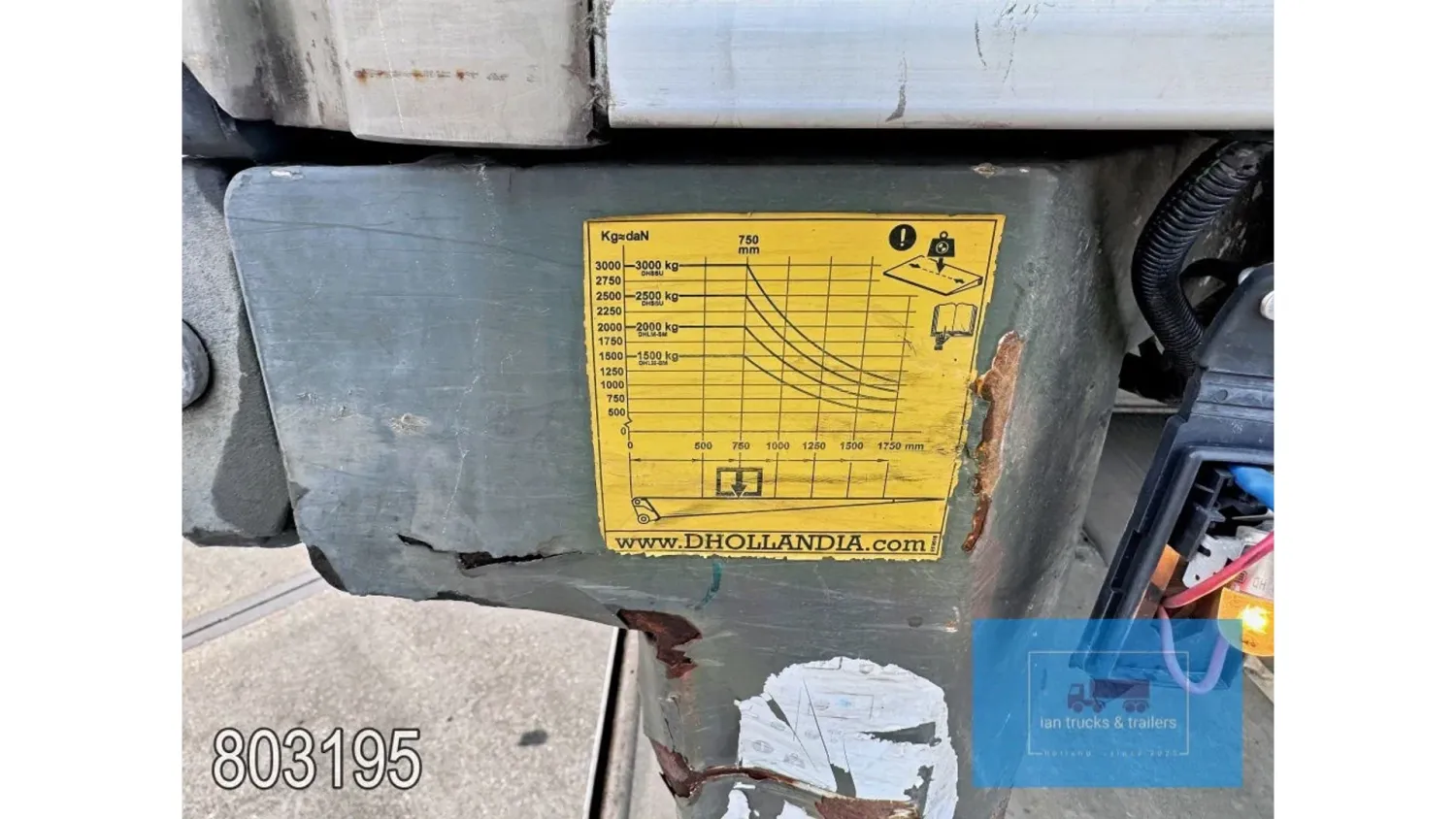 General information Year of construction: 2014 Cab: day Reference number: 803195K Technical information Number of cylinders: 6 Drivetrain AdBlue system: Yes Fuel tank: 125 litres Transmission Transmission: G 85-6/6,7-0,73, 6 gears, Manual gearbox Axle configuration Tyre size: 265/70R19,5 Brakes: disc brakes Front axle: Max. axle load: 4900 kg; Steering; Tyre profile left: 50%; Tyre profile right: 50%; Suspension: leaf suspension Rear axle: Double wheels; Max. axle load: 8100 kg; Tyre profile left inner: 50%; Tyre profile left outer: 50%; Tyre profile right outer: 50%; Tyre profile right outer: 50%; Suspension: air suspension Measures and weights Empty weight: 8.160 kg GVW: 11.990 kg Wheelbase: 476 cm Functional Dimensions of cargo space: 670 x 246 x 225 cm Tail lift: DHOLLANDIA DHSM.15, slider lift, 1500 kg Make of bodywork: LAMBERET SUPRA 850 Cooling engine: diesel and electric Wall thickness: 5 mm Condition General condition: good Technical condition: good Visual appearance: good Damages: none Other information Cool unit make: Carrier Additional information Please contact Ian Anema (+31611159159, ian@iantrucks.com) for more information Mercedes-Benz Atego 1224 4x2 Refrigerated Truck – Euro 5 (2014) First registration: 28/01/2014 Chassis number: WDB9702571L803195 Mileage: 319,000 km ⸻ ⚙️ Technical specifications: • Engine: 240 hp Euro 5 Bluetec 5 / EEV OM 936 6 cylinder • Transmission: 6-speed manual • Drive: 4x2 • Suspension: Leaf springs front, air suspension rear • Wheelbase: 476 cm ⸻ ❄️ Body & equipment: • Refrigeration unit: Carrier Supra 850 • Box dimensions: 670 x 246 x 225 cm • Tail lift: Dhollandia SM 1500 – 1,500 kg capacity • Cab: Day cab with air conditioning • Colour: Original white Cool unit brand: Carrier