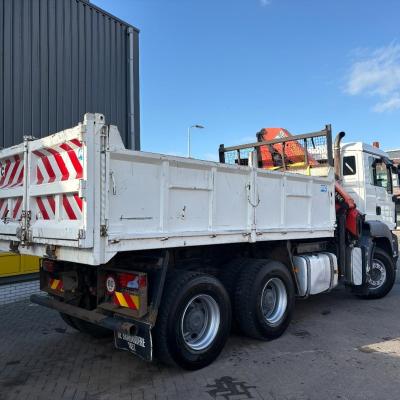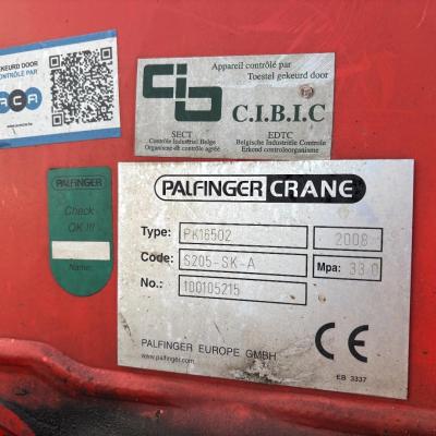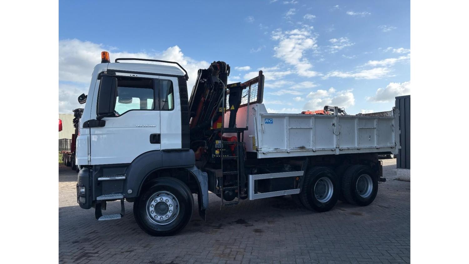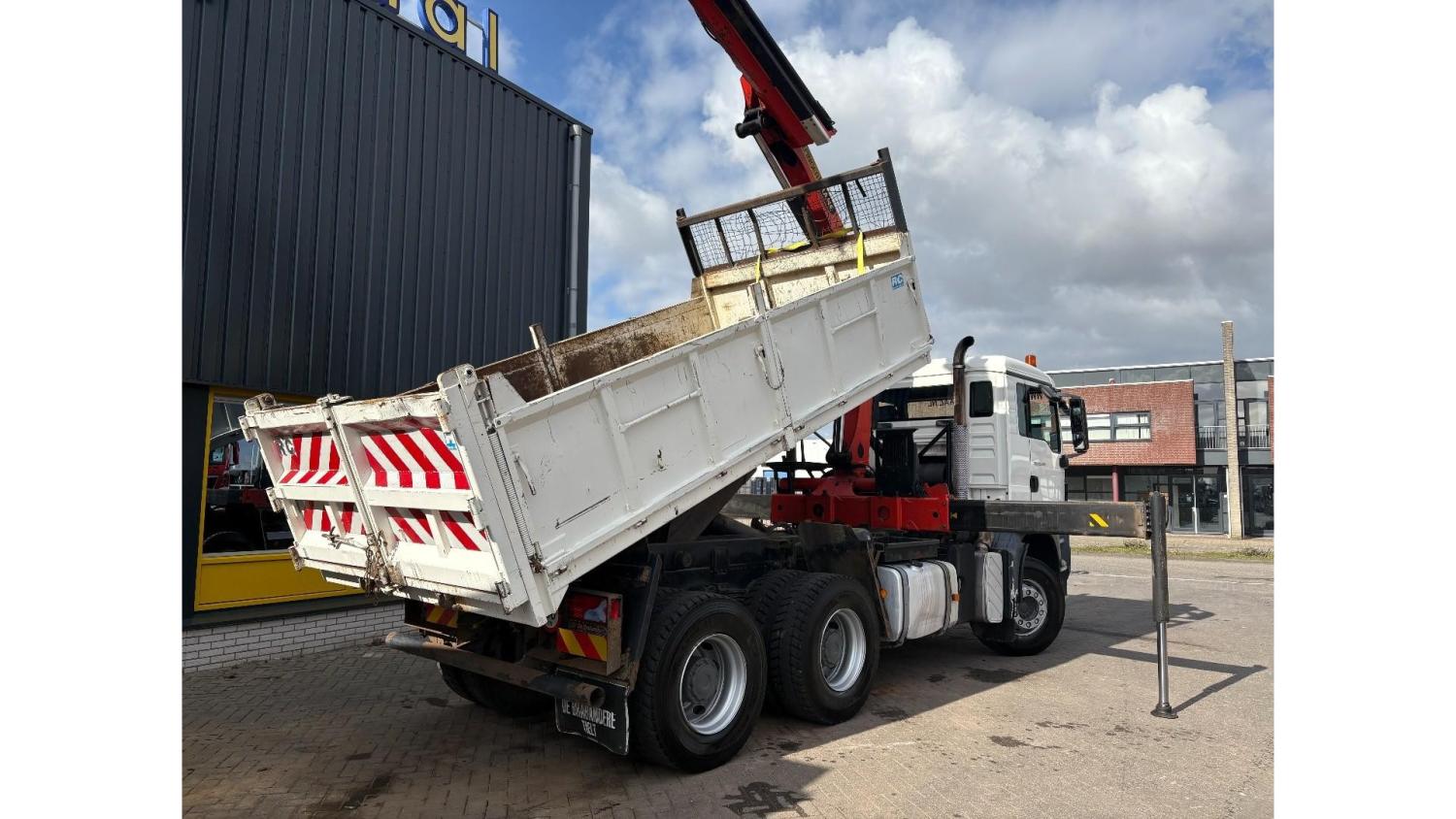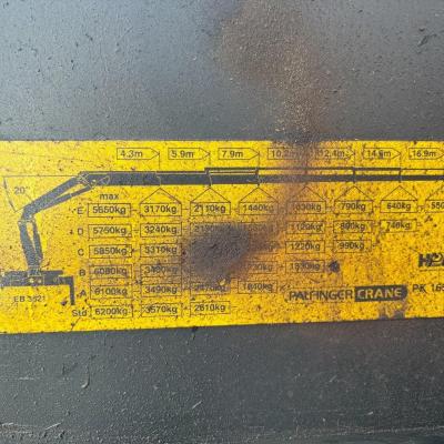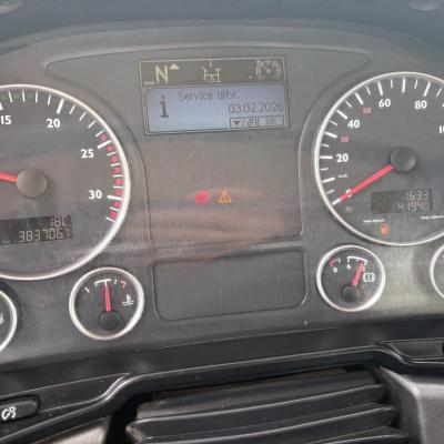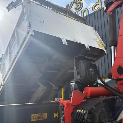 General information Number of doors: 2 Year of construction: 2009 Cab: single, day Technical information Number of cylinders: 6 Empty weight: 14.740 kg GVW: 33.000 kg Axle configuration Front axle: Steering Rear axle 1: Double wheels; Reduction: hub reduction; Suspension: leaf suspension Rear axle 2: Double wheels; Reduction: hub reduction; Suspension: leaf suspension Functional Crane: PALFINGER PK16502, year of manufacture 2008 Tipper: Back Condition General condition: very good Technical condition: very good Visual appearance: very good Identification Reference number: TR1725-A Registration number: 1CYX717 Serial number: WMA265ZZ69P015596 Crane Tap Length: 14.6 m Number of hydraulic extensions: 3 Number of manual extensions: 1 Remote control: ✓ Rotator: ✓ Meter capacity: 4 m Capacity kilo: 6000 kg