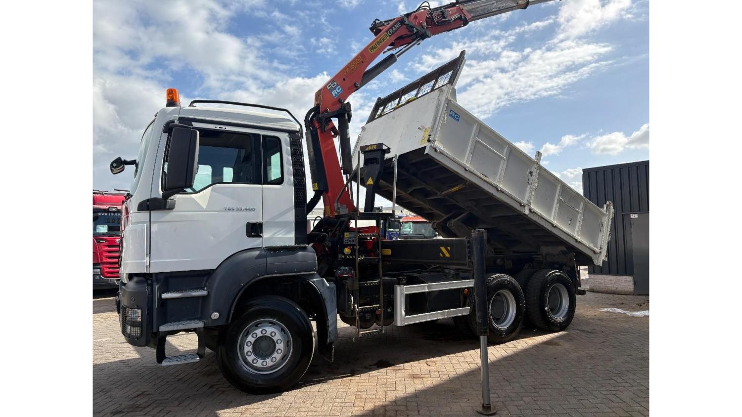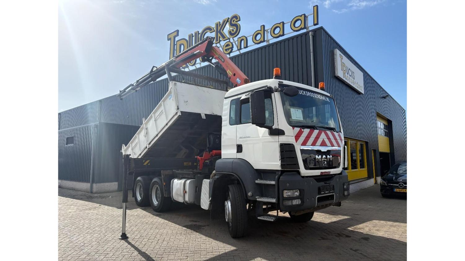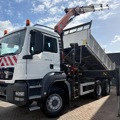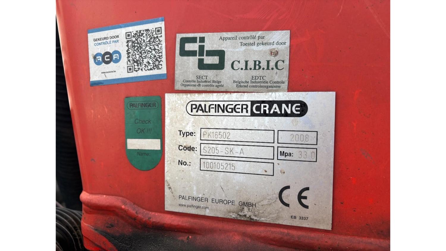 General information Number of doors: 2 Year of construction: 2009 Cab: single, day Technical information Number of cylinders: 6 Empty weight: 14.740 kg GVW: 33.000 kg Axle configuration Front axle: Steering Rear axle 1: Double wheels; Reduction: hub reduction; Suspension: leaf suspension Rear axle 2: Double wheels; Reduction: hub reduction; Suspension: leaf suspension Functional Crane: PALFINGER PK16502, year of manufacture 2008 Tipper: Back Condition General condition: very good Technical condition: very good Visual appearance: very good Identification Reference number: TR1725-A Registration number: 1CYX717 Serial number: WMA265ZZ69P015596 Crane Tap Length: 14.6 m Number of hydraulic extensions: 3 Number of manual extensions: 1 Remote control: ✓ Rotator: ✓ Meter capacity: 4 m Capacity kilo: 6000 kg