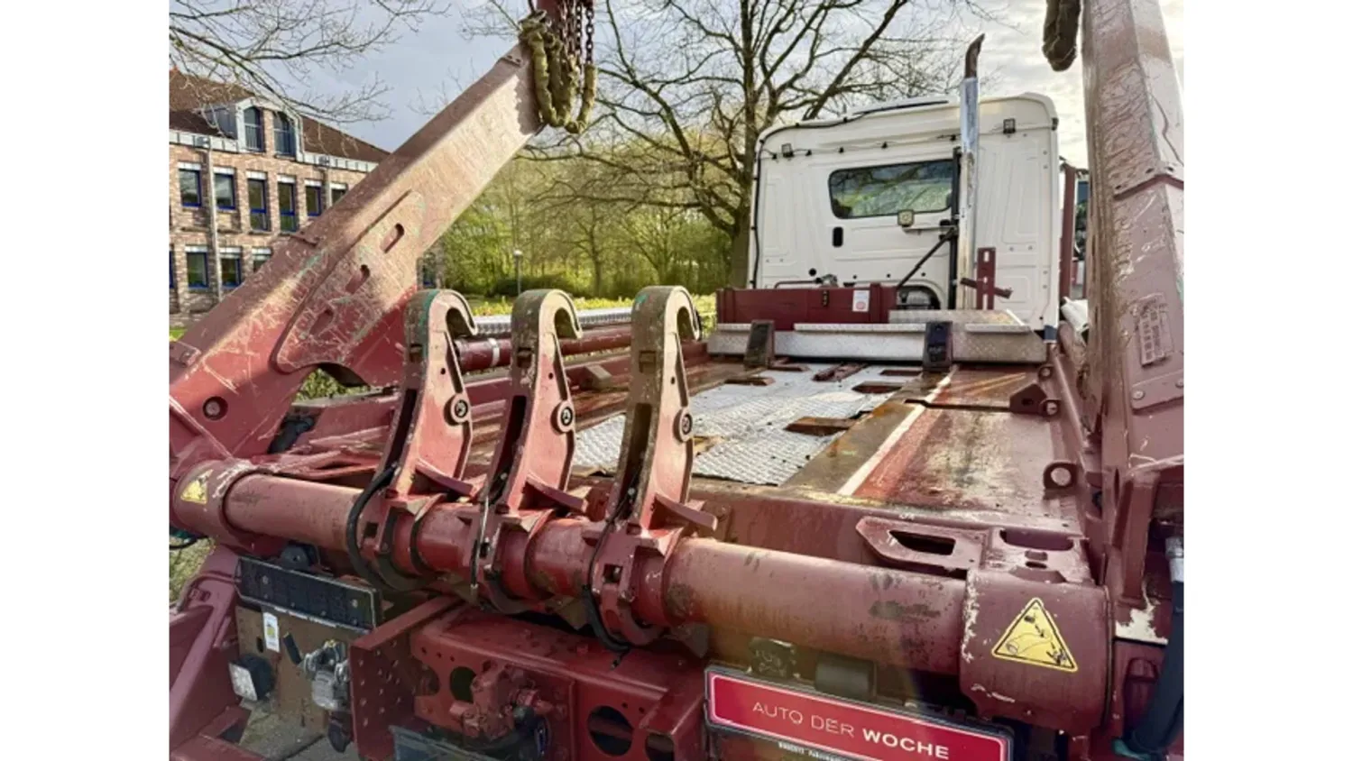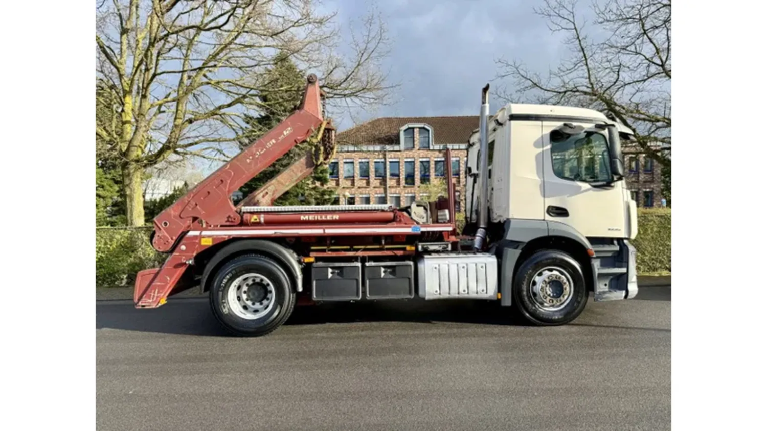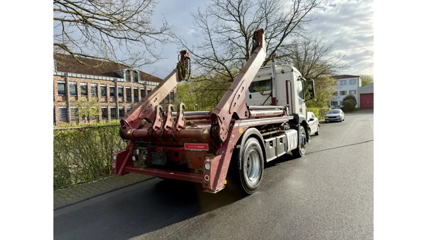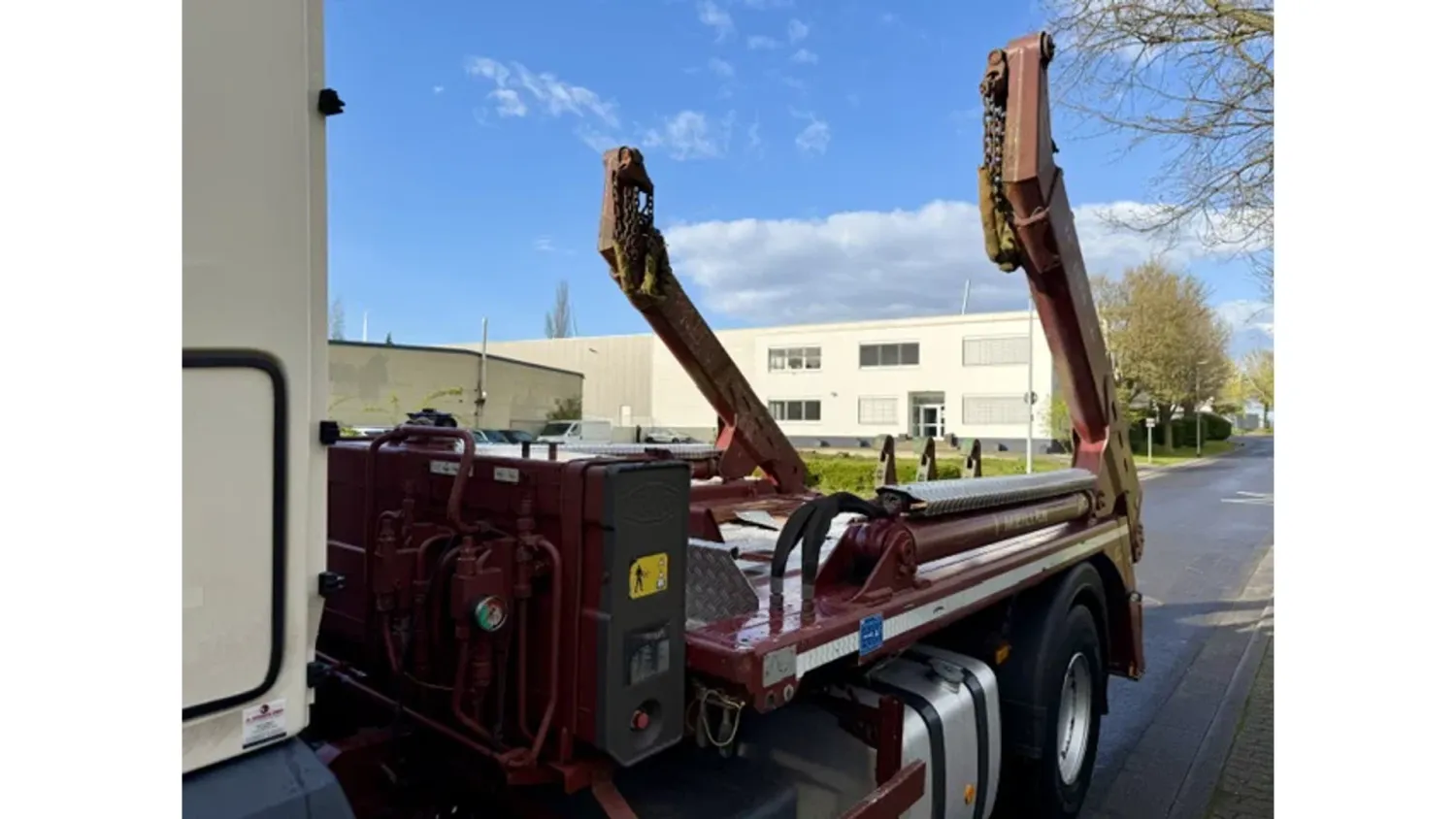 General information Bodywork: Portal arm system Year of construction: 2018 Cab: day Reference number: 115 Technical information AdBlue system: Yes Front axle: Steering; Suspension: leaf suspension Rear axle: Suspension: air suspension Empty weight: 10.150 kg GVW: 18.000 kg Maintenance APK (MOT): tested until 07/2026 Condition General condition: good Technical condition: good Visual appearance: good