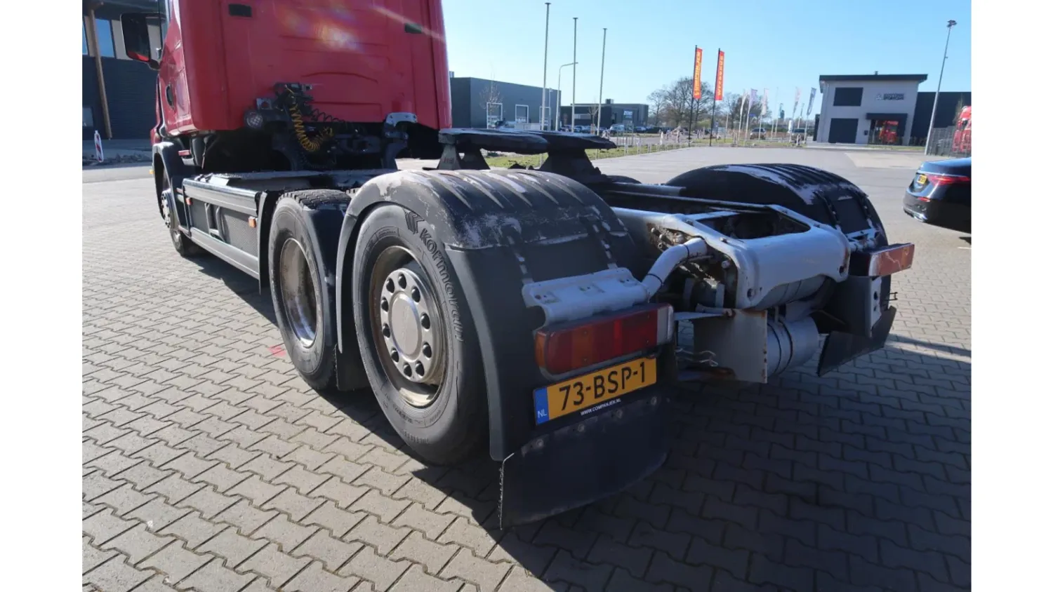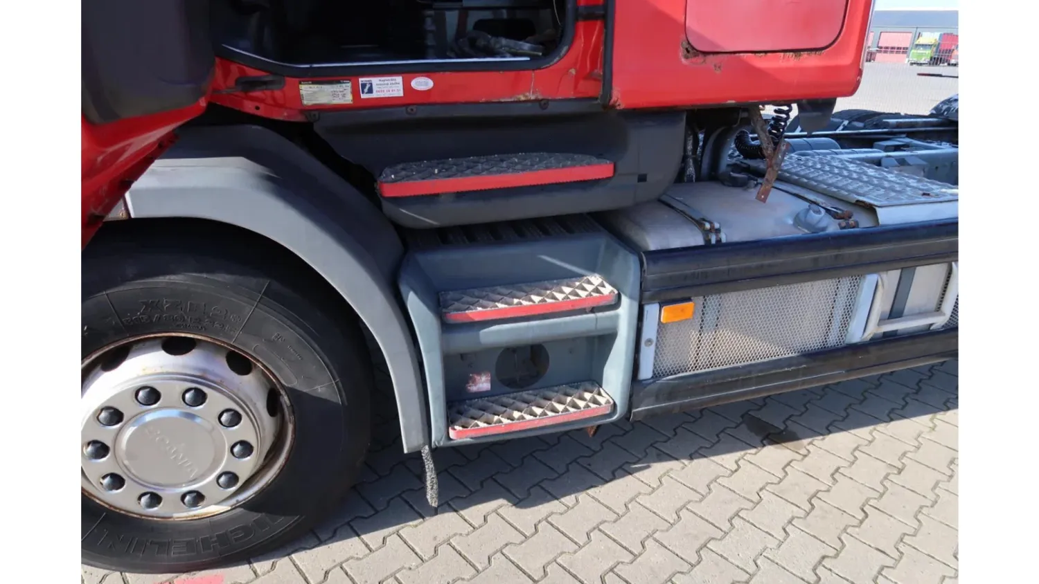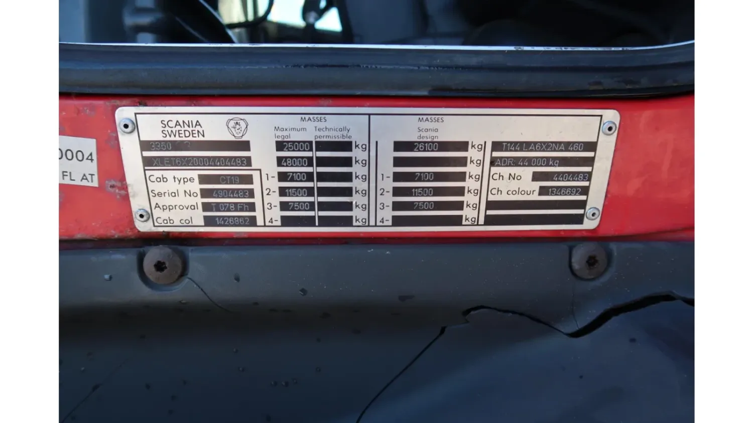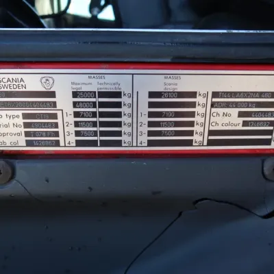 General information Year of construction: 1999 Registration number: 73-BSP-1 Technical information Number of cylinders: 8 Axle configuration Brakes: drum brakes Front axle: Tyre size: 315/80/22.5; Max. axle load: 7100 kg; Tyre profile left: 10%; Tyre profile right: 10%; Suspension: leaf suspension Rear axle 1: Tyre size: 315/80/22.5; Double wheels; Max. axle load: 11500 kg; Tyre profile left inner: 60%; Tyre profile left outer: 60%; Tyre profile right outer: 60%; Tyre profile right outer: 60%; Suspension: air suspension Rear axle 2: Tyre size: 385/65/22.5; Lift axle; Max. axle load: 7500 kg; Tyre profile left: 80%; Tyre profile right: 80%; Suspension: air suspension Measures and weights Empty weight: 7.375 kg GVW: 26.100 kg Wheelbase: 560 cm Condition General condition: average Technical condition: average Visual appearance: average Damages: none Additional information Please contact Bart Companjen (+31611678436, info@companjen.nl), Frans Moran Santos (+34601108885, info@companjen.nl), kantoor, office, buro. (+31546574055, info@companjen.nl), Bertus Companjen (+31653177629, info@companjen.nl) or Giel Companjen (+31652199429, info@companjen.nl) for more information
