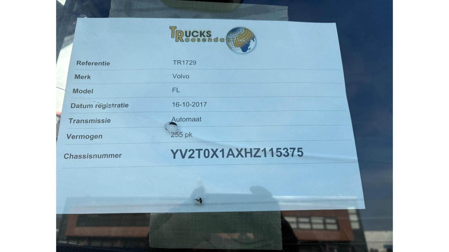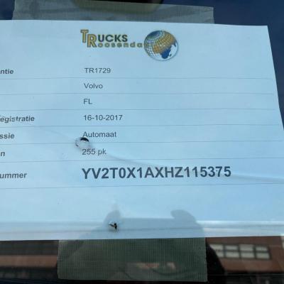 General information Year of construction: 2017 Cab: single, day Technical information Number of cylinders: 6 Max. front axle load: 4480 kg Max. rear axle load: 8480 kg Measures and weights Empty weight: 7.330 kg GVW: 11.990 kg Wheelbase: 530 cm Functional Dimensions of cargo space: 726 x 242 x 257 cm Tail lift: dholandia, 1500 kg Maintenance APK (MOT): tested until 10/2026 Condition General condition: very good Technical condition: very good Visual appearance: very good Damages: none Identification Reference number: TR1729 Registration number: 97-BKB-2 Serial number: YV2T0X1AXHZ115375