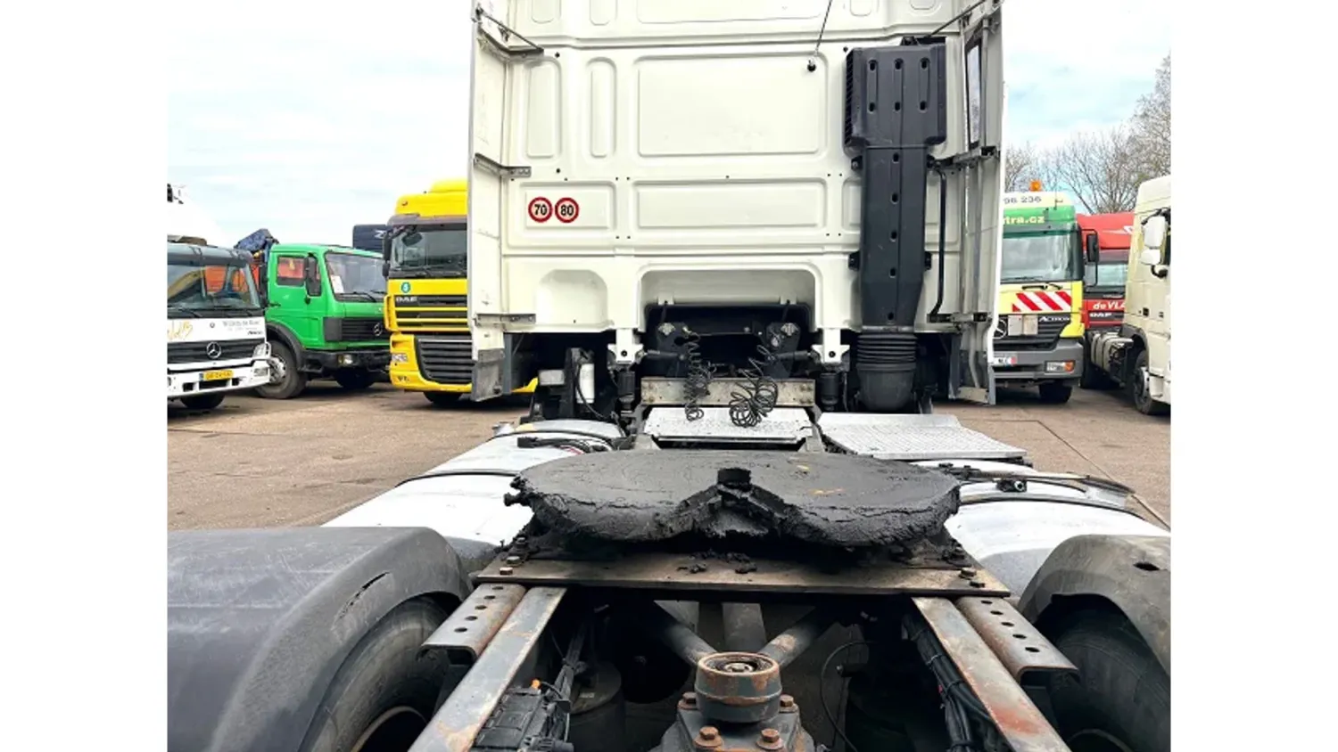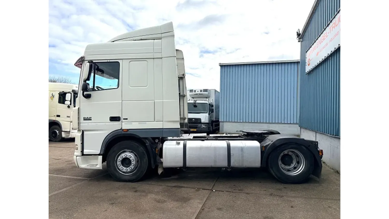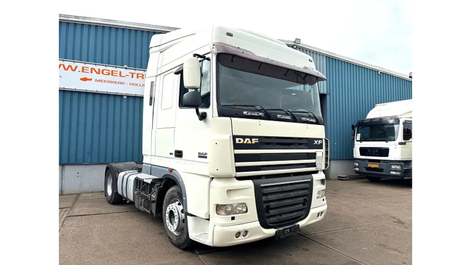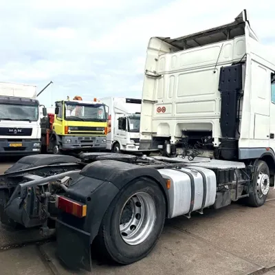 General information Bodywork: Standard tractor Year of construction: 2006 Reference number: SN 59947125 Z Technical information Number of cylinders: 6 Drivetrain AdBlue system: Yes Fuel tank: 1300 litres Transmission Transmission: ZF16 MANUAL GEARBOX, 16 gears, Manual gearbox Axle configuration Tyre size: 315/70R22,5 Brakes: disc brakes Front axle: Max. axle load: 7500 kg; Steering; Tyre profile left: 30%; Tyre profile right: 30%; Suspension: leaf suspension Rear axle: Double wheels; Max. axle load: 13000 kg; Tyre profile left inner: 40%; Tyre profile left outer: 40%; Tyre profile right outer: 40%; Tyre profile right outer: 40%; Reduction: single reduction; Suspension: air suspension Measures and weights Empty weight: 7.345 kg GVW: 19.000 kg Wheelbase: 380 cm Functional Cargo space capacity: 1.300 l Height of cargo floor: 115 cm Condition General condition: very good Technical condition: very good Visual appearance: very good Additional information Please contact Sales Department (+31621455454, sales@engel-trucks.com) for more information GOOD CONDITION DAF FTXF105-460 SPACECAB 4x2 TRACTOR UNIT WITH ZF16 MANUAL GEARBOX, MX-BRAKE, 2x TANK & AIRCONDITIONING !! 460HP, EURO 5!! ZF16 GEARS MANUAL GEARBOX!! MX-BRAKE!! 870 +430 LITER ALUMINIUM DIESEL TANK!! AIRCONDITIONING!! COMPLETE SPOILERSET ON CABIN!! SUN VISOR!! COMBI-LIGHTS!! ETC!! TRUCK IS IN GOOD (DRIVING) CONDITION, READY FOR THE JOB !! MORE DAF CF/XF EURO 2/3/4/5/6 IN STOCK FOR SALE!! (>75 TRUCKS/TRAILERS IN STOCK)!! PLEASE CHECK OUR WEBSITE; WWW.ENGEL-TRUCKS.COM SHIPMENT, TRANSIT REGISTRATION, STACKING, LOADING OR TRANSPORT?, NO PROBLEM FOR US, WE ARE AN " ONE STOP SHOP " COMPANY!! WE INVITE YOU TO WATCH OUR COMPANY MOVIE ON YOUTUBE FOR THE FIRST IMPRESSION!! ( https://drone-pro.nl/project/video-engel-trucks-bv-2017/ ) ENGEL TRUCKS B.V.; " YOUR GLOBAL TRADING PARTNER "