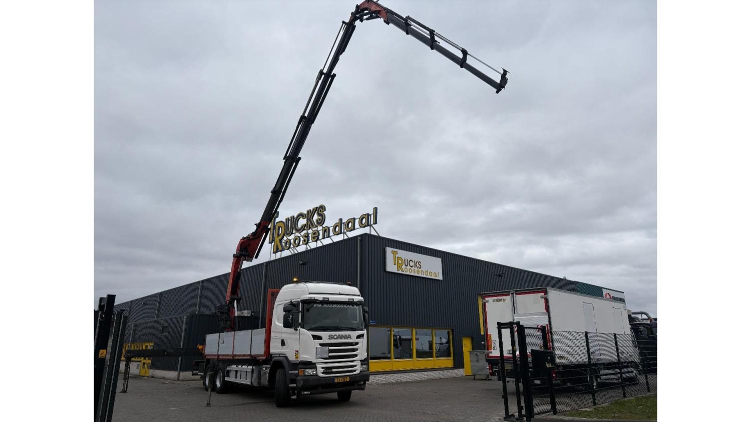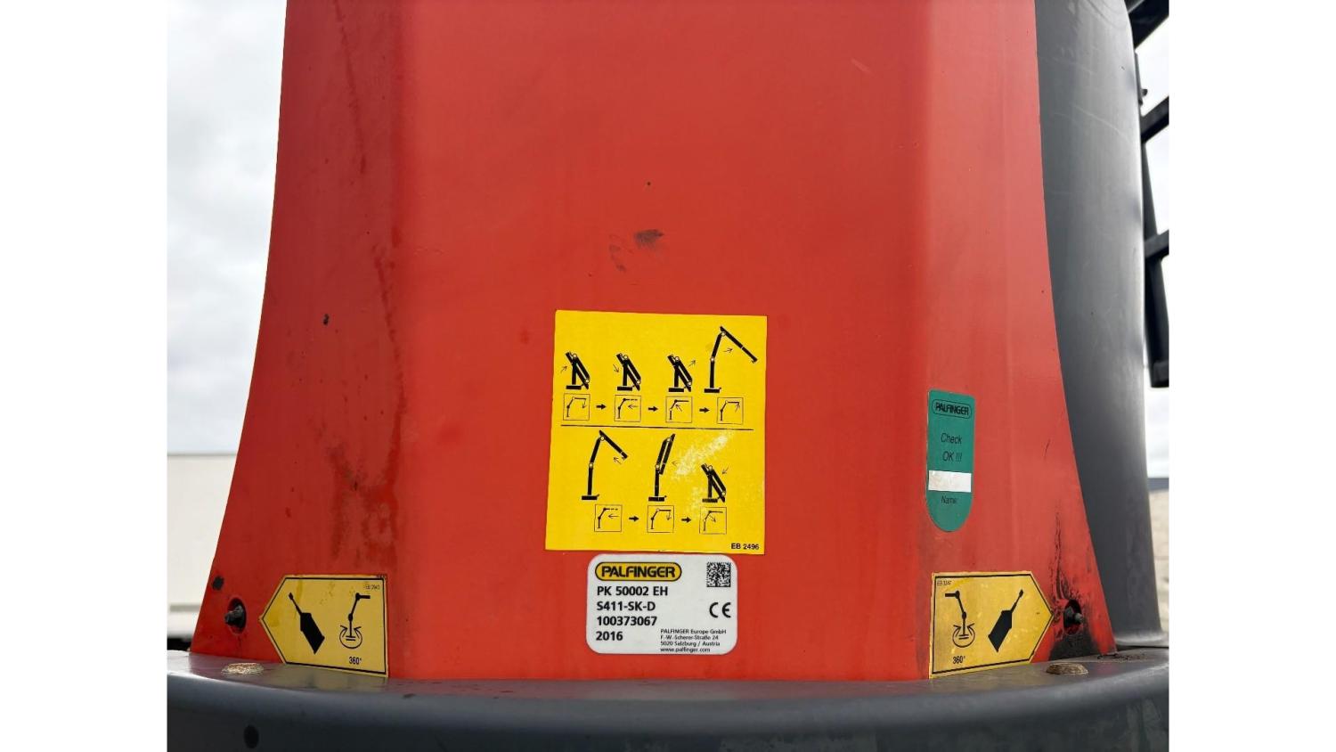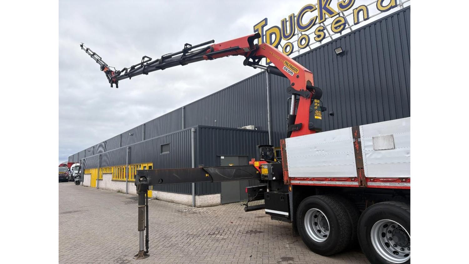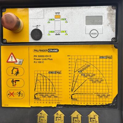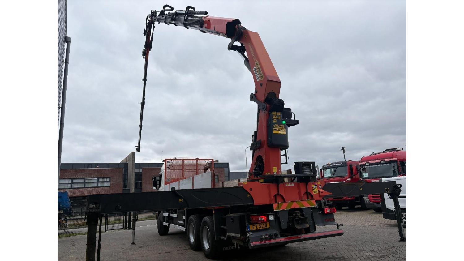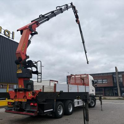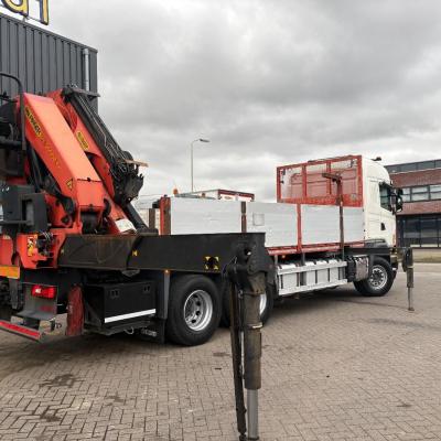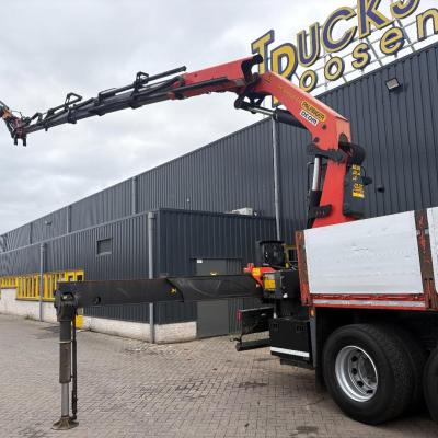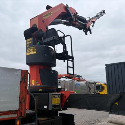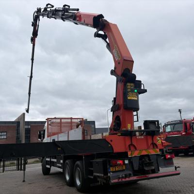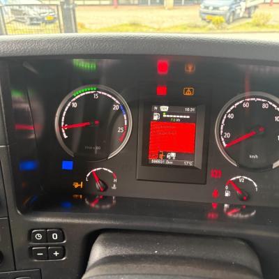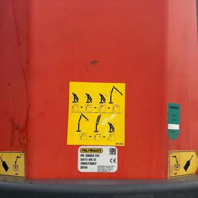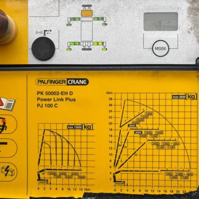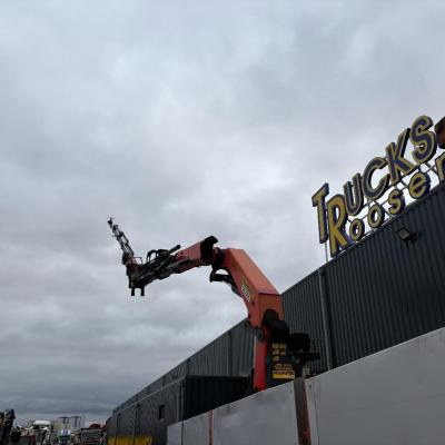 General information Number of doors: 2 Year of construction: 2016 Axle configuration Front axle: Steering Rear axle 1: Double wheels Rear axle 2: Double wheels Weights Empty weight: 21.255 kg GVW: 26.124 kg Functional Dimensions of cargo space: 614 x 248 cm Crane: PALFINGER PK50002EH, year of manufacture 2016, on rear of chassis Condition General condition: very good Technical condition: very good Visual appearance: very good Identification Reference number: TR1485 Registration number: FX5110 Serial number: YS2G6X40005418328 Crane Tap Length: 28 m Hours: 4834 uur Number of hydraulic extensions: 9 Number of support legs: 4 Remote control: ✓ Rotator: ✓ Meter capacity: 28 m Capacity kilo: 3600 kg