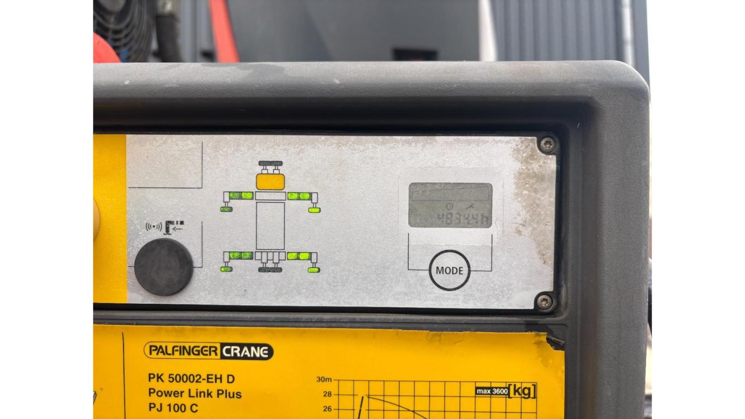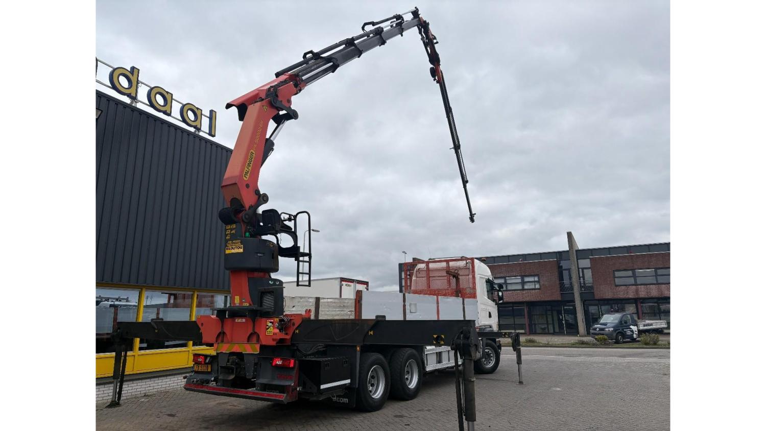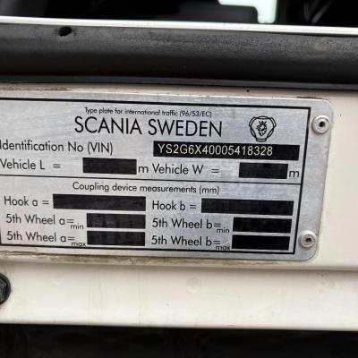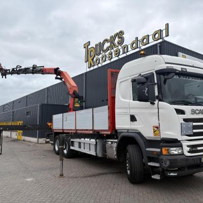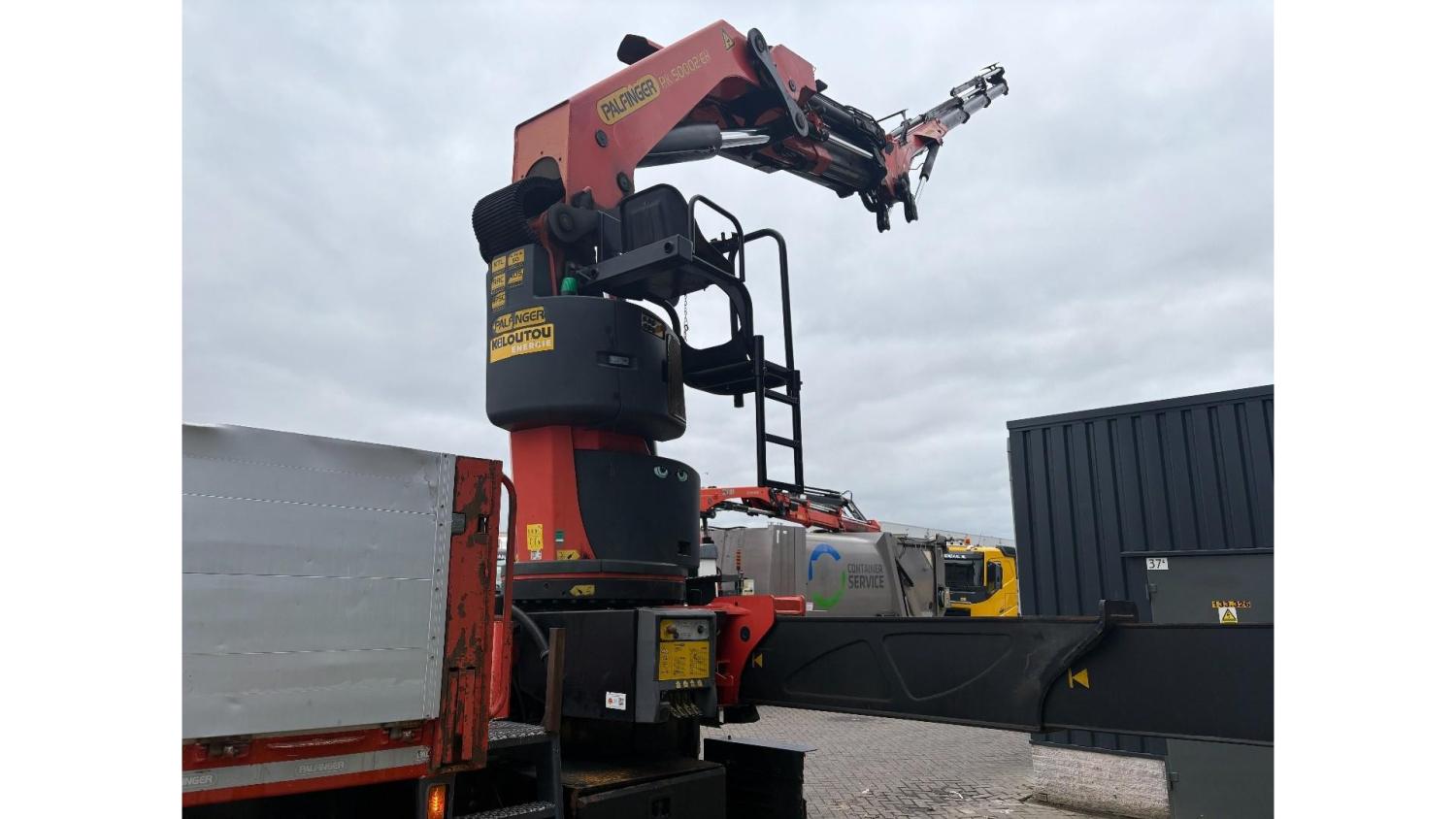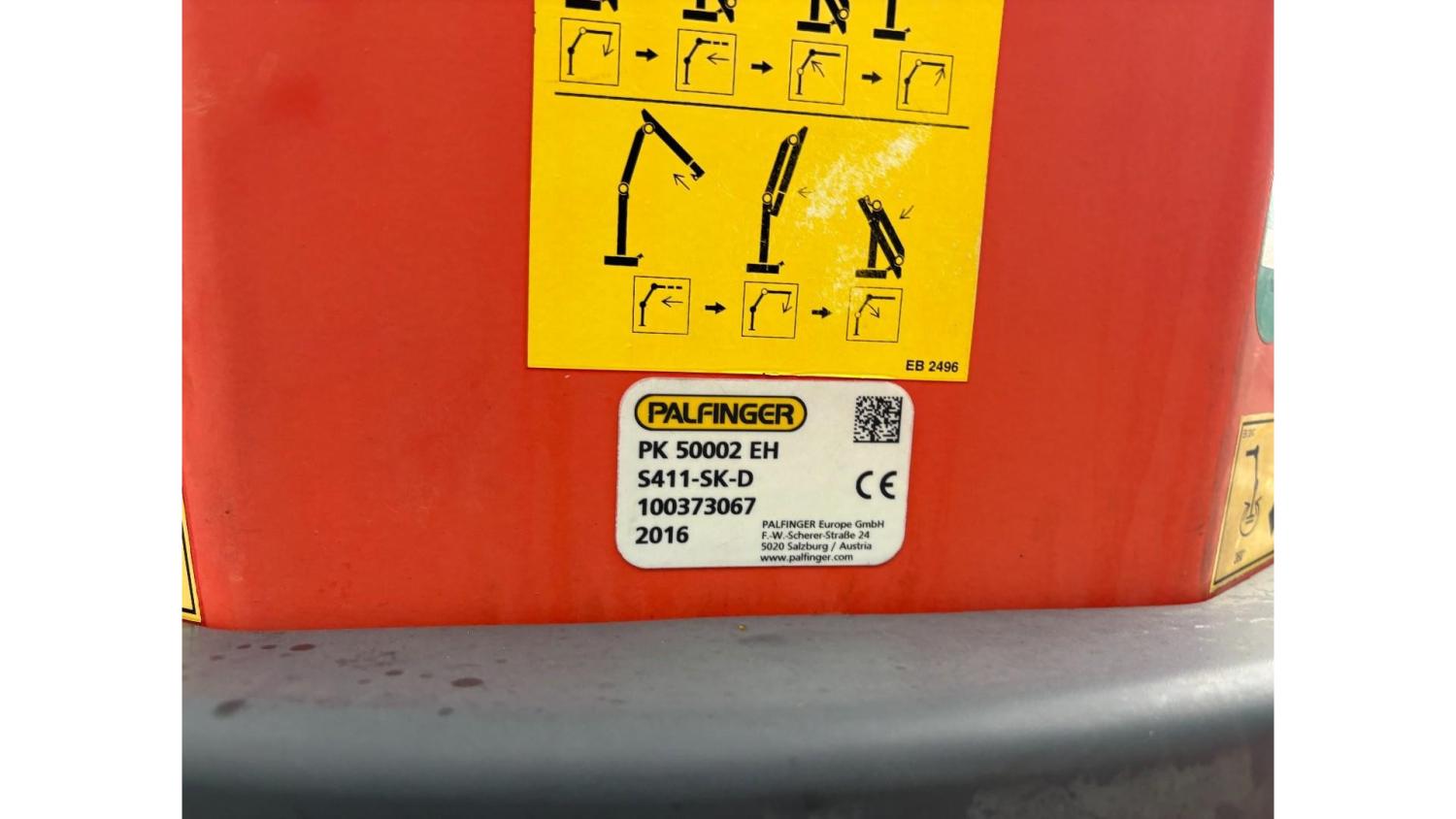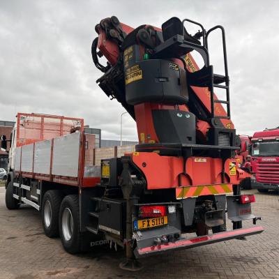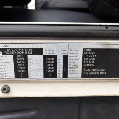 General information Number of doors: 2 Year of construction: 2016 Axle configuration Front axle: Steering Rear axle 1: Double wheels Rear axle 2: Double wheels Weights Empty weight: 21.255 kg GVW: 26.124 kg Functional Dimensions of cargo space: 614 x 248 cm Crane: PALFINGER PK50002EH, year of manufacture 2016, on rear of chassis Condition General condition: very good Technical condition: very good Visual appearance: very good Identification Reference number: TR1485 Registration number: FX5110 Serial number: YS2G6X40005418328 Crane Tap Length: 28 m Hours: 4834 uur Number of hydraulic extensions: 9 Number of support legs: 4 Remote control: ✓ Rotator: ✓ Meter capacity: 28 m Capacity kilo: 3600 kg