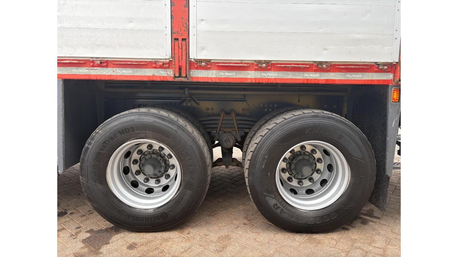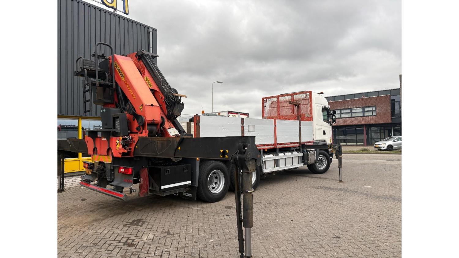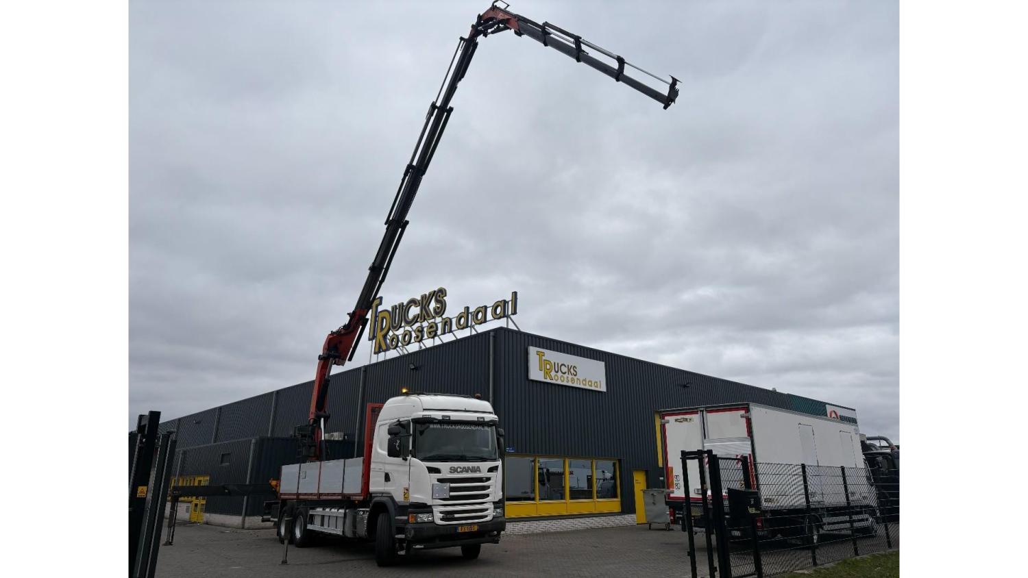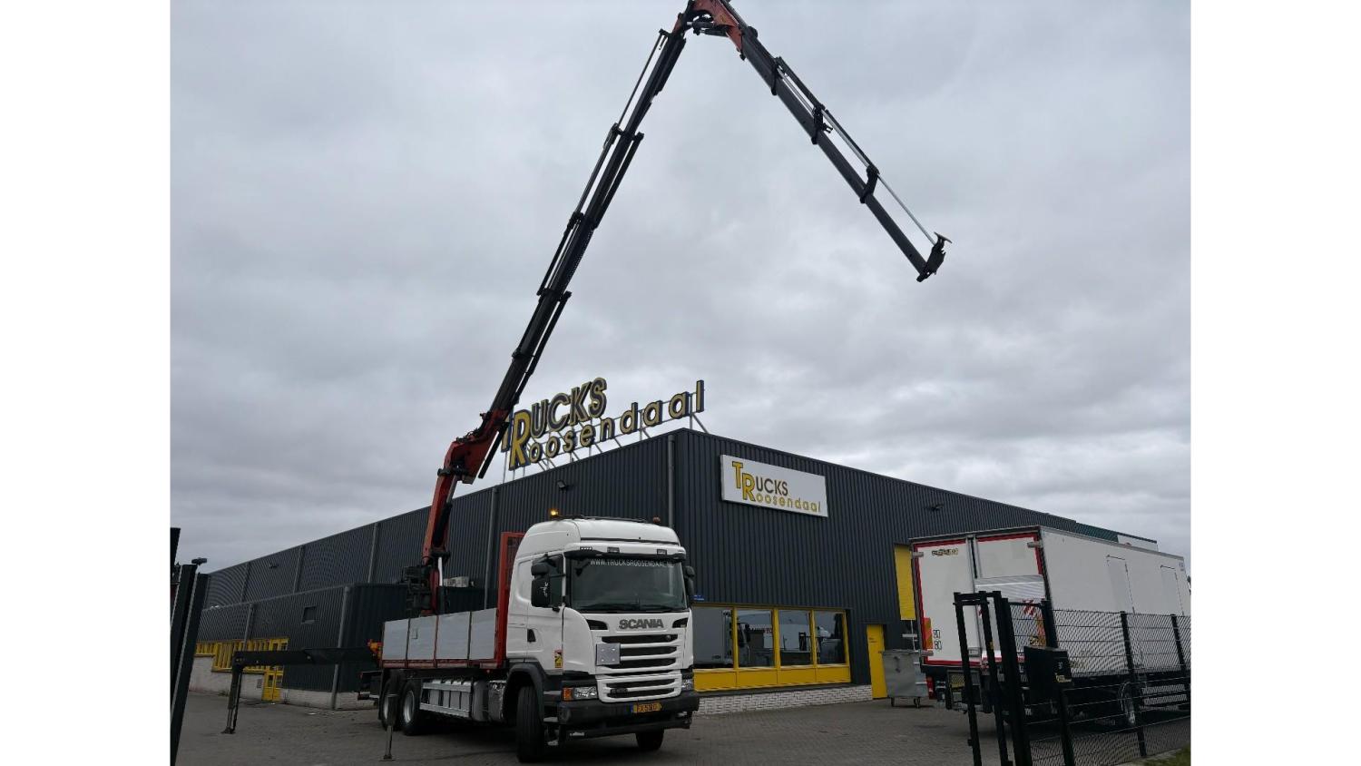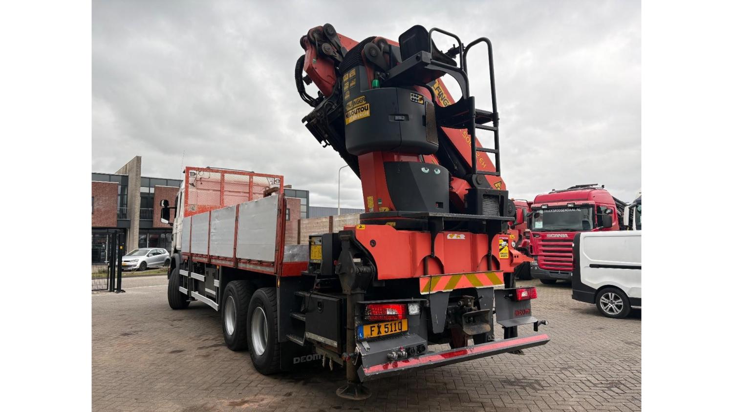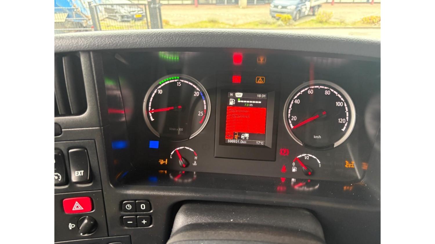 General information Number of doors: 2 Year of construction: 2016 Axle configuration Front axle: Steering Rear axle 1: Double wheels Rear axle 2: Double wheels Weights Empty weight: 21.255 kg GVW: 26.124 kg Functional Dimensions of cargo space: 614 x 248 cm Crane: PALFINGER PK50002EH, year of manufacture 2016, on rear of chassis Condition General condition: very good Technical condition: very good Visual appearance: very good Identification Reference number: TR1485 Registration number: FX5110 Serial number: YS2G6X40005418328 Crane Tap Length: 28 m Hours: 4834 uur Number of hydraulic extensions: 9 Number of support legs: 4 Remote control: ✓ Rotator: ✓ Meter capacity: 28 m Capacity kilo: 3600 kg