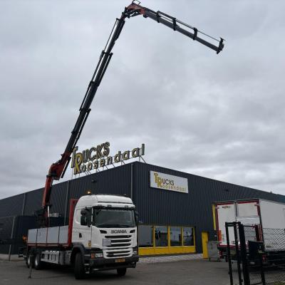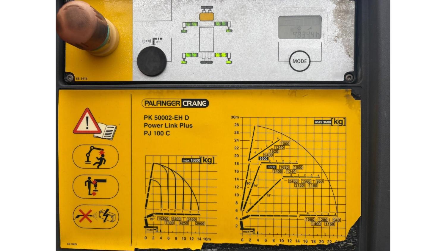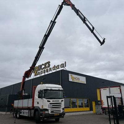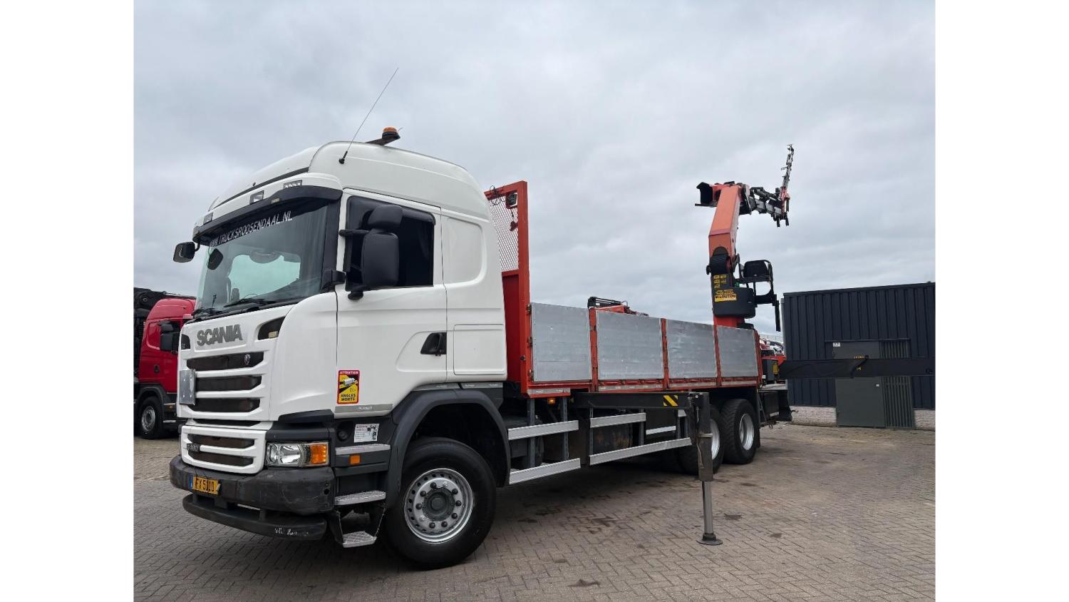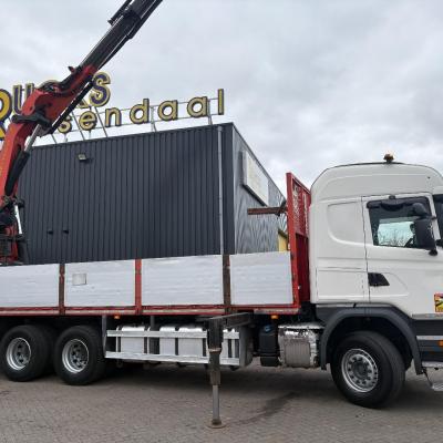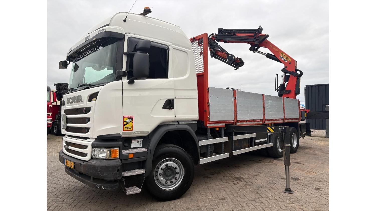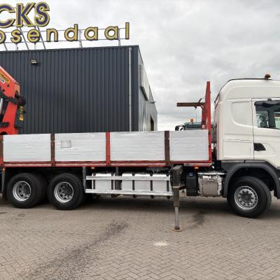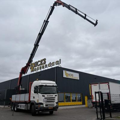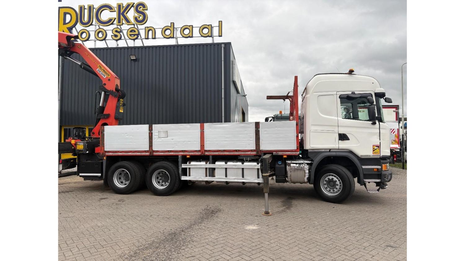 General information Number of doors: 2 Year of construction: 2016 Axle configuration Front axle: Steering Rear axle 1: Double wheels Rear axle 2: Double wheels Weights Empty weight: 21.255 kg GVW: 26.124 kg Functional Dimensions of cargo space: 614 x 248 cm Crane: PALFINGER PK50002EH, year of manufacture 2016, on rear of chassis Condition General condition: very good Technical condition: very good Visual appearance: very good Identification Reference number: TR1485 Registration number: FX5110 Serial number: YS2G6X40005418328 Crane Tap Length: 28 m Hours: 4834 uur Number of hydraulic extensions: 9 Number of support legs: 4 Remote control: ✓ Rotator: ✓ Meter capacity: 28 m Capacity kilo: 3600 kg