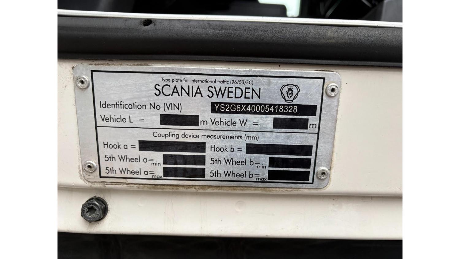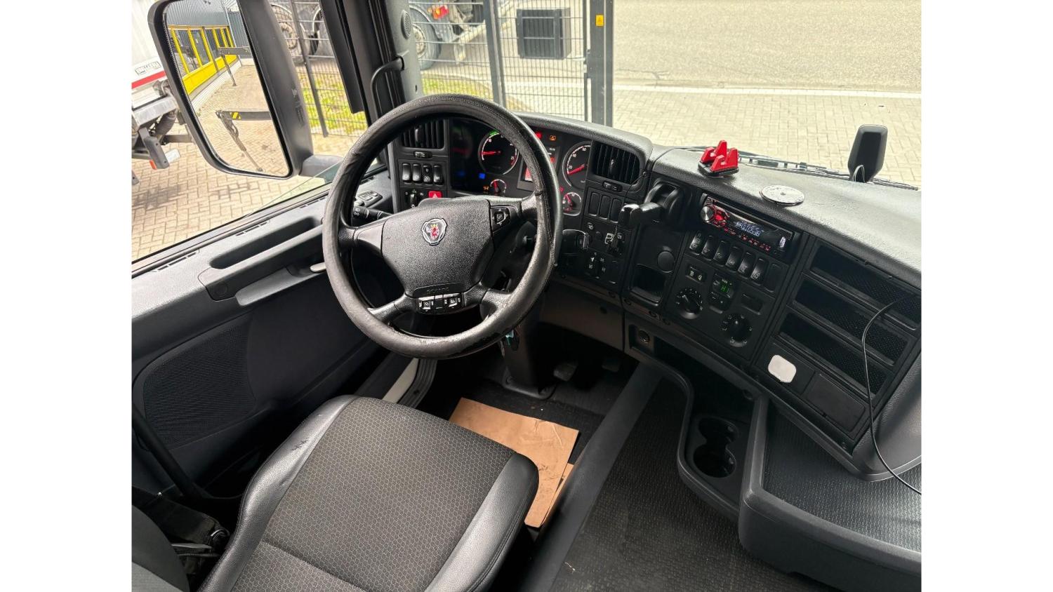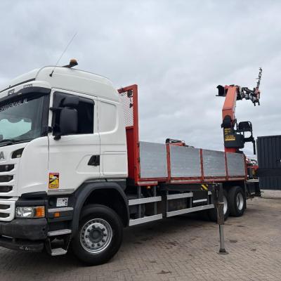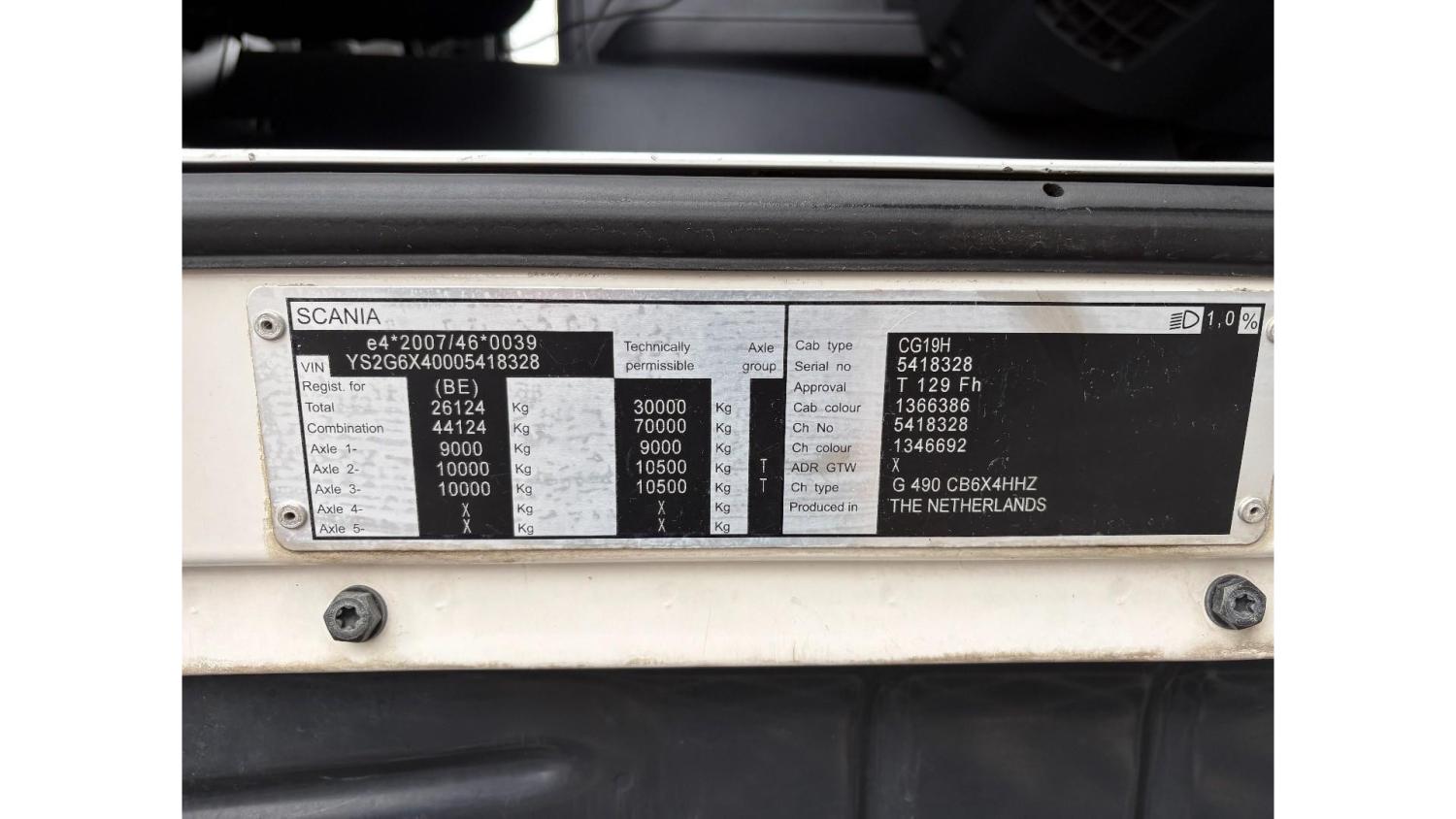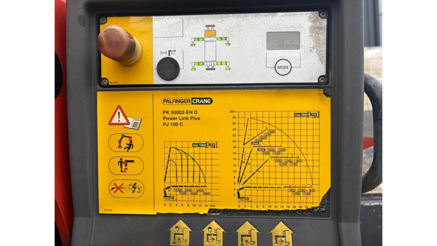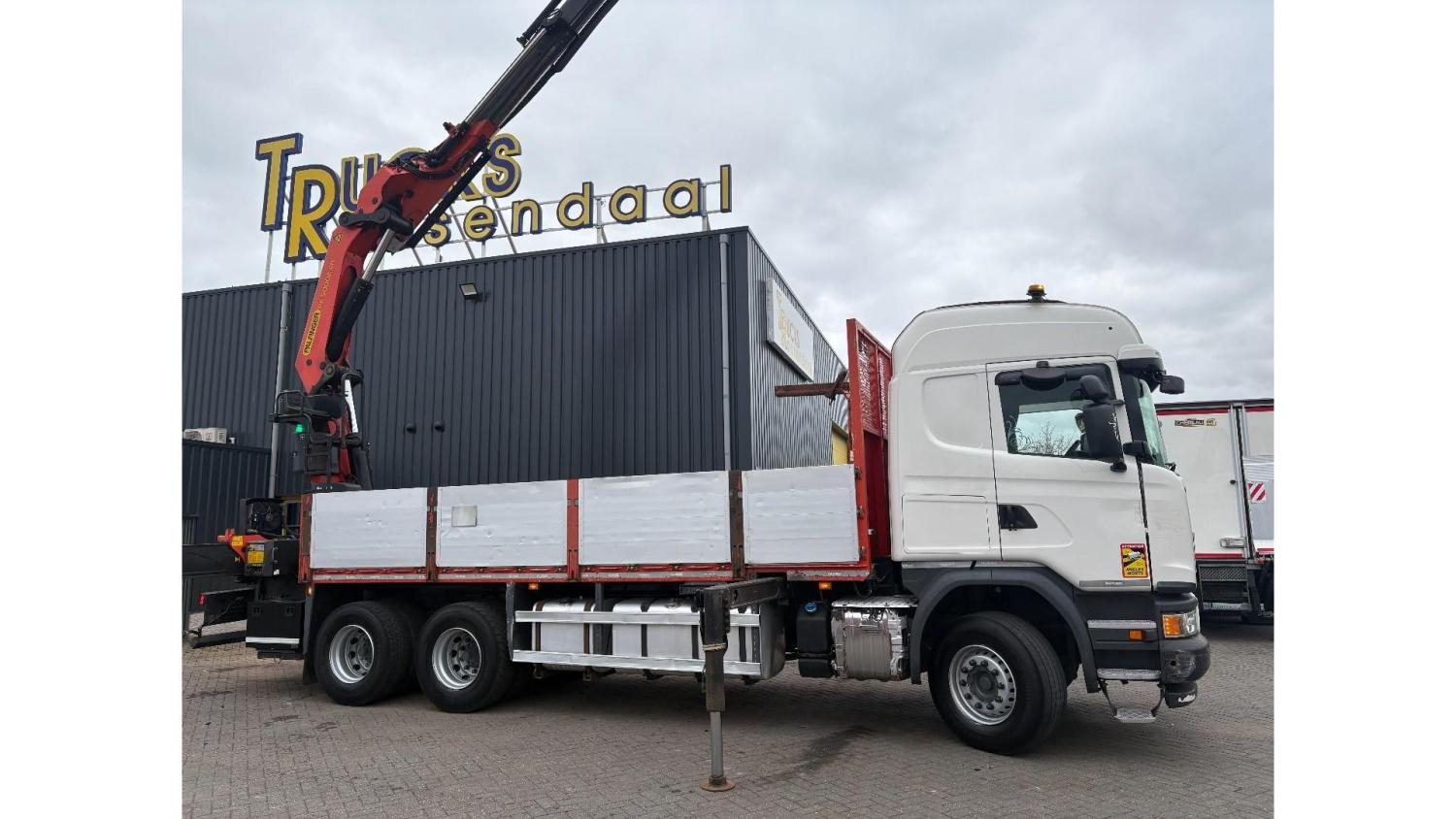 General information Number of doors: 2 Year of construction: 2016 Axle configuration Front axle: Steering Rear axle 1: Double wheels Rear axle 2: Double wheels Weights Empty weight: 21.255 kg GVW: 26.124 kg Functional Dimensions of cargo space: 614 x 248 cm Crane: PALFINGER PK50002EH, year of manufacture 2016, on rear of chassis Condition General condition: very good Technical condition: very good Visual appearance: very good Identification Reference number: TR1485 Registration number: FX5110 Serial number: YS2G6X40005418328 Crane Tap Length: 28 m Hours: 4834 uur Number of hydraulic extensions: 9 Number of support legs: 4 Remote control: ✓ Rotator: ✓ Meter capacity: 28 m Capacity kilo: 3600 kg