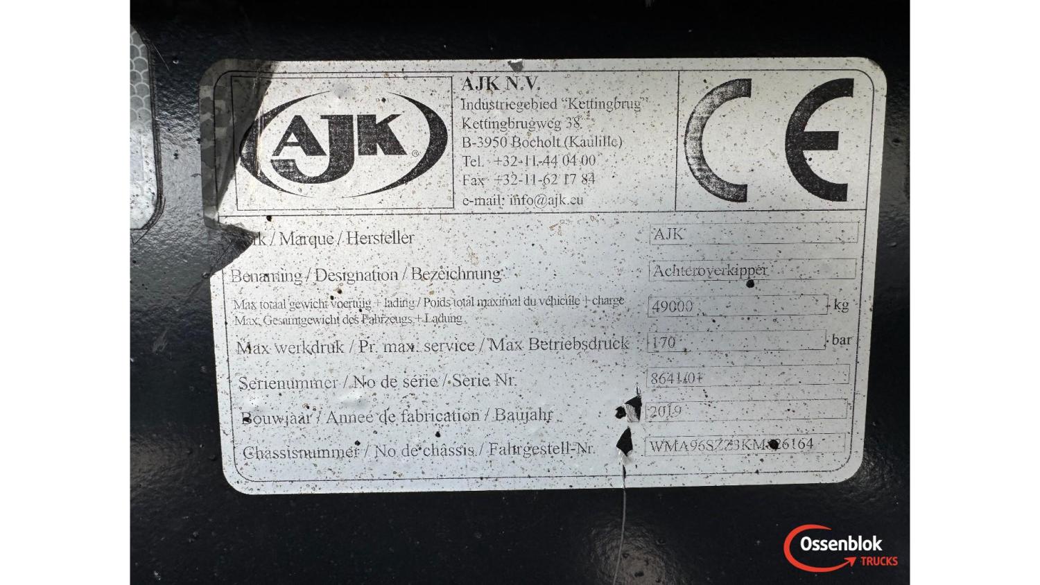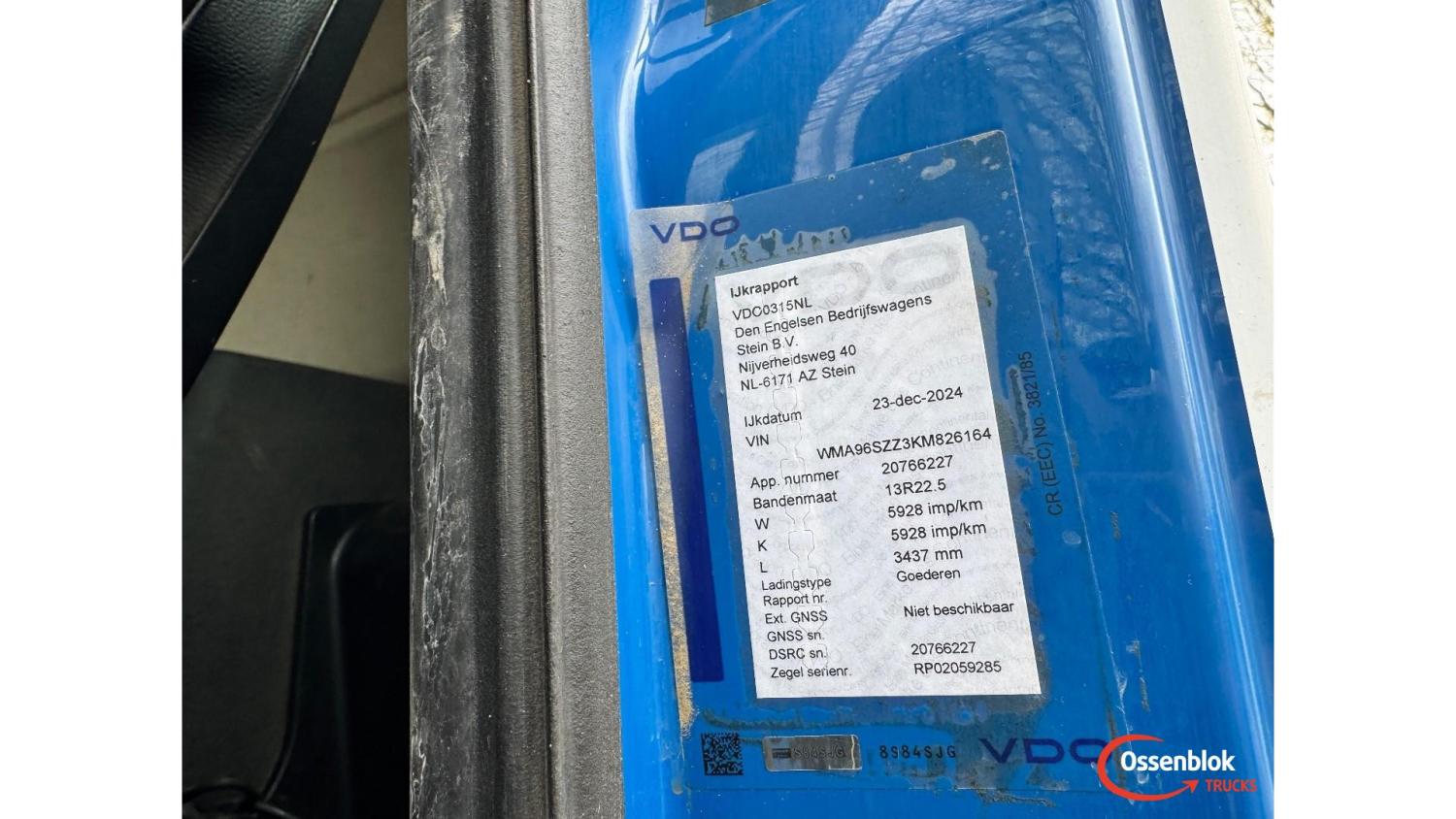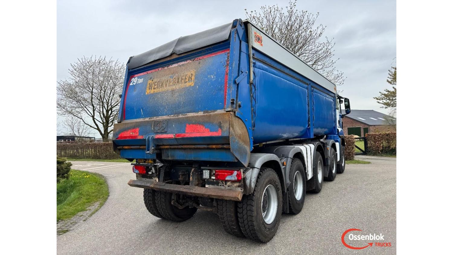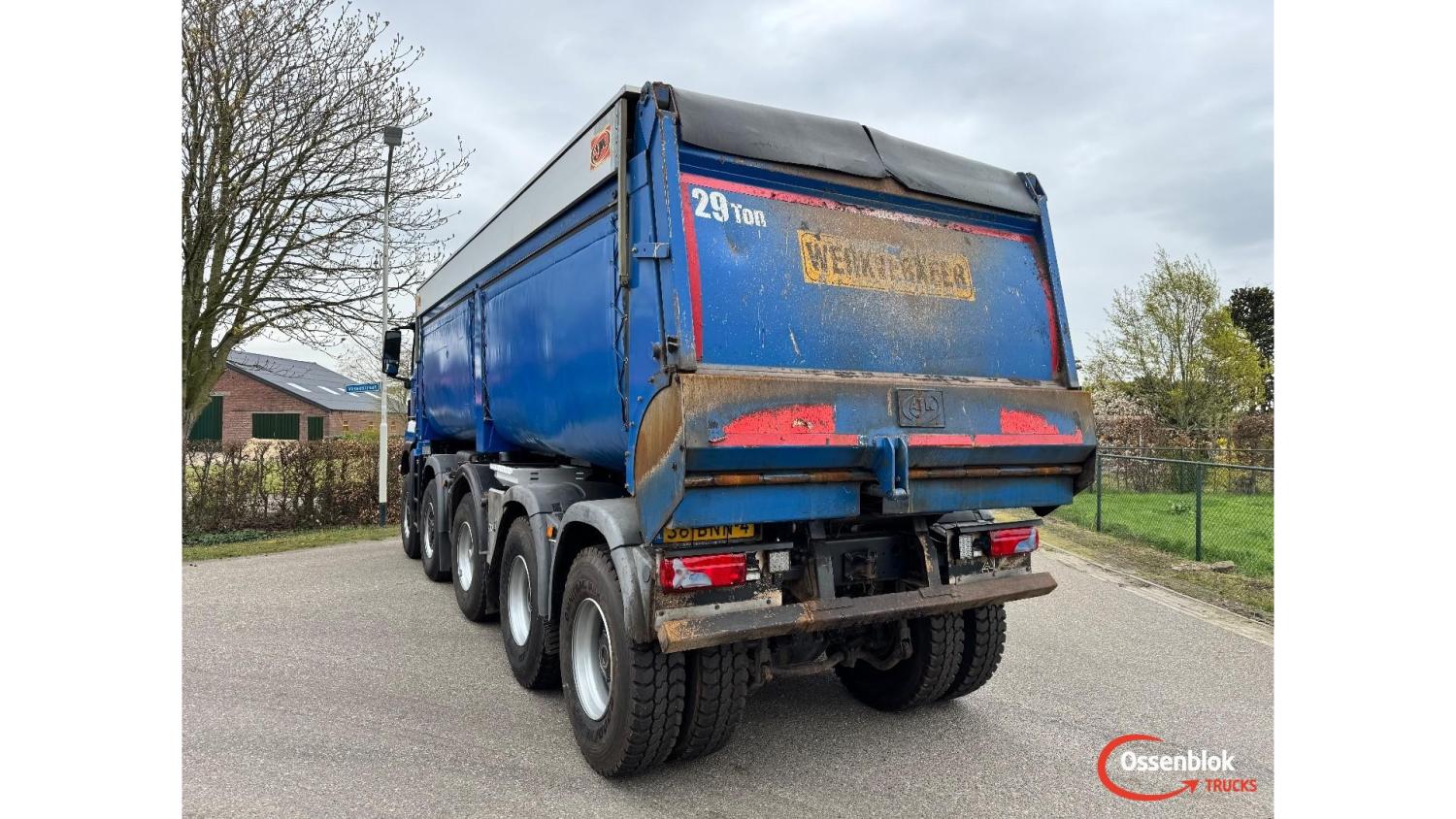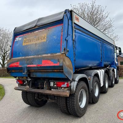 General information Year of construction: 2019 Cab: day Technical information Number of cylinders: 6 Axle configuration Brakes: drum brakes Front axle 1: Tyre size: 385/65 R22.5; Differential lock; Steering; Tyre profile: 80%; Suspension: leaf suspension Front axle 2: Tyre size: 385/65 R22.5; Differential lock; Steering; Tyre profile: 80%; Suspension: leaf suspension Middle axle: Tyre size: 385/65 R22.5; Steering; Tyre profile: 60%; Suspension: air suspension Rear axle 1: Tyre size: 13.00 R 22.5; Double wheels; Differential lock; Tyre profile: 100%; Suspension: leaf suspension Rear axle 2: Tyre size: 13.00 R 22.5; Double wheels; Differential lock; Tyre profile: 100%; Suspension: leaf suspension Measures and weights Empty weight: 19.280 kg GVW: 49.000 kg Wheelbase: 685 cm Functional Make of bodywork: AJK Tipper: Back Maintenance APK (MOT): tested until 06/2026 Condition General condition: good Technical condition: good Visual appearance: good Financial information Price: On request Identification Reference number: OT5379 Registration number: 36-BNN-4 Serial number: WMA96SZZ3KM826164 Structure Construction year: 2019