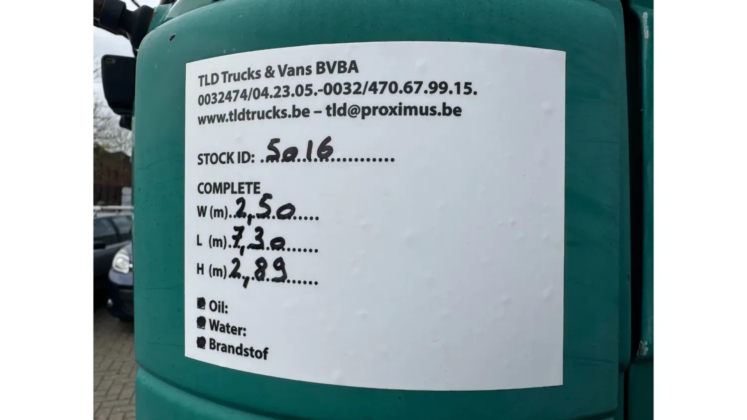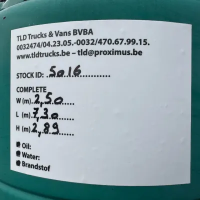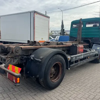 General information Bodywork: Hook arm system Year of construction: 1999 Cab: day Reference number: 5016 Technical information Number of cylinders: 6 Empty weight: 8.639 kg GVW: 19.000 kg Axle configuration Suspension: air suspension Front axle: Steering Rear axle: Double wheels Functional Pump: Yes Financial information Price: On request Additional information Please contact Thierry Leemans (+32474042305, tld@proximus.be) for more information
