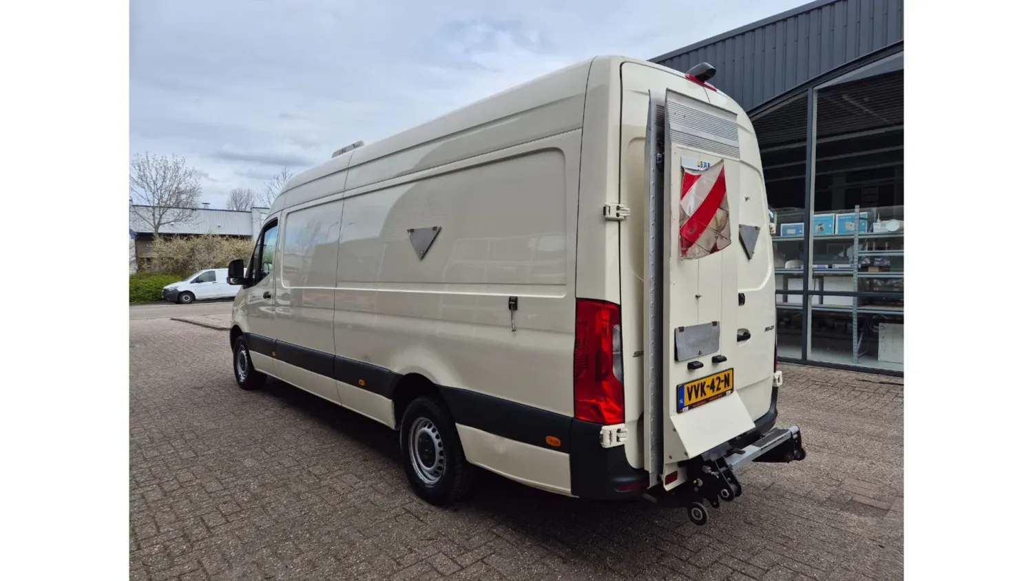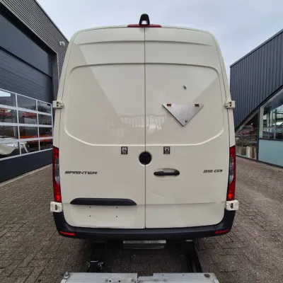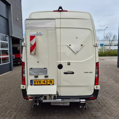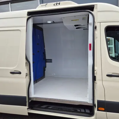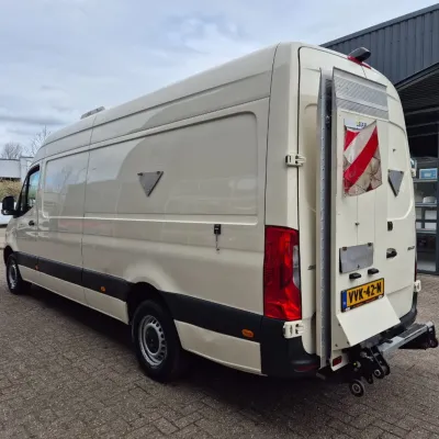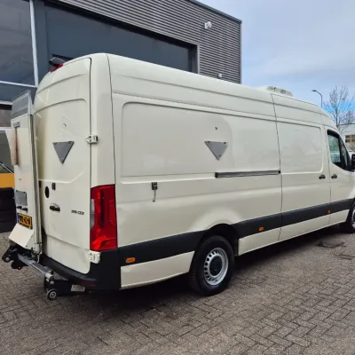 General information Type of body: Refrigerated/freezer transport (delivery van) Year of construction: 2023 Cab: day Reference number: VVK42N Registration number: VVK-42-N Technical information Number of cylinders: 4 Drivetrain Type of fuel: Diesel AdBlue system: Yes Fuel tank: 85 litres Transmission Transmission: Mercedes, 9 gears, Automatic Axle configuration Tyre size: 235/65R16 Brakes: disc brakes Suspension: leaf suspension Front axle: Max. axle load: 1860 kg; Steering; Tyre profile left: 70%; Tyre profile right: 70% Rear axle: Max. axle load: 2250 kg; Tyre profile left: 70%; Tyre profile right: 70% Measures and weights Empty weight: 2.335 kg GVW: 3.500 kg Wheelbase: 433 cm Functional Tail lift: BAR CARGOLIFT, tail lift, 600 kg Cooling: 20 °C to 20 °C Make of bodywork: KONVEKTA DOLPHIN Cooling engine: diesel and electric Wall thickness: 10 mm Maintenance APK (MOT): tested until 05/2026 Condition General condition: very good Technical condition: very good Visual appearance: very good Financial information VAT/margin: VAT qualifying Additional information Please contact Moussa (+31624761106, info@autobedrijfrif.nl) or Youssef (+31626120242, info@autobedrijfrif.nl) for more information Video of working vehicle: https://youtu.be/1ktws-zSe5M Neat Mercedes Sprinter 315 CDI refrigerated van in like-new condition L3H2 manufactured 05-2023 EURO 6 GVW 3500 KG Konvekta Dolphin -20/+20 degrees Celsius Multitemp with sliding and removable partition With B.A.R. brand tail lift, 600 KG payload In very good condition, 196,000 KM, demonstrably dealer maintained