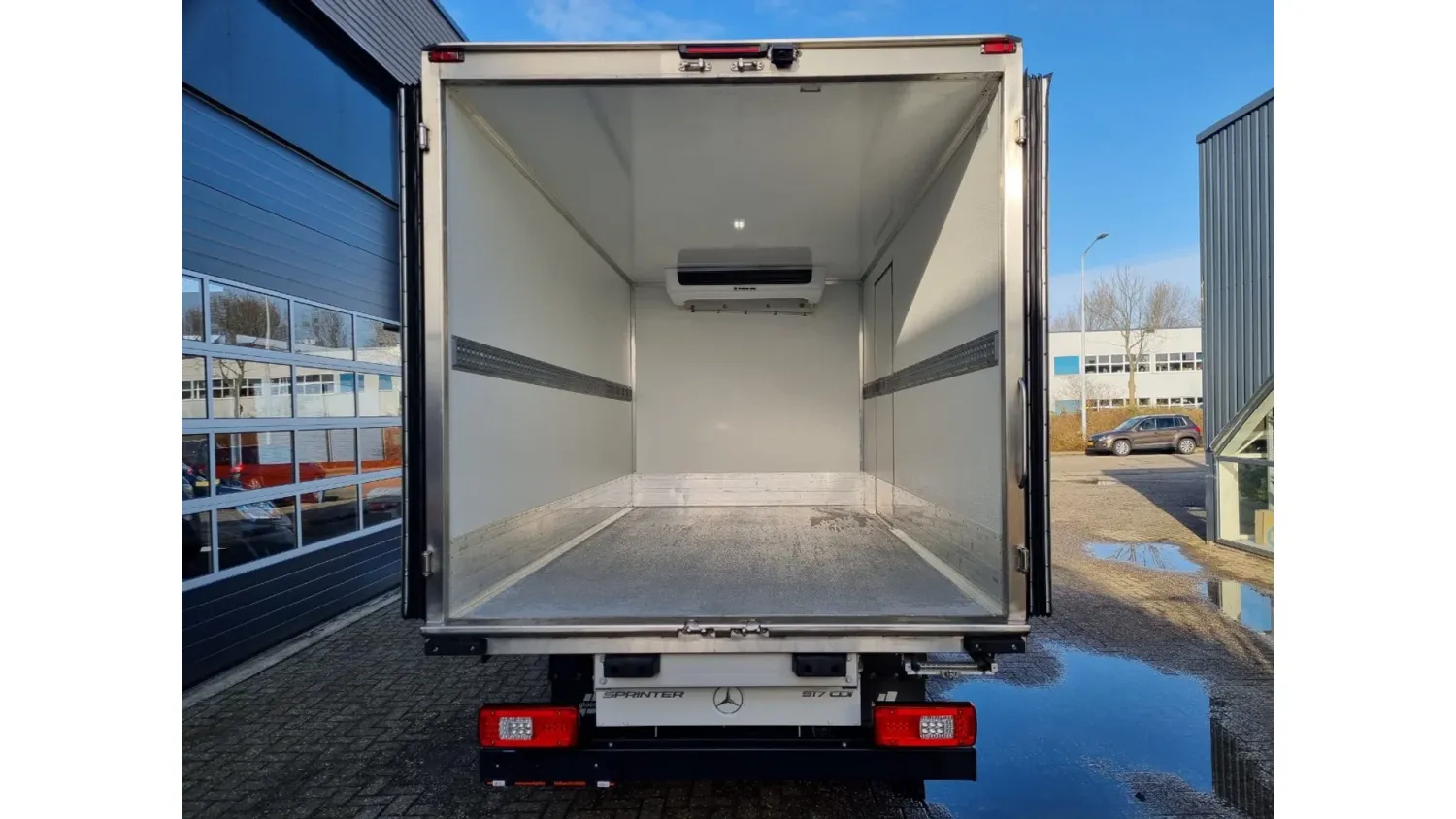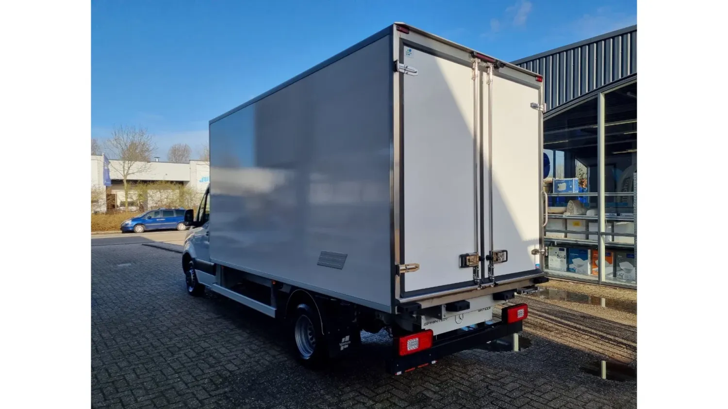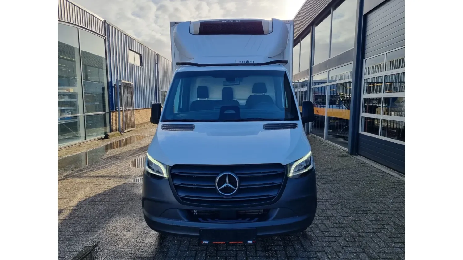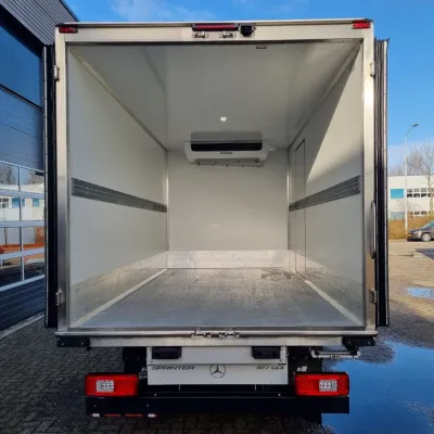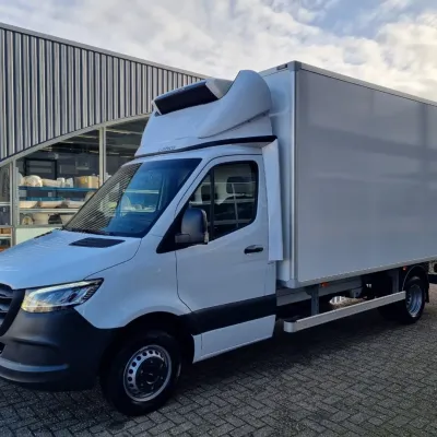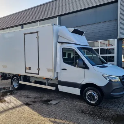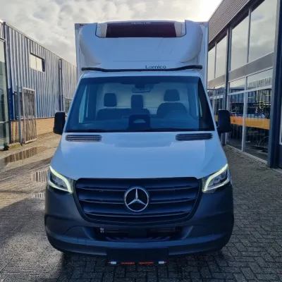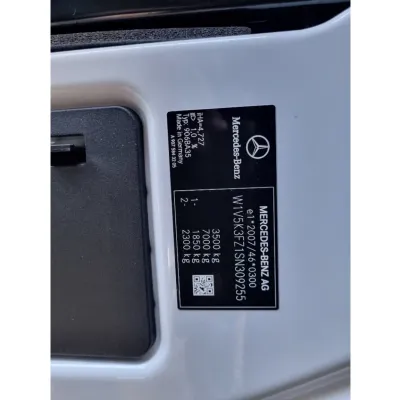 General information Type of body: Refrigerated/freezer transport (closed box) Year of construction: 2024 Cab: day Reference number: 309255 Registration number: V-46-PFL Technical information Number of cylinders: 4 Drivetrain Type of fuel: Diesel AdBlue system: Yes Fuel tank: 75 litres Transmission Transmission: Mercedes, 9 gears, Automatic Axle configuration Tyre size: 195/75R16 Make axles: Goodyear Brakes: disc brakes Front axle: Max. axle load: 1850 kg; Steering; Tyre profile left: 90%; Tyre profile right: 90% Rear axle: Max. axle load: 2300 kg; Tyre profile left inner: 90%; Tyre profile left outer: 90%; Tyre profile right outer: 90%; Tyre profile right outer: 90% Measures Wheelbase: 433 cm Weights Empty weight: 2.915 kg GVW: 3.500 kg Max. towing weight: 3.500 kg (unbraked 750 kg) Functional Dimensions of cargo space: 421 x 207 x 200 cm Cooling: 30 °C to 30 °C Make of bodywork: ThermoKing V500 MAX Cooling engine: diesel and electric Wall thickness: 10 mm Maintenance APK (MOT): tested until 09/2027 Condition General condition: very good Technical condition: very good Visual appearance: very good Financial information VAT/margin: VAT qualifying Warranty Manufacturer's warranty until: 23/09/2026 Additional information Please contact Moussa (+31624761106, info@autobedrijfrif.nl) or Youssef (+31626120242, info@autobedrijfrif.nl) for more information Video of working vehicle: https://youtu.be/rmJITpot_mA Very neat Mercedes Sprinter 517 CDI Refrigerated Van in like-new condition Year of manufacture 23/09/2024, factory warranty until 23/09/2026 ThermoKing V500 MAX next gen. Day and night cooling 380V -30/+30 degrees Celsius Cargo space interior dimensions: L 421 cm/ W 207 cm/ H 200 cm Suitable for 8 pallets Fulloption Mercedes MBUX audio system Front and side assist Camera ACC 15,000 km mileage verifiable.