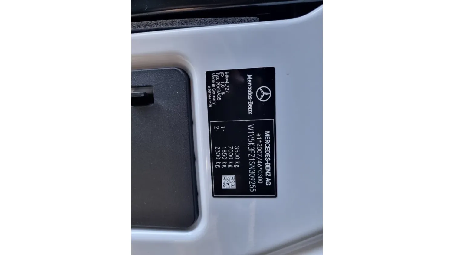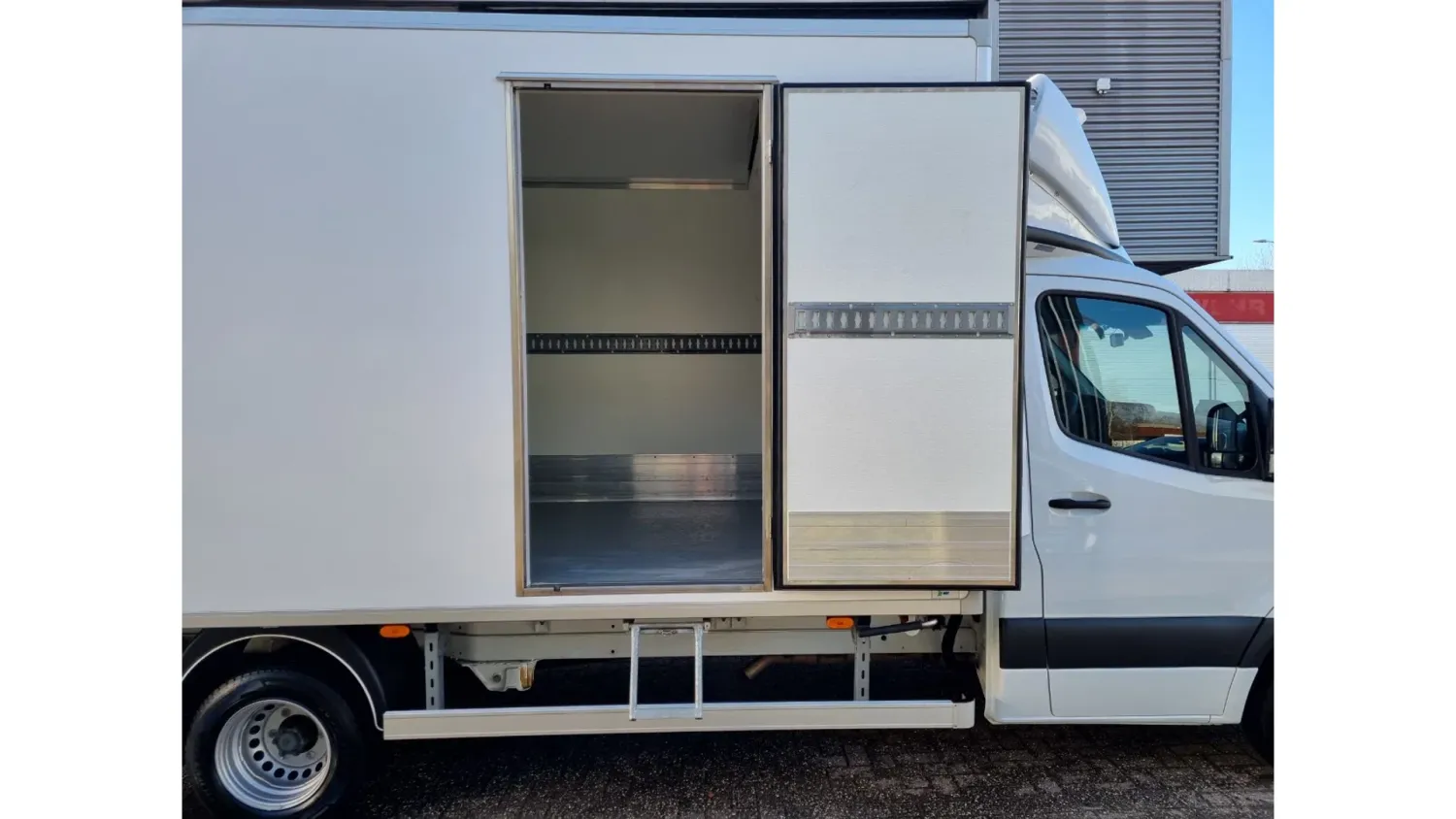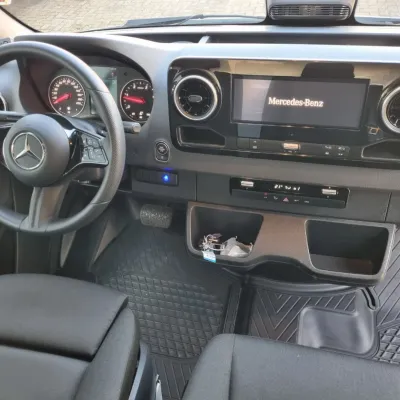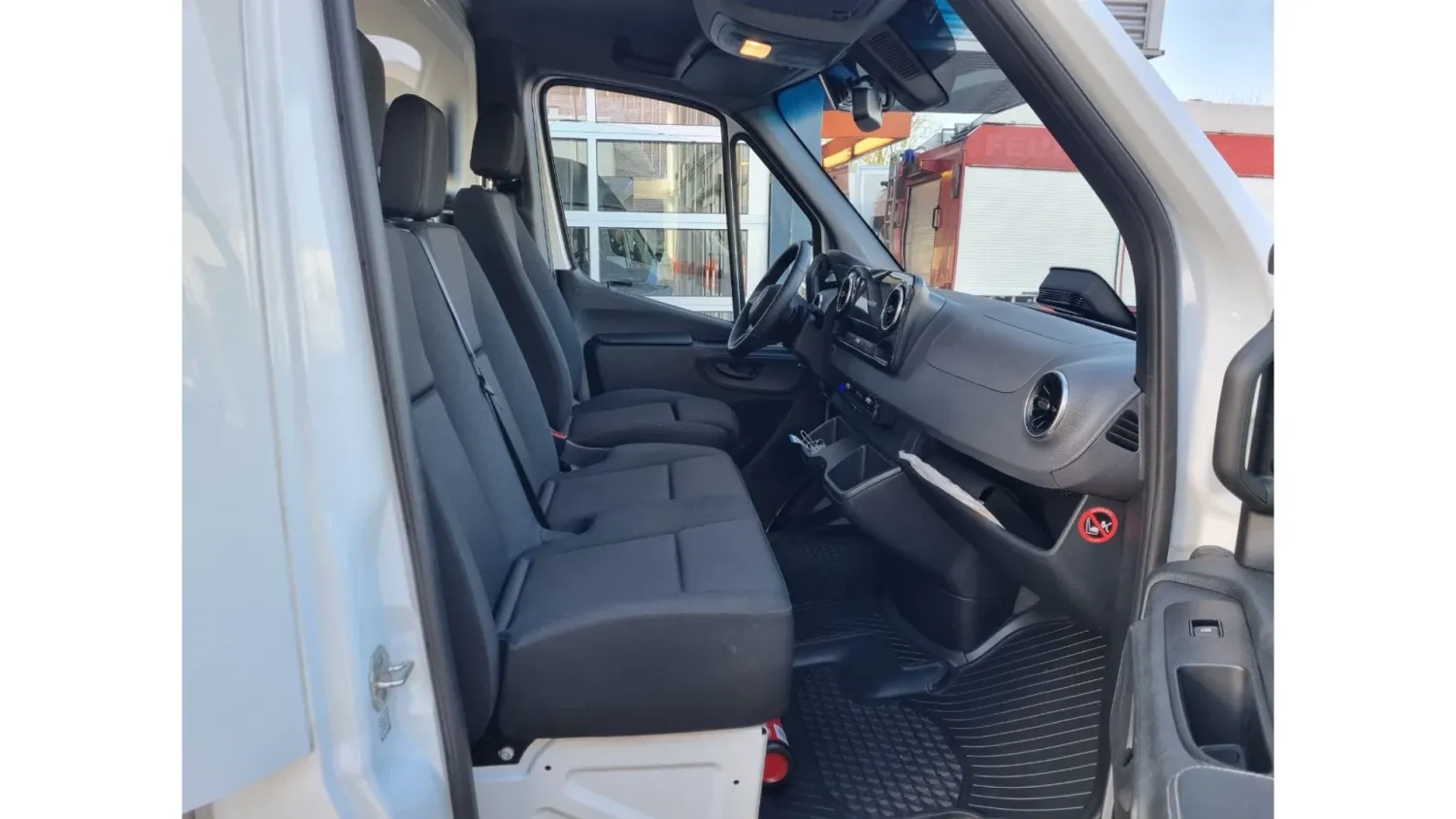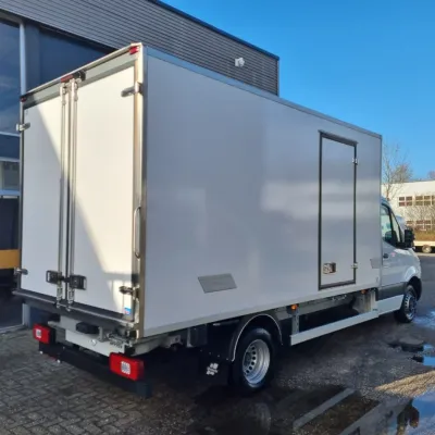 General information Type of body: Refrigerated/freezer transport (closed box) Year of construction: 2024 Cab: day Reference number: 309255 Registration number: V-46-PFL Technical information Number of cylinders: 4 Drivetrain Type of fuel: Diesel AdBlue system: Yes Fuel tank: 75 litres Transmission Transmission: Mercedes, 9 gears, Automatic Axle configuration Tyre size: 195/75R16 Make axles: Goodyear Brakes: disc brakes Front axle: Max. axle load: 1850 kg; Steering; Tyre profile left: 90%; Tyre profile right: 90% Rear axle: Max. axle load: 2300 kg; Tyre profile left inner: 90%; Tyre profile left outer: 90%; Tyre profile right outer: 90%; Tyre profile right outer: 90% Measures Wheelbase: 433 cm Weights Empty weight: 2.915 kg GVW: 3.500 kg Max. towing weight: 3.500 kg (unbraked 750 kg) Functional Dimensions of cargo space: 421 x 207 x 200 cm Cooling: 30 °C to 30 °C Make of bodywork: ThermoKing V500 MAX Cooling engine: diesel and electric Wall thickness: 10 mm Maintenance APK (MOT): tested until 09/2027 Condition General condition: very good Technical condition: very good Visual appearance: very good Financial information VAT/margin: VAT qualifying Warranty Manufacturer's warranty until: 23/09/2026 Additional information Please contact Moussa (+31624761106, info@autobedrijfrif.nl) or Youssef (+31626120242, info@autobedrijfrif.nl) for more information Video of working vehicle: https://youtu.be/rmJITpot_mA Very neat Mercedes Sprinter 517 CDI Refrigerated Van in like-new condition Year of manufacture 23/09/2024, factory warranty until 23/09/2026 ThermoKing V500 MAX next gen. Day and night cooling 380V -30/+30 degrees Celsius Cargo space interior dimensions: L 421 cm/ W 207 cm/ H 200 cm Suitable for 8 pallets Fulloption Mercedes MBUX audio system Front and side assist Camera ACC 15,000 km mileage verifiable.