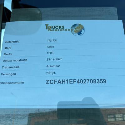 General information Number of doors: 2 Year of construction: 2020 Technical information Number of cylinders: 4 Max. front axle load: 4480 kg Max. rear axle load: 8480 kg Measures and weights Empty weight: 7.456 kg GVW: 11.990 kg Wheelbase: 518 cm Functional Dimensions of cargo space: 741 x 248 x 260 cm Condition General condition: very good Technical condition: very good Visual appearance: very good Financial information Price: On request Identification Reference number: TR1731 Registration number: 80-BPZ-5 Serial number: ZCFAH1EF402708359
