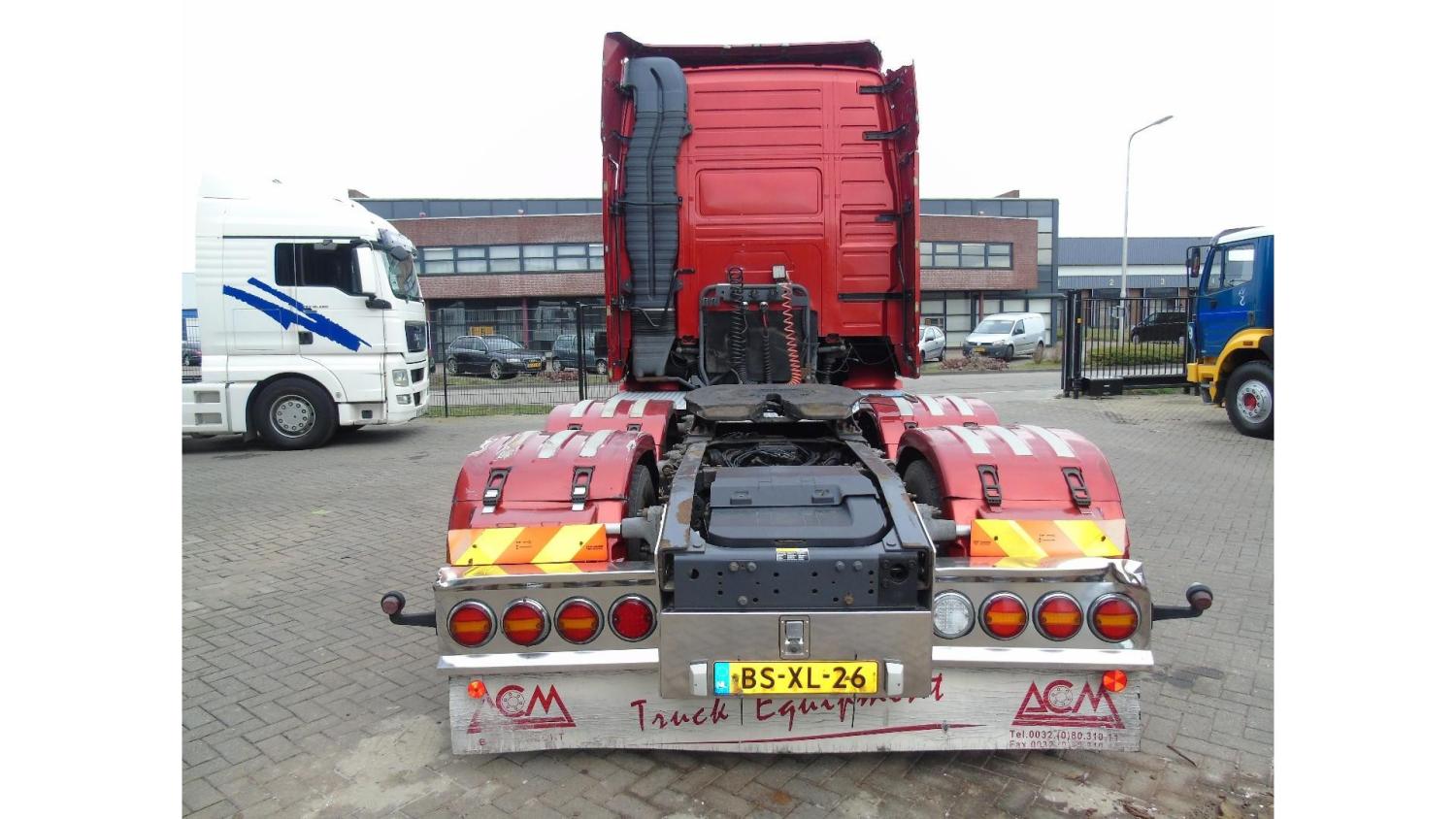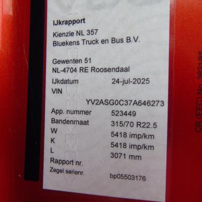 General information Bodywork: Standard tractor New: Yes Year of construction: 2007 Technical information Number of cylinders: 6 Axle configuration Max. front axle load: 8000 kg Rear axle 1: Lift axle; Max. axle load: 7500 kg; Steering Rear axle 2: Max. axle load: 11500 kg Measures Wheelbase: 410 cm Weights Empty weight: 8.485 kg GVW: 27.000 kg Max. towing weight: 50.000 kg Maintenance APK (MOT): tested until 07/2026 Condition General condition: very good Technical condition: very good Visual appearance: very good Identification Reference number: TR1683 Registration number: BS-XL-26 Serial number: YV2ASG0C37A646273