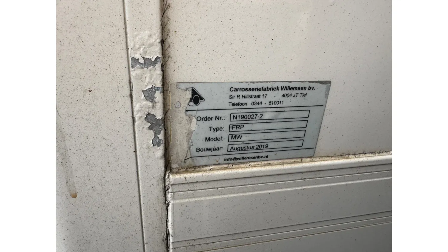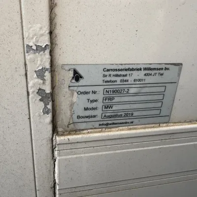 General information Year of construction: 2019 Reference number: RHT / IV696549 Registration number: 29-BNS-3 Technical information Number of cylinders: 4 Drivetrain AdBlue system: Yes Axle configuration Tyre size: 265/70R19,5 Front axle: Max. axle load: 4800 kg; Steering; Tyre profile left: 20%; Tyre profile right: 20% Rear axle: Double wheels; Differential lock; Max. axle load: 8500 kg; Tyre profile left inner: 40%; Tyre profile left outer: 40%; Tyre profile right outer: 40%; Tyre profile right outer: 40%; Reduction: single reduction Measures and weights Empty weight: 7.445 kg GVW: 11.990 kg Wheelbase: 567 cm Functional Dimensions of cargo space: 796 x 250 x 233 cm Maintenance APK (MOT): tested until 08/2026 Additional information Please contact Frank de Jong (+31623157042, fj@rhtrucks.nl) or Rene Jerphanion (+31612511348, rj@rhtrucks.nl) for more information