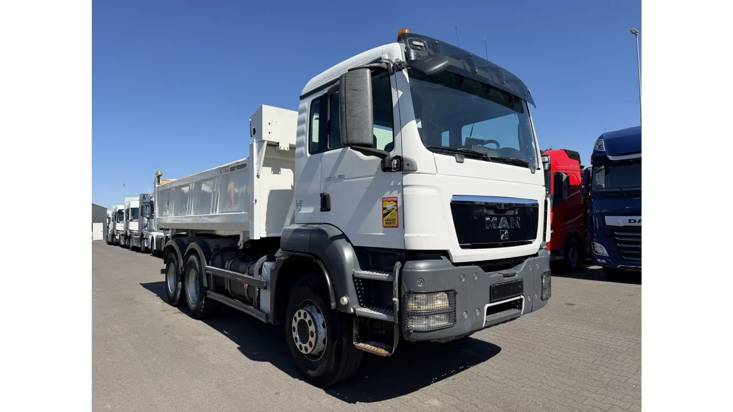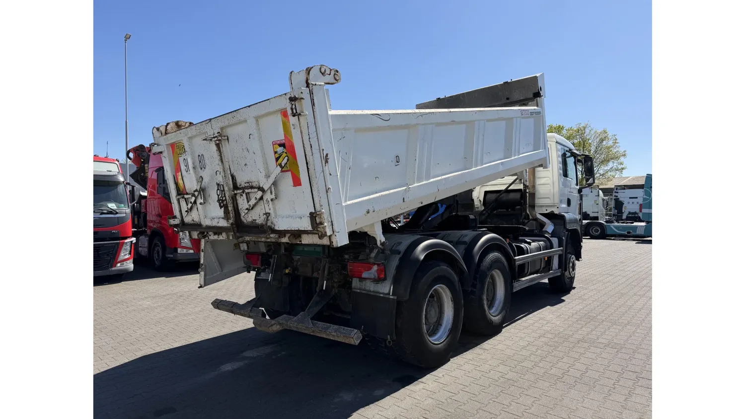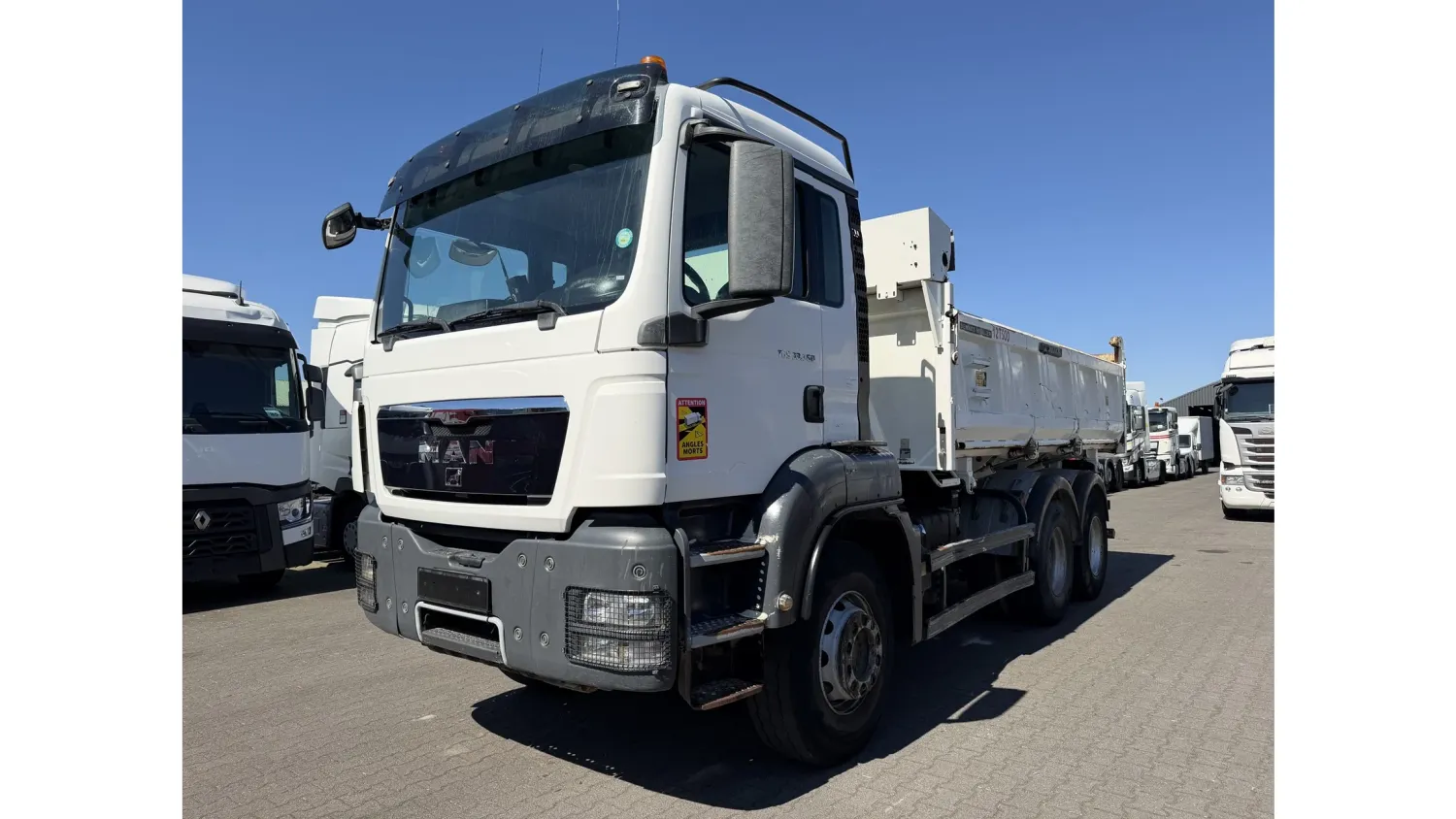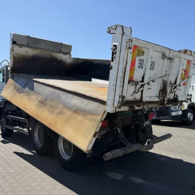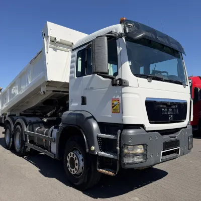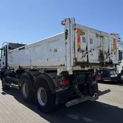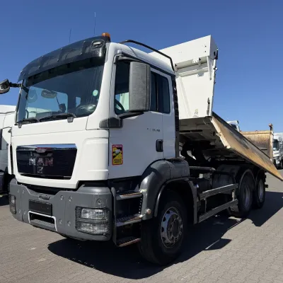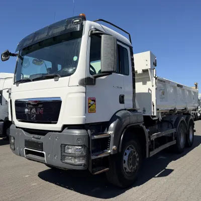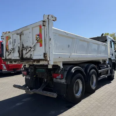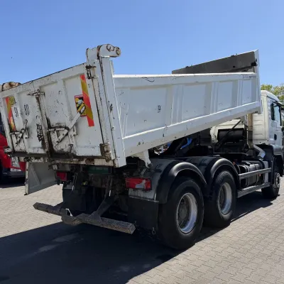 Year of construction: 2012 Front axle: Steering General condition: good Technical condition: good Visual appearance: good Reference number: NO: 92 MAN TGS 33.360 Euro 5 6X4 Meiller Tipper 2012 Please contact Jeffrey Kaus (+31653544537, info@kaustrucks.nl) for more information 6X4 Euro 5 Steelsuspension Hub Reduction 2 Way Meiller tipper Bordmatic