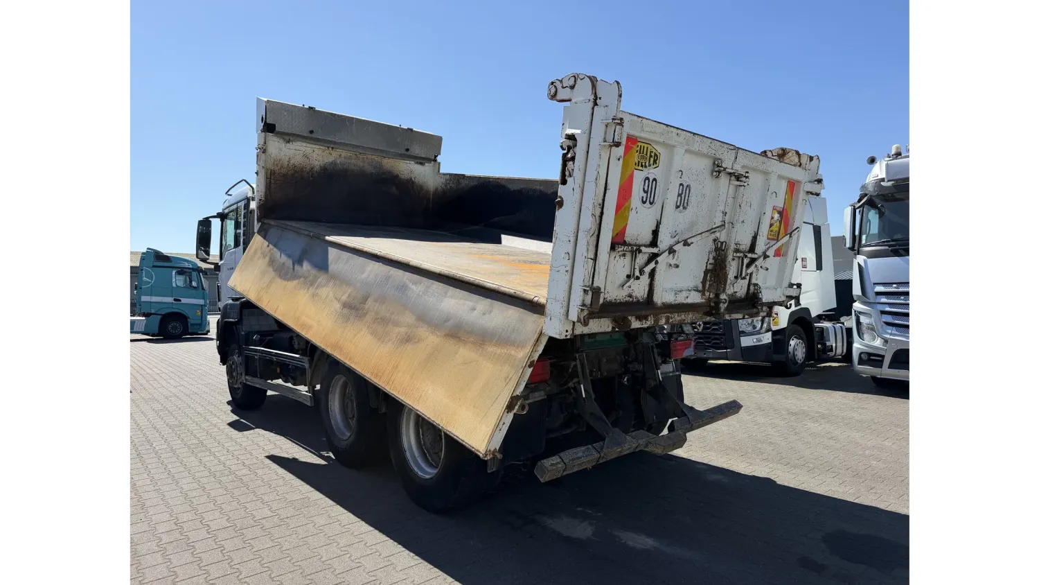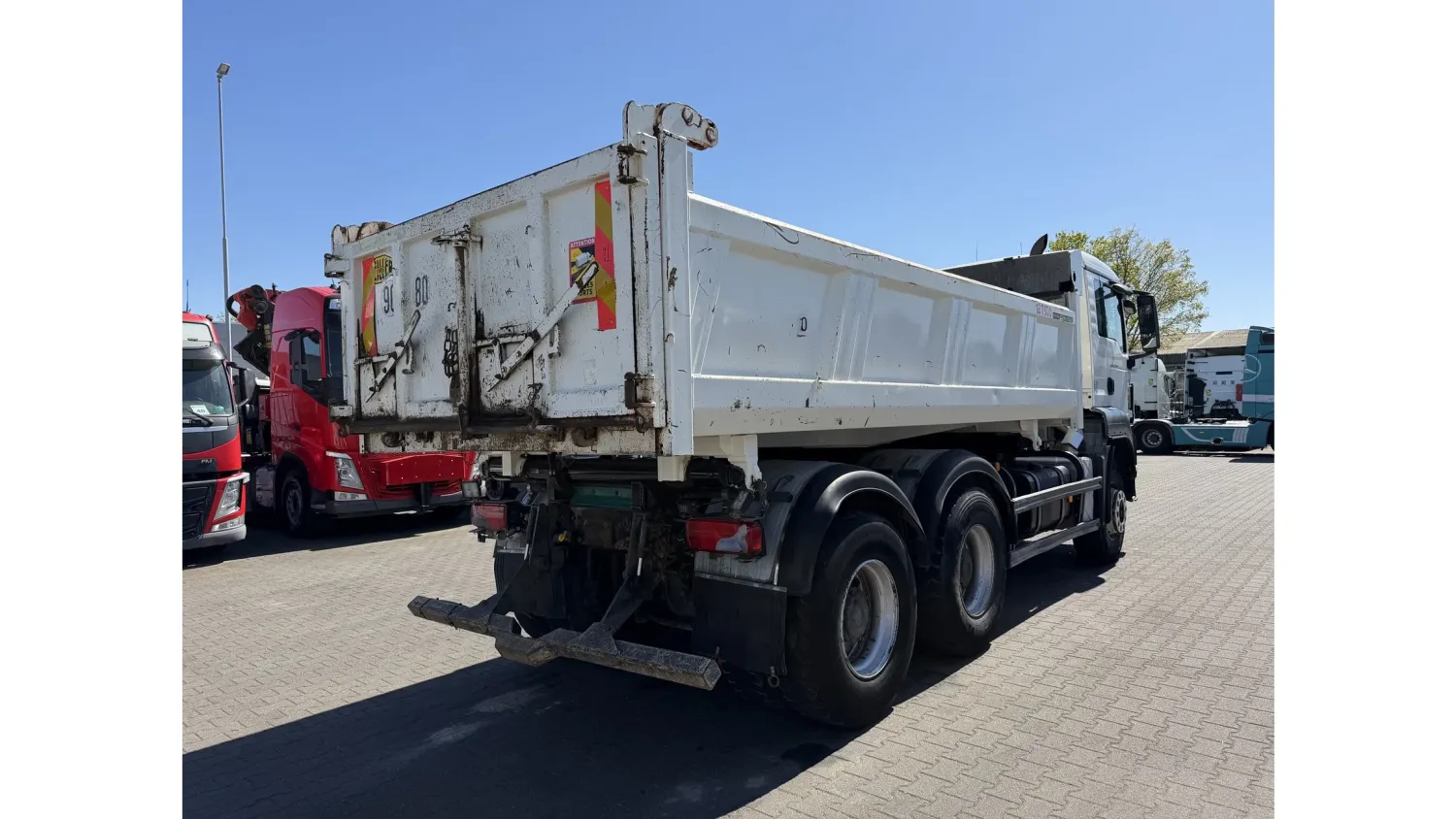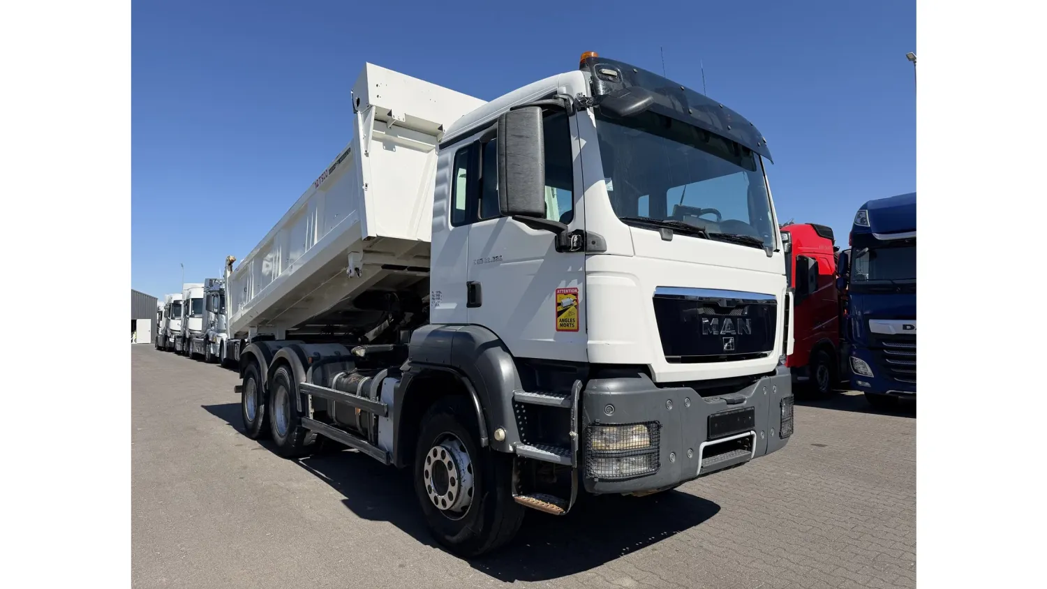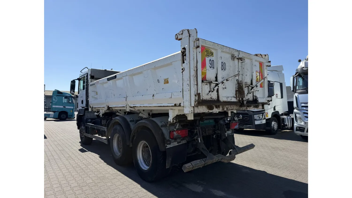 Year of construction: 2012 Front axle: Steering General condition: good Technical condition: good Visual appearance: good Reference number: NO: 92 MAN TGS 33.360 Euro 5 6X4 Meiller Tipper 2012 Please contact Jeffrey Kaus (+31653544537, info@kaustrucks.nl) for more information 6X4 Euro 5 Steelsuspension Hub Reduction 2 Way Meiller tipper Bordmatic